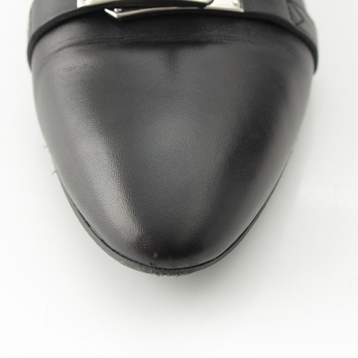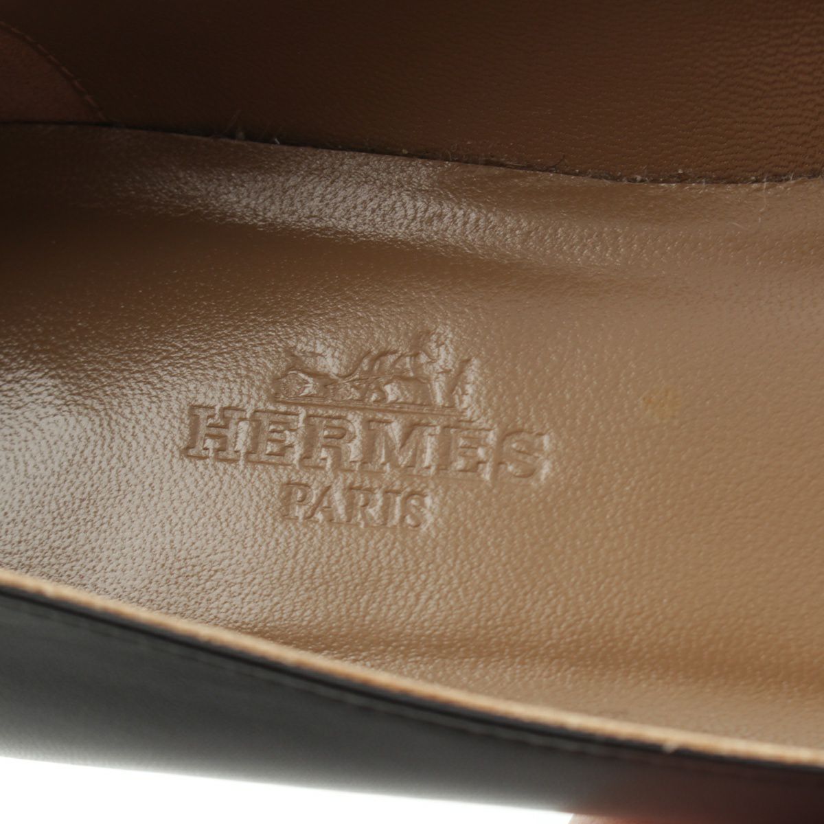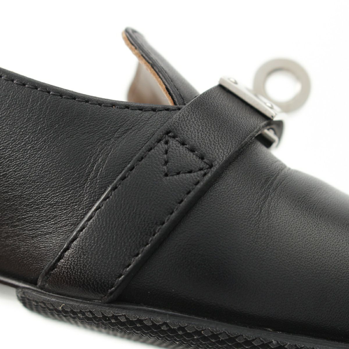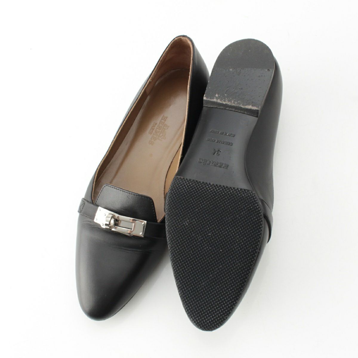 エルメス ビルバオ レザー ケリー金具 アーモンドトゥ フラット パンプス シューズ ブラック 34