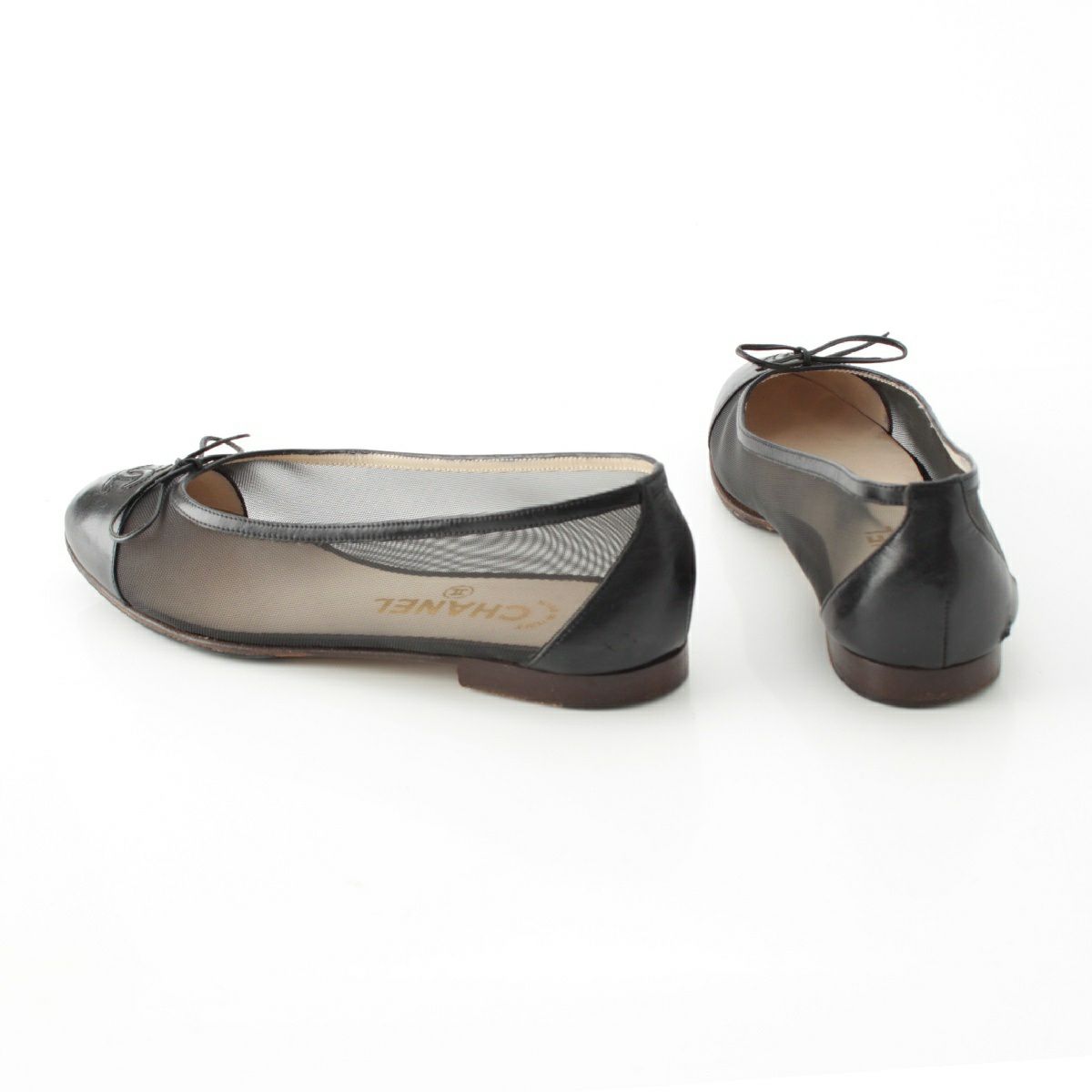 シャネル バレリーナ レザー ココマーク メッシュ フラット パンプス シューズ G02819 ブラック 36 1/2