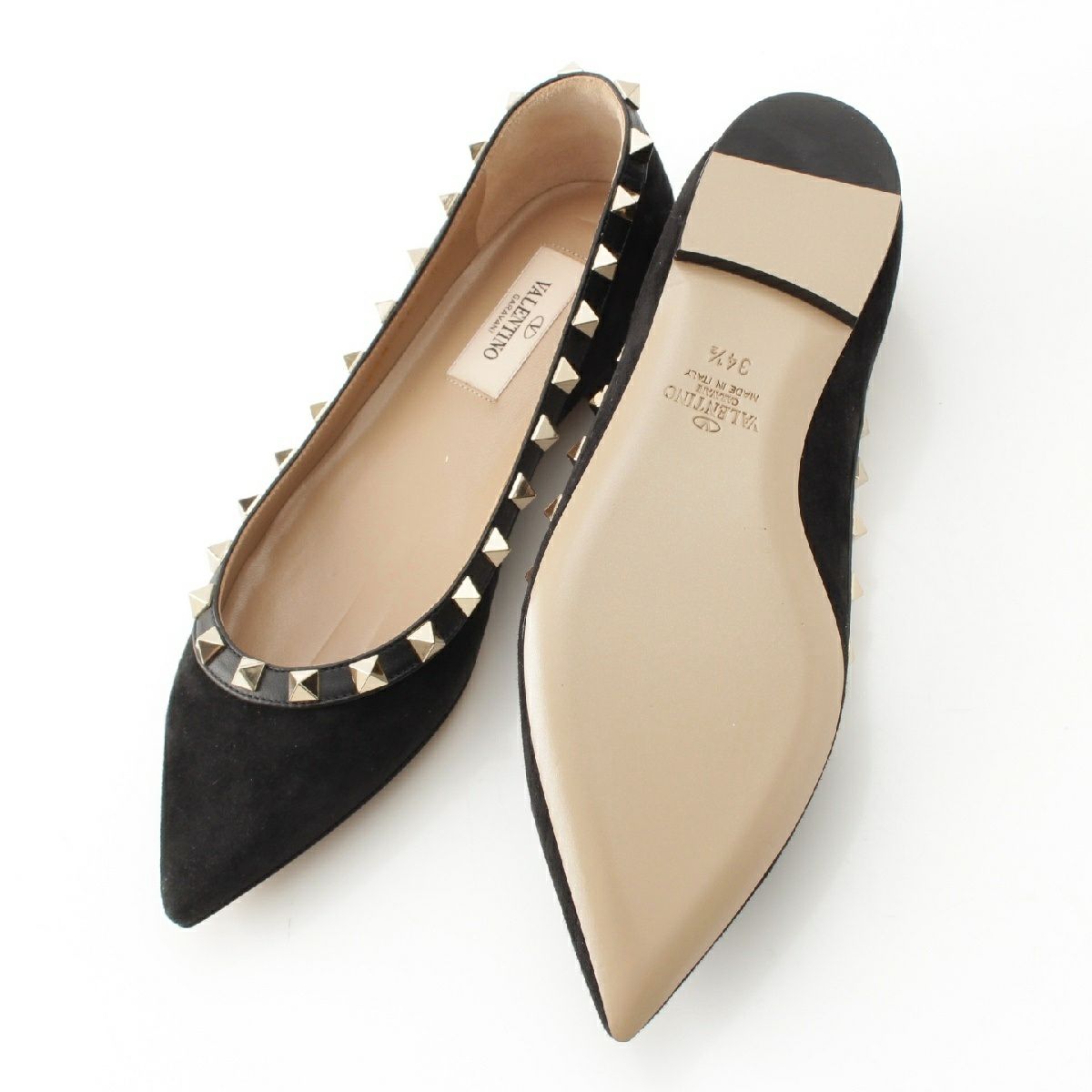 ヴァレンティノ BALLERINA バレリーナ スタッズ フラット パンプス スエード NW0S0403 ブラック 34.5