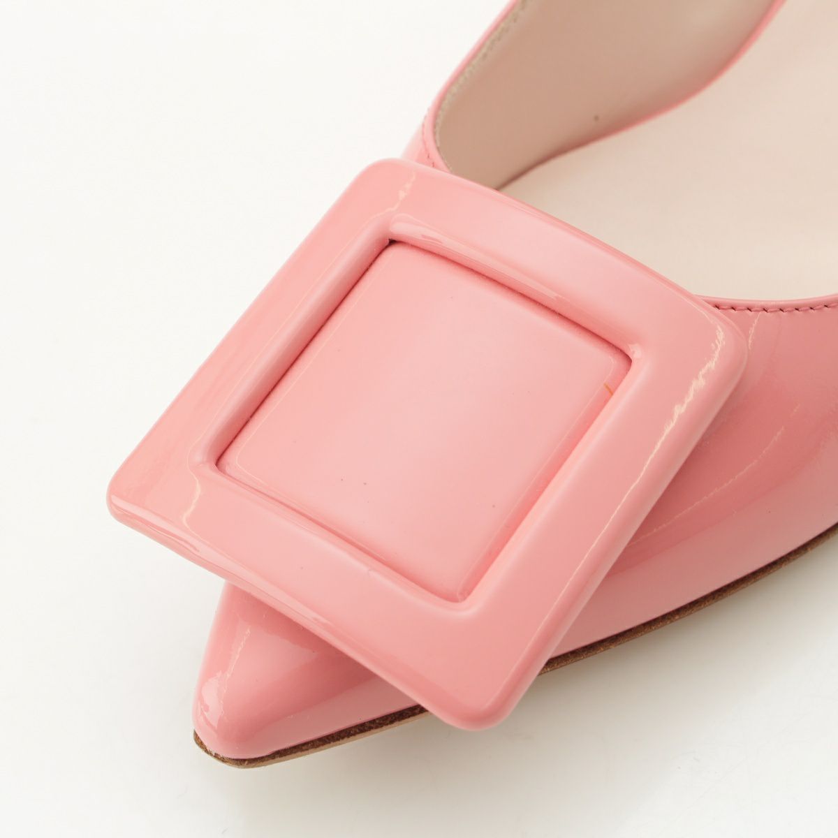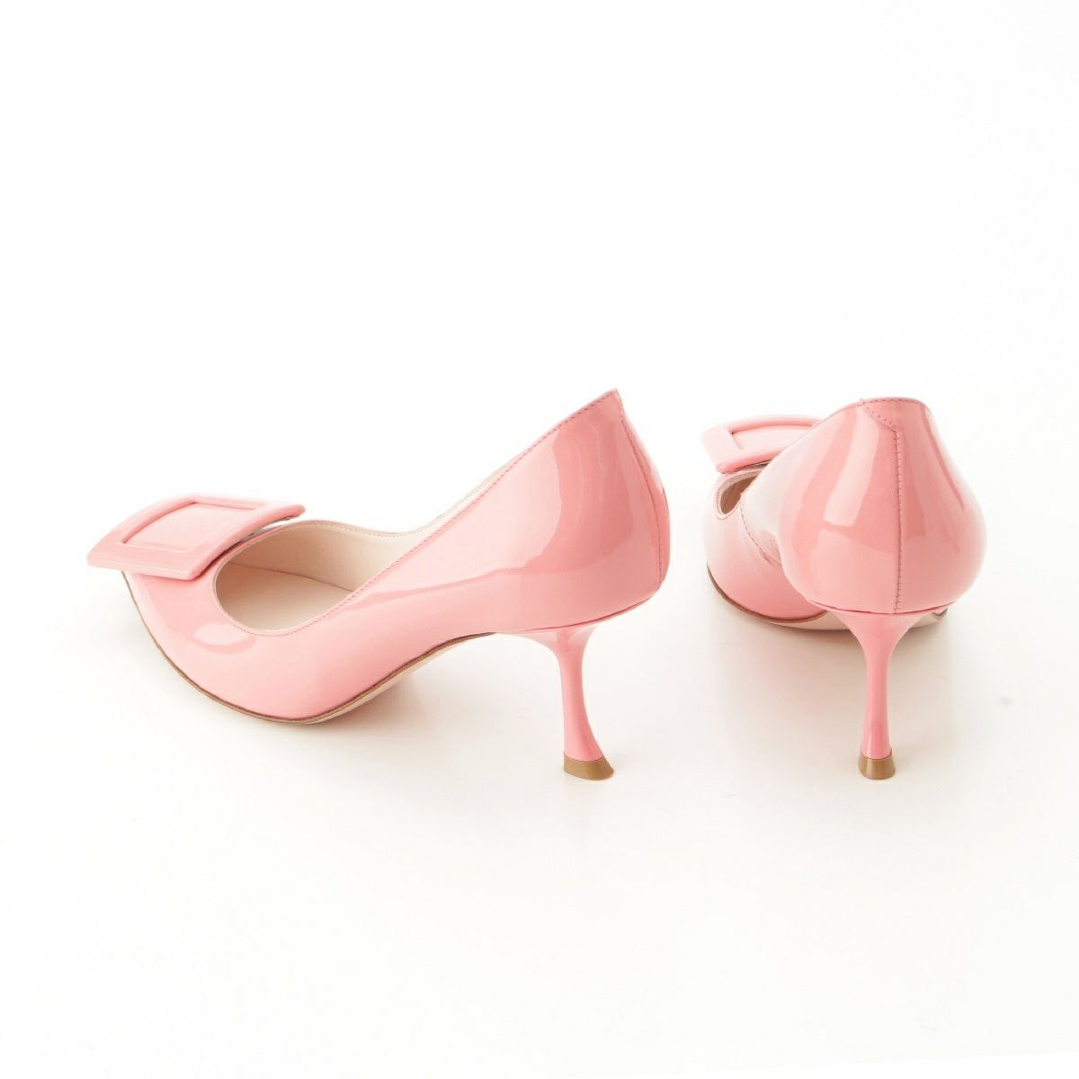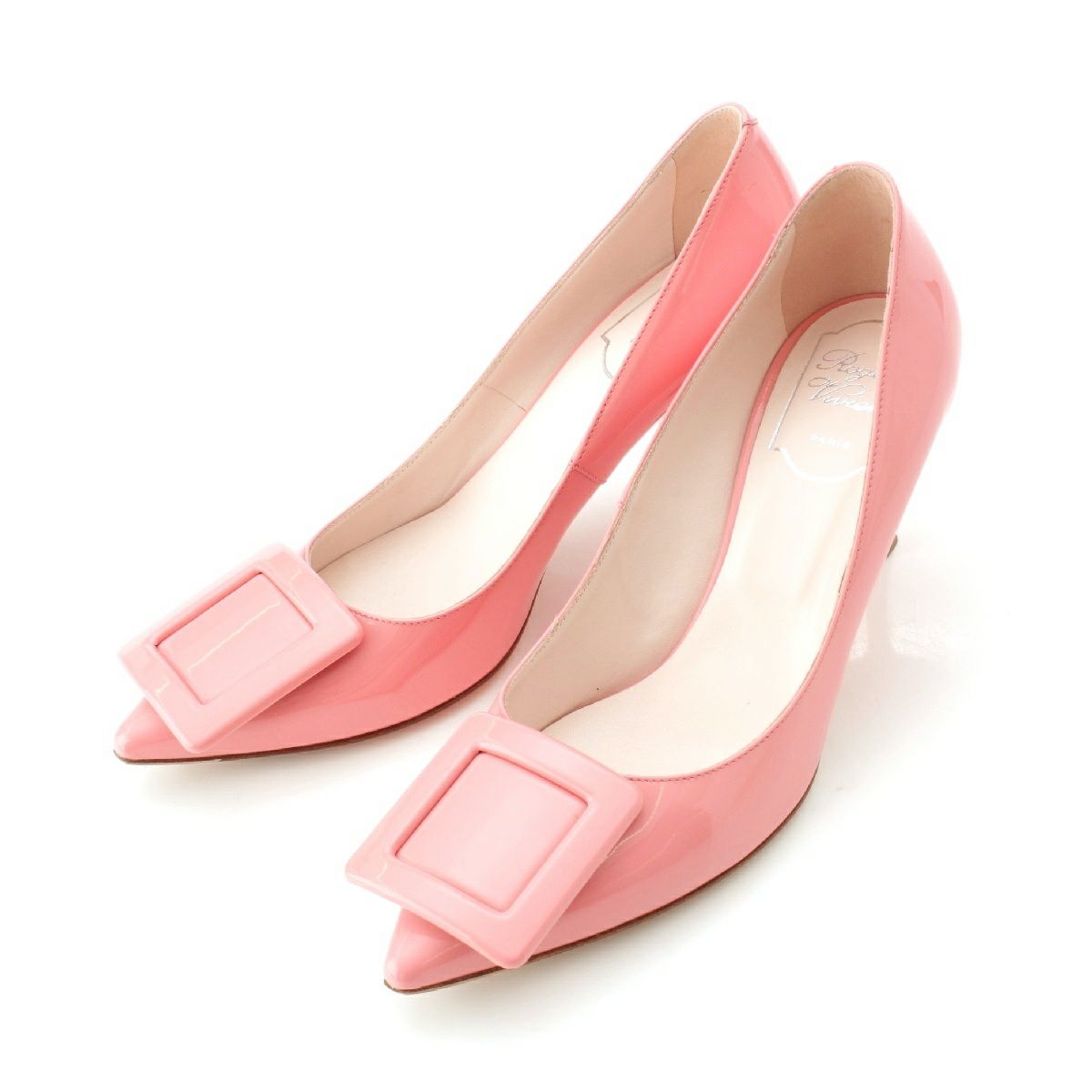ロジェヴィヴィエ パテントレザー スクエアバックル ポインテェッドトゥ ヒール パンプス ピンク 37
