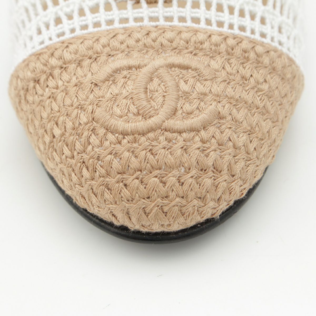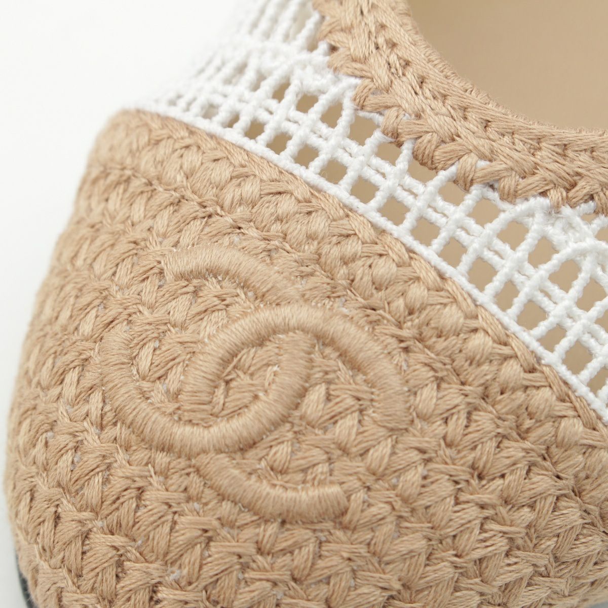 シャネル 25SS ラフィア ココマーク バレリーナ フラット パンプス シューズ ホワイト ベージュ 36C