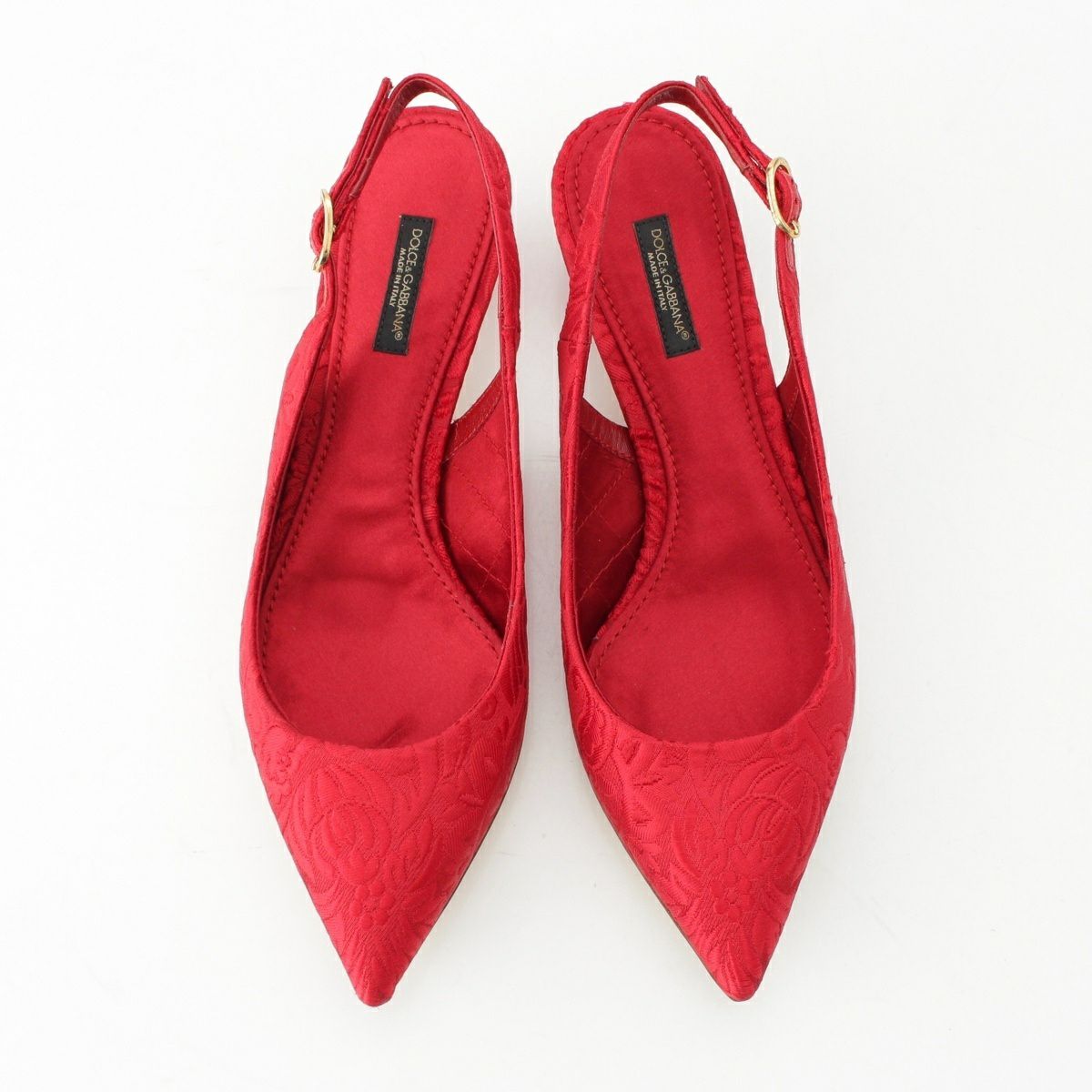 ドルチェアンドガッバーナ ファブリック バックストラップ 刺繍 パンプス レッド 38