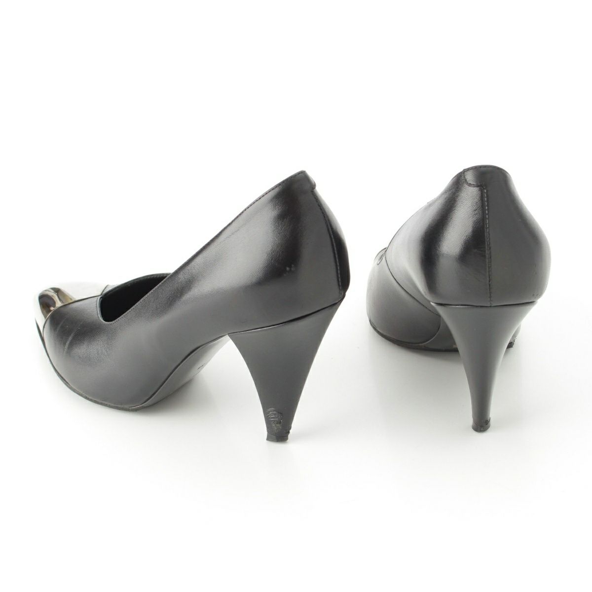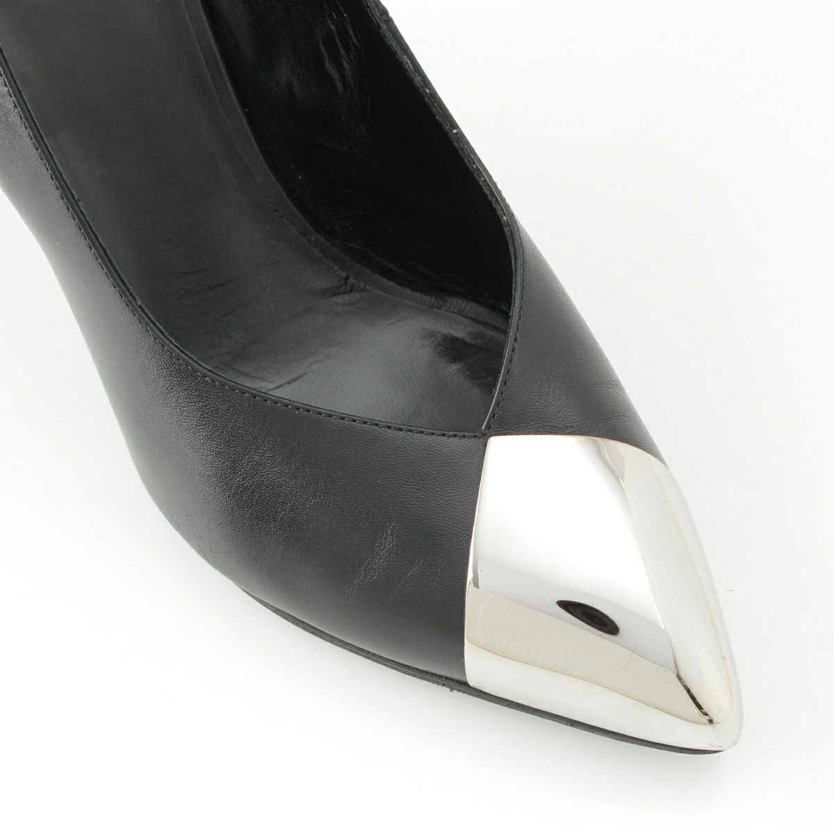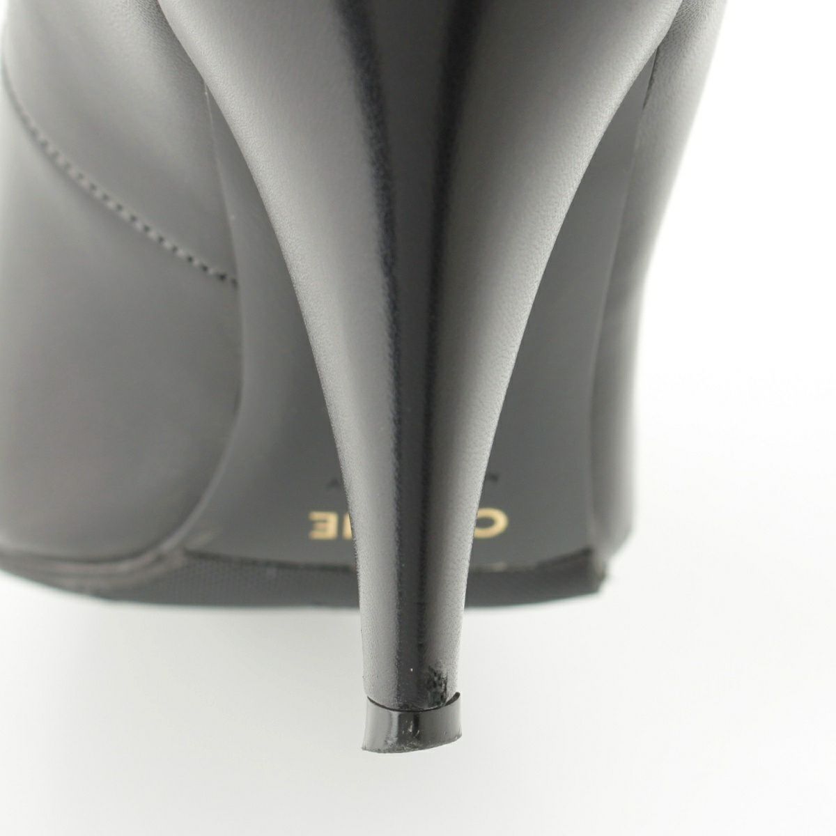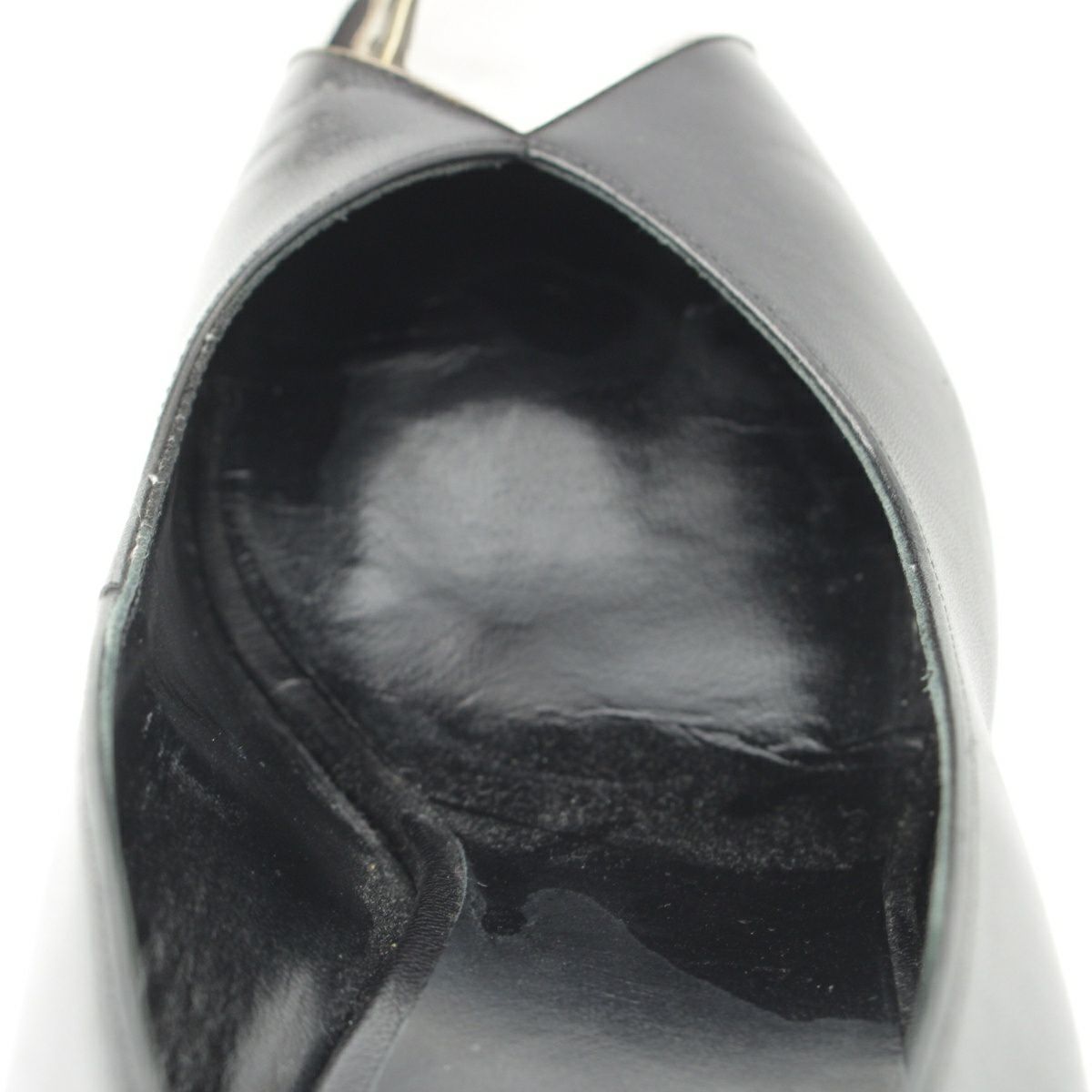 セリーヌ レザー エディスリマン Vカット メタル アーモンドトゥ ヒール パンプス シューズ ブラック 38