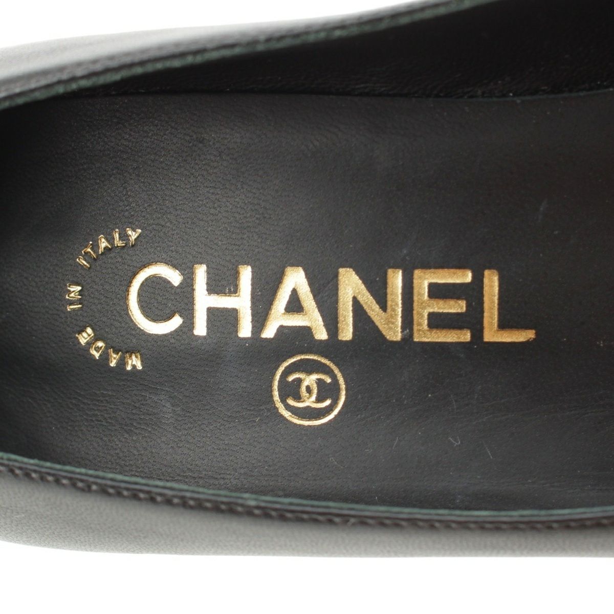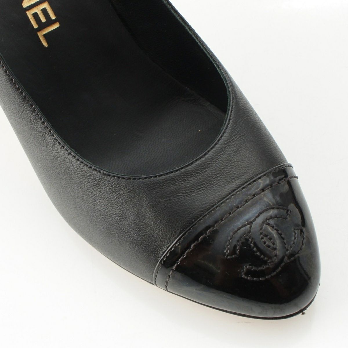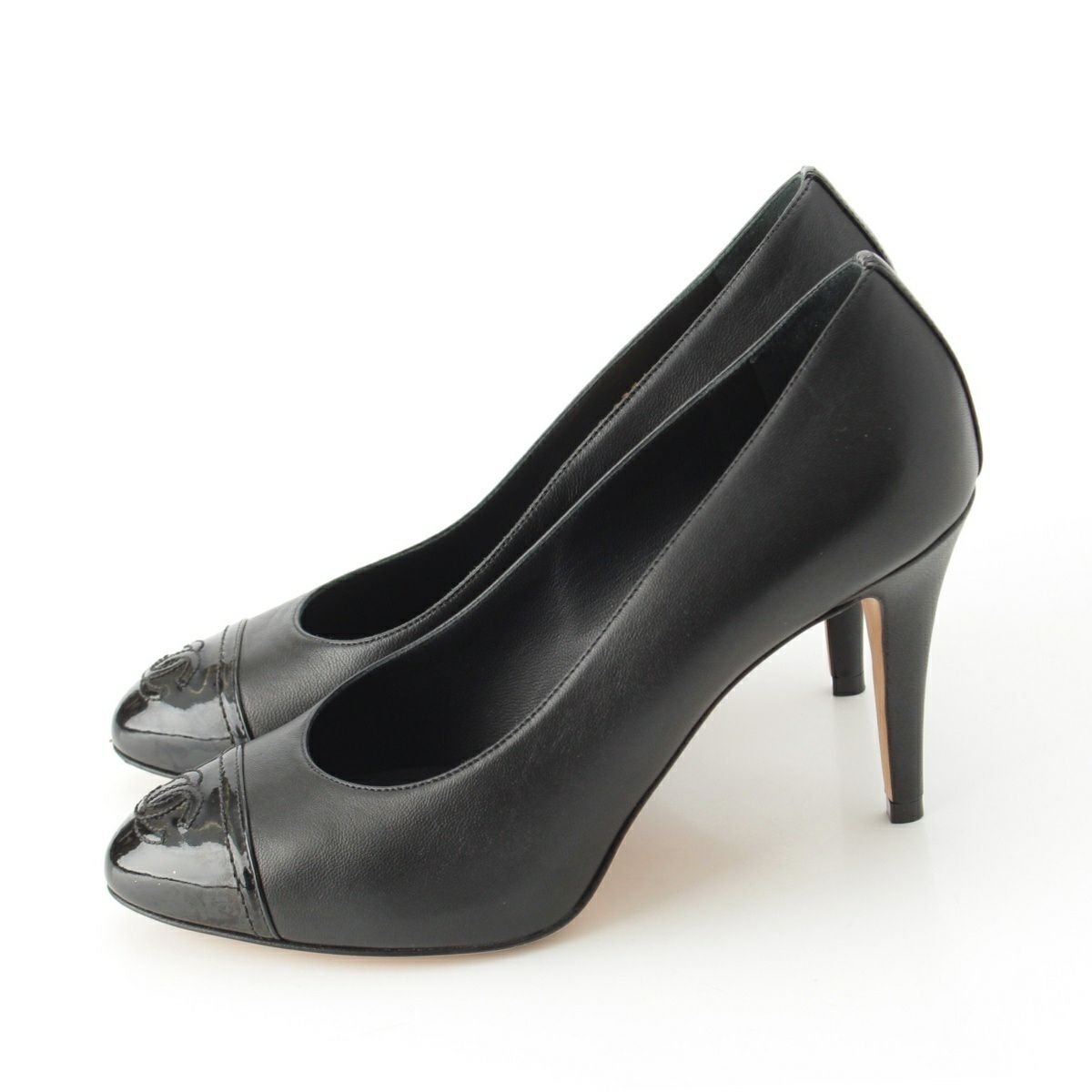 シャネル レザー×パテント ココマーク ヒール パンプス ブラック 37