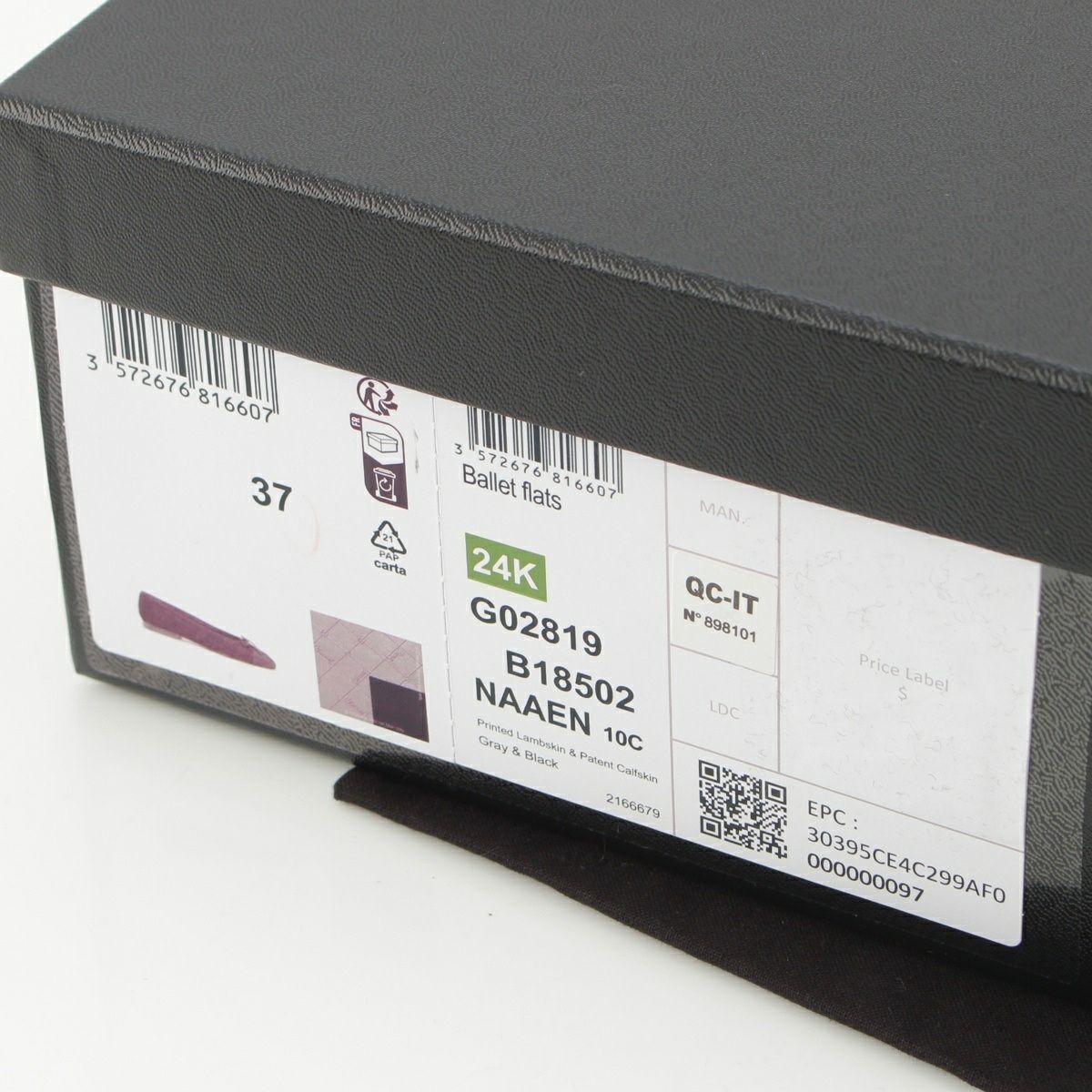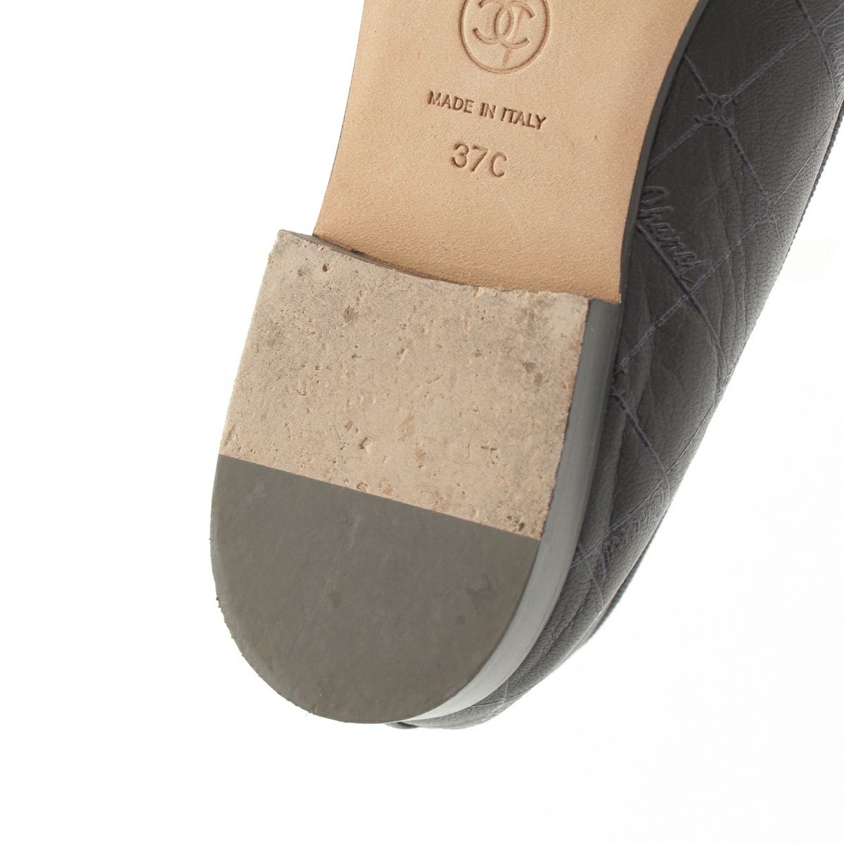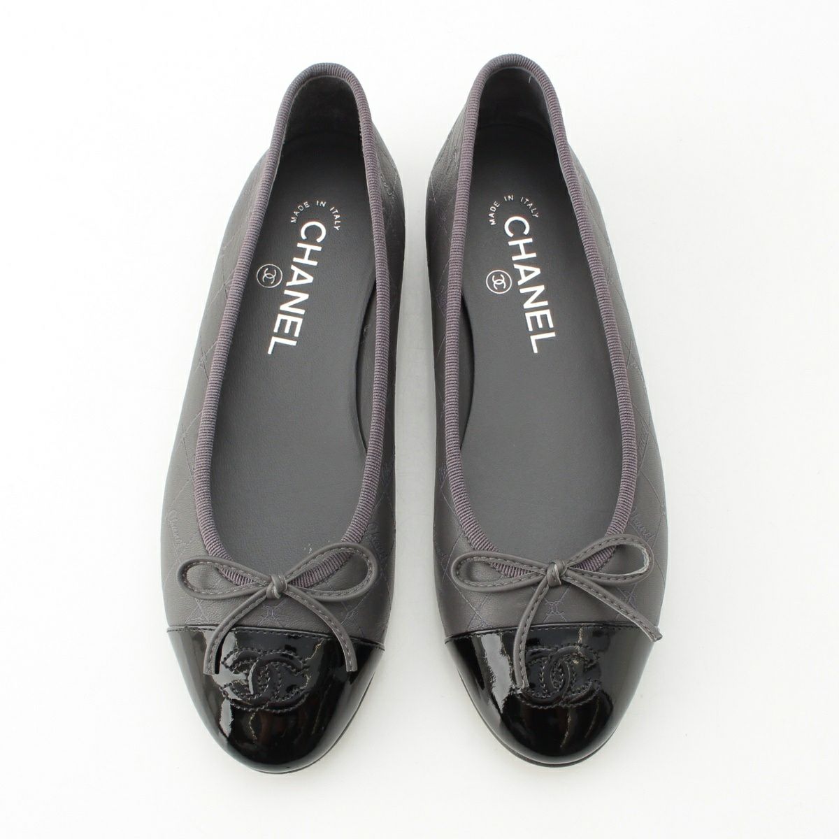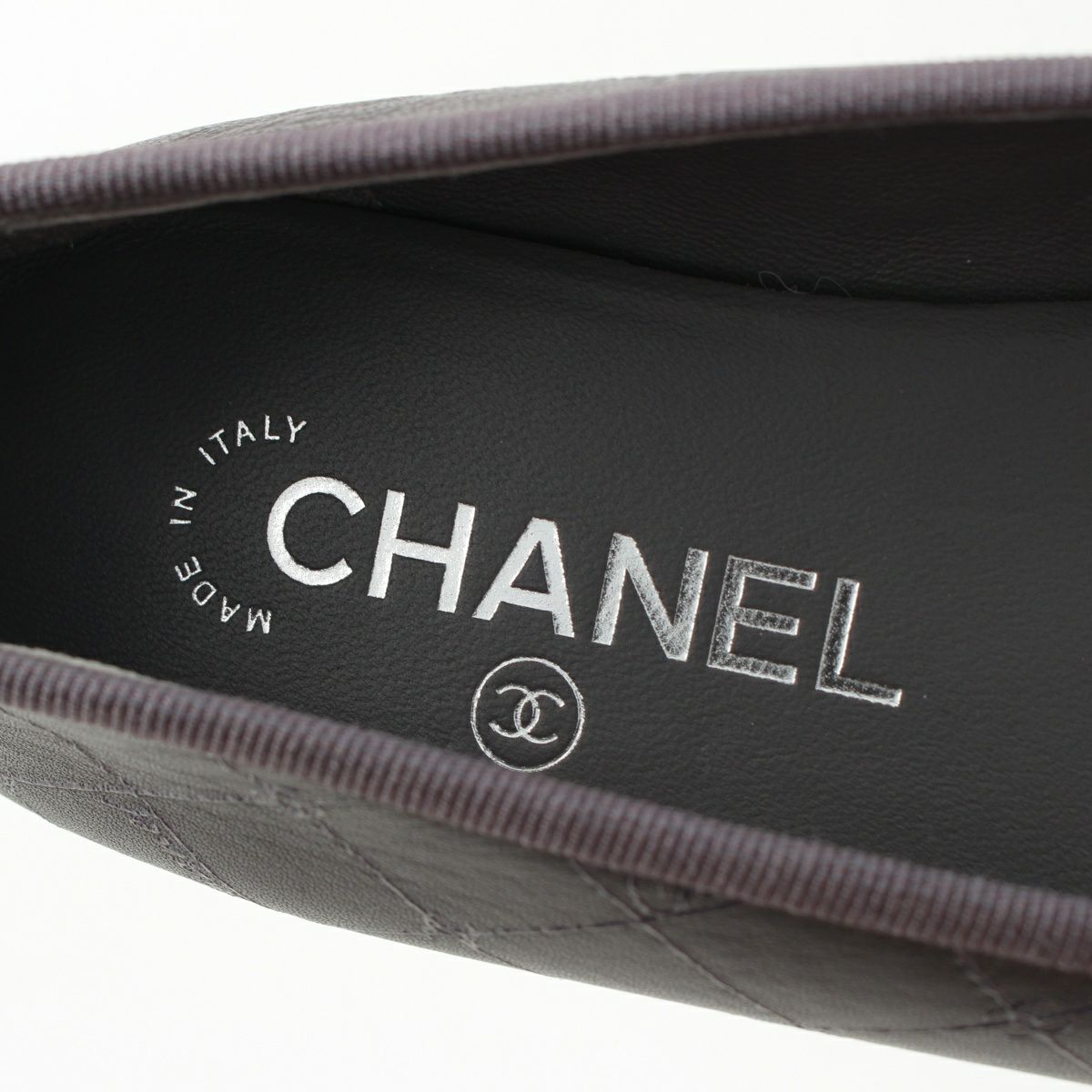 シャネル 24K レザー マトラッセ ロゴ バレリーナ フラットシューズ パンプス G02819 グレー×ブラック 37