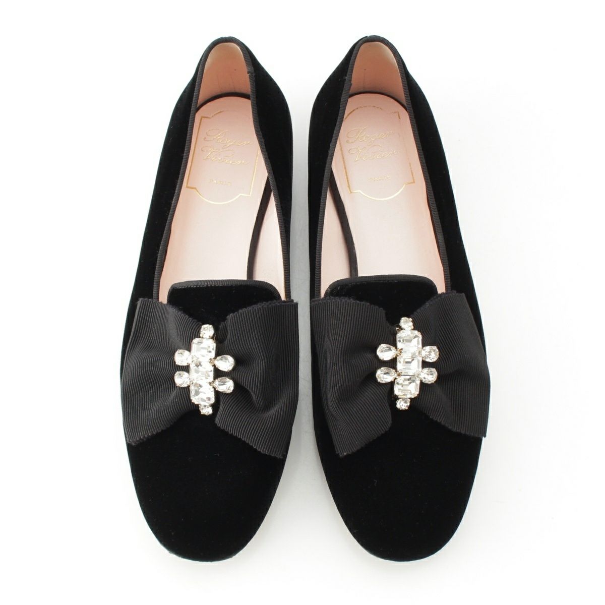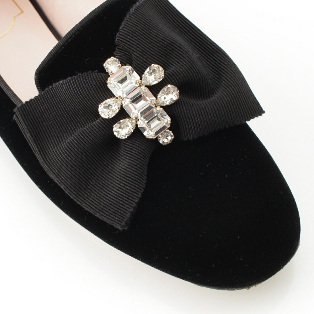 ロジェヴィヴィエ ベロア リボン ラインストーン フラット パンプス ブラック 37