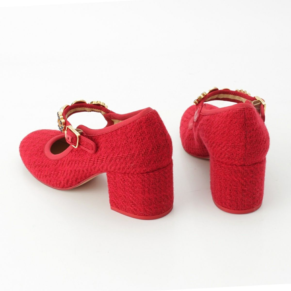 シャネル 24AW ツイード アイコン メリージェーン パンプス G45777 レッド 38