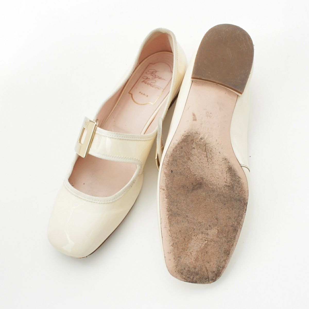 ロジェヴィヴィエ パテントレザー メリージェーン パンプス クリーム アイボリー 36