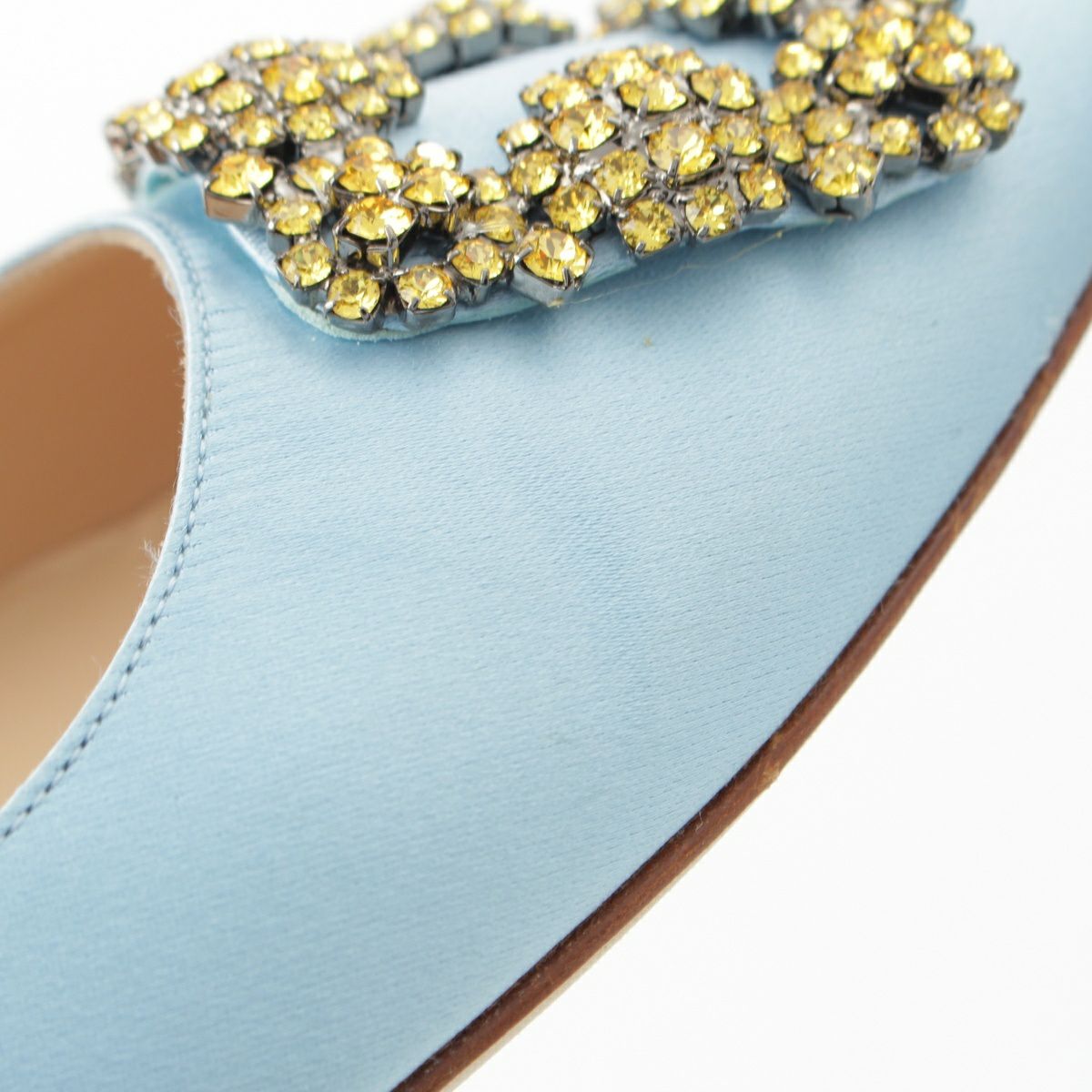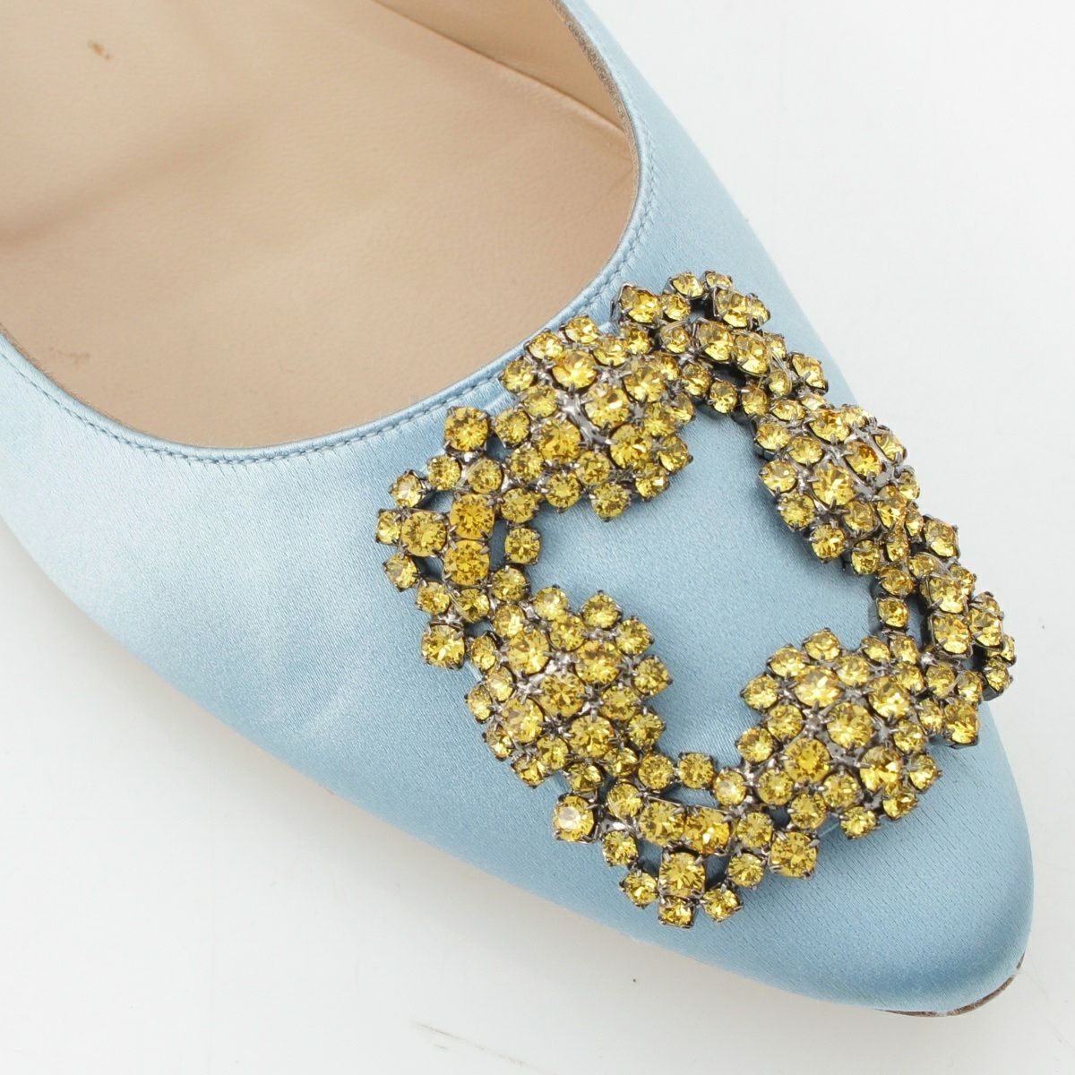 マノロブラニク ハンギシ サテン ビジュー フラット パンプス シューズ ライトブルー 37