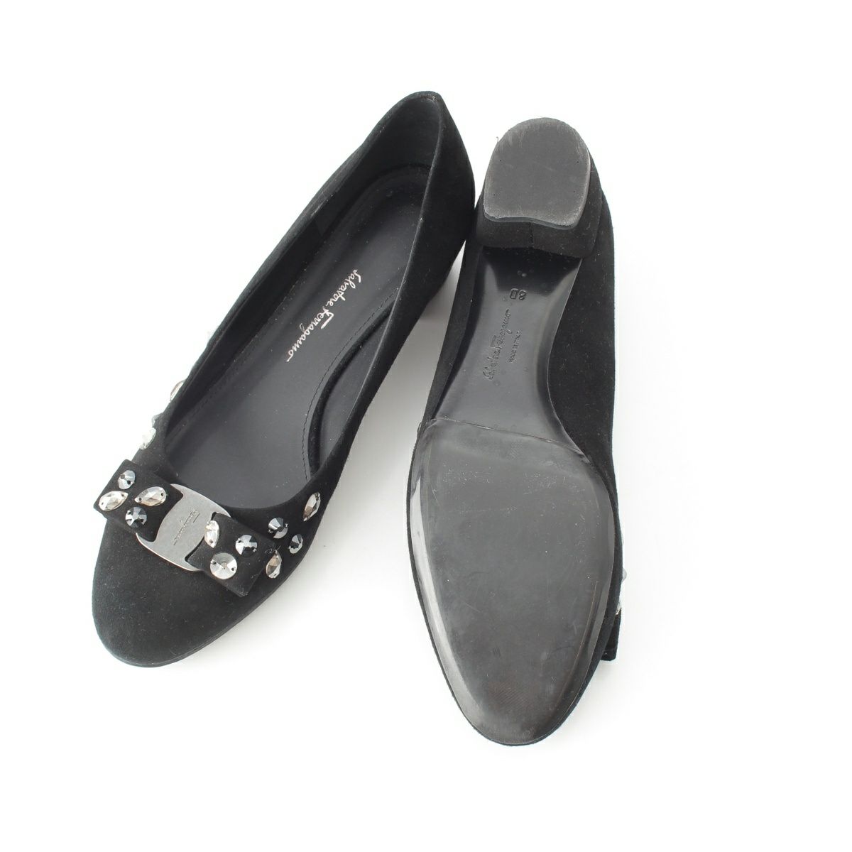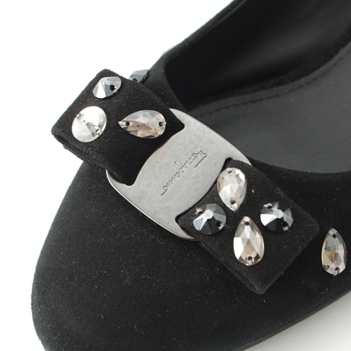 サルヴァトーレフェラガモ ヴァラ スウェード ビジュー パンプス シューズ ブラック 8