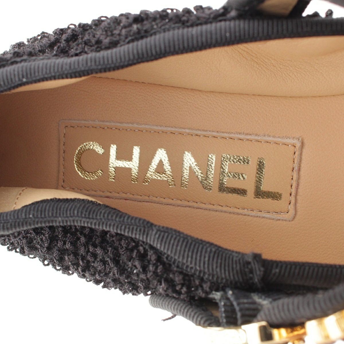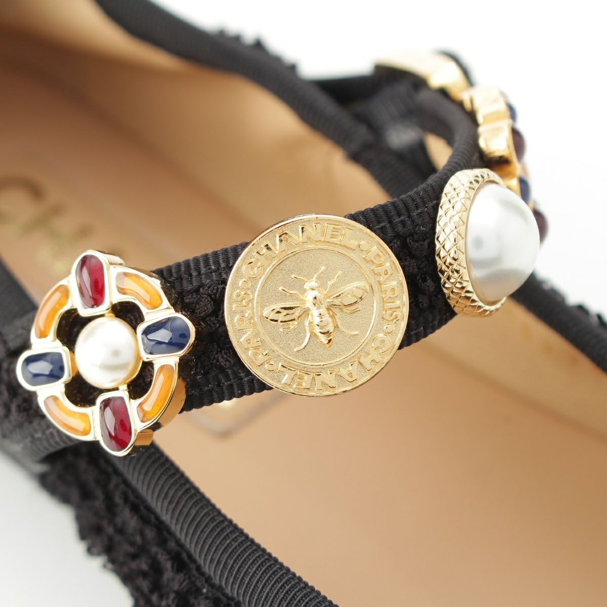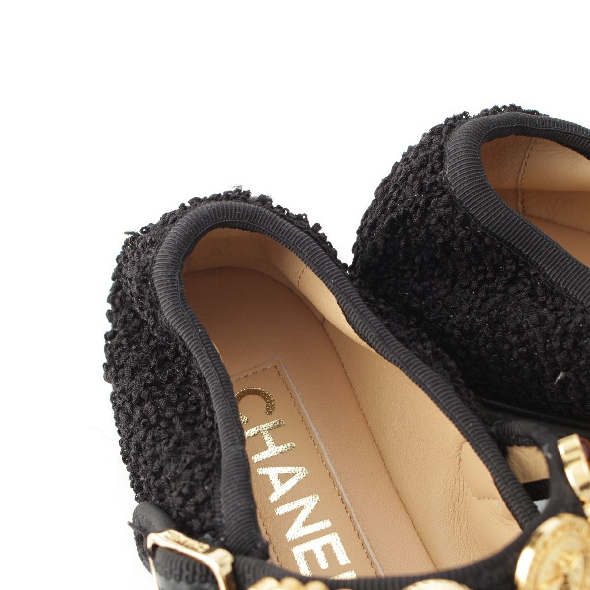 シャネル 2024 Mary Janes アイコン メリージェーン ツイード バレリーナ パンプス ブラック 36 1/2