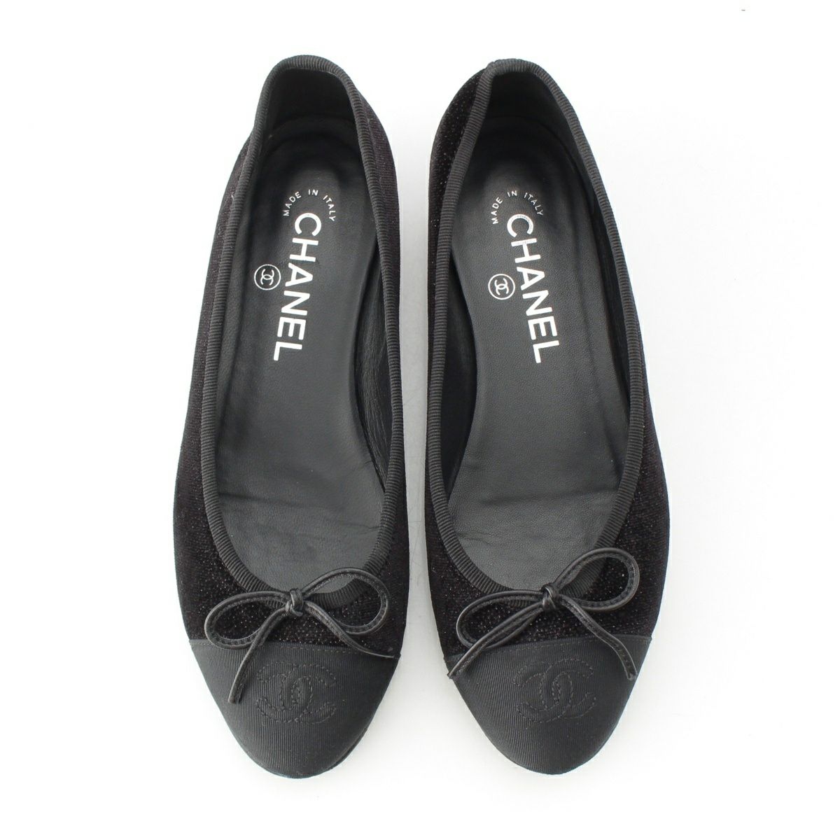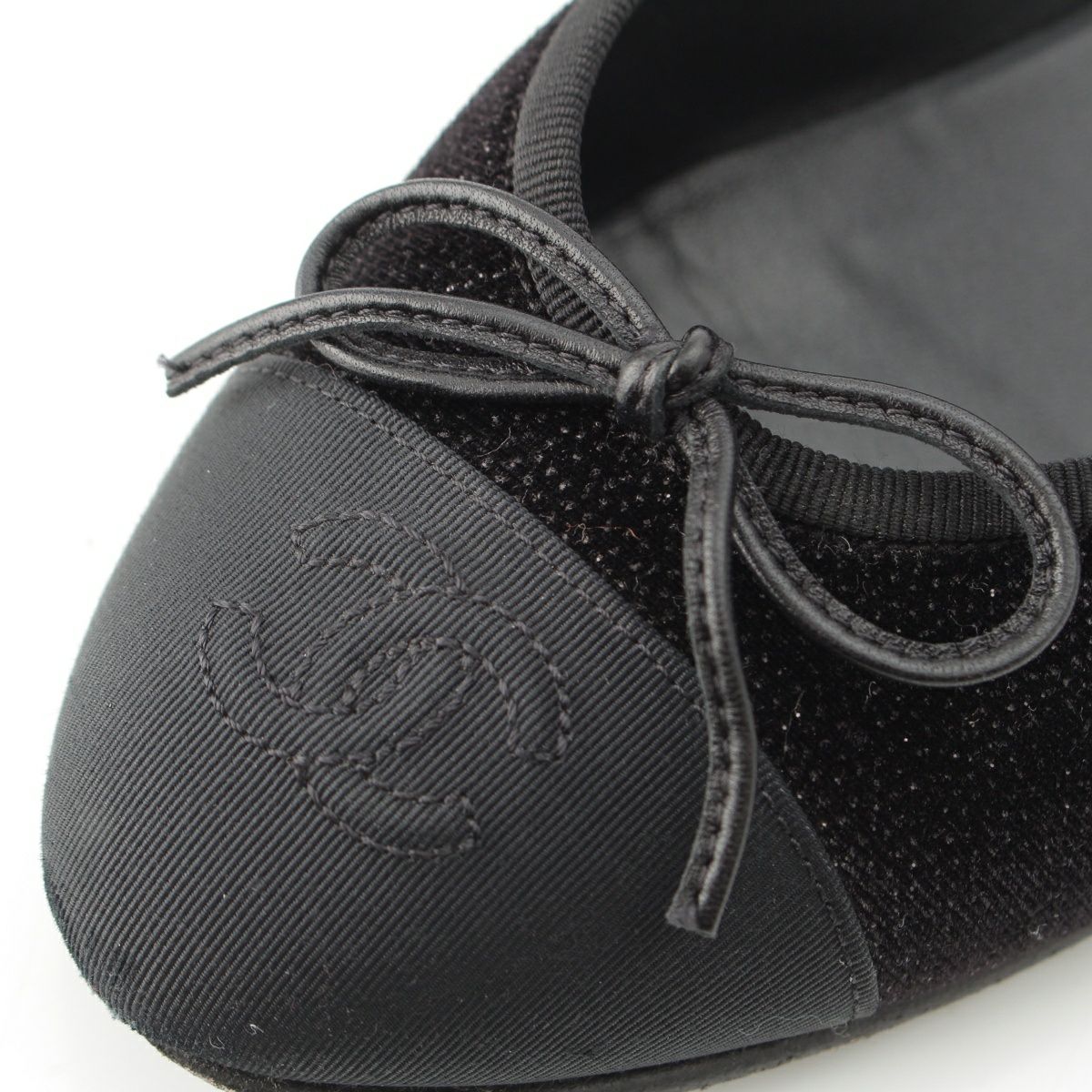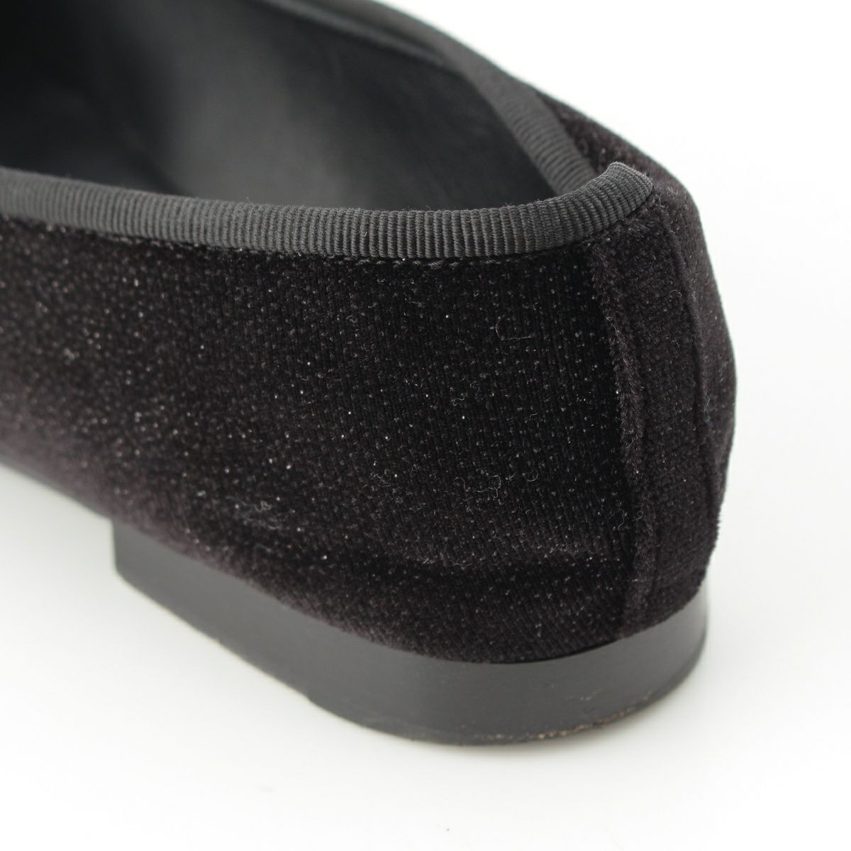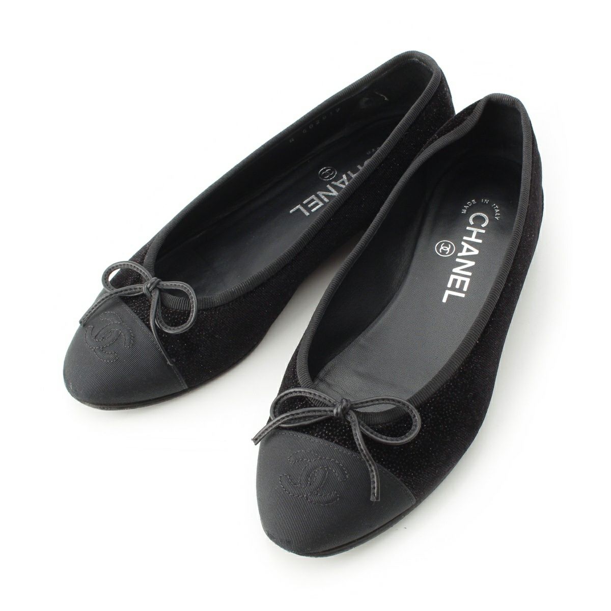 シャネル ベロア ココマーク 刺しゅう リボン パンプス シューズ フラット G02819 ブラック 36 1/2