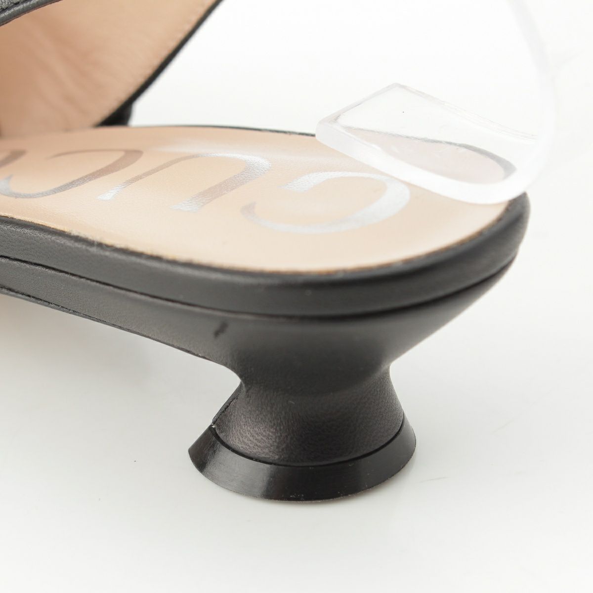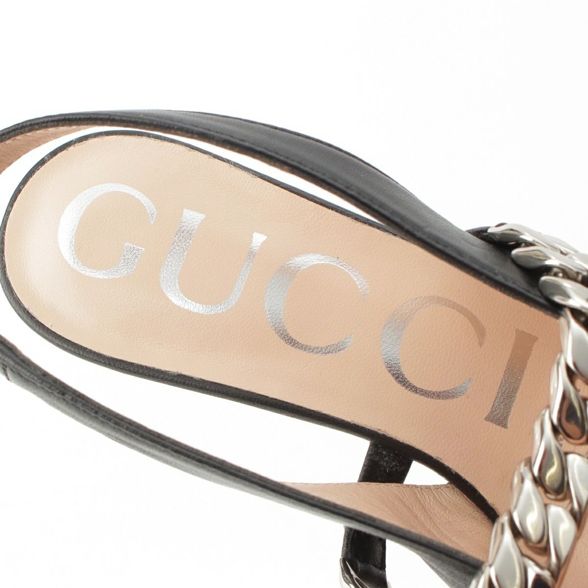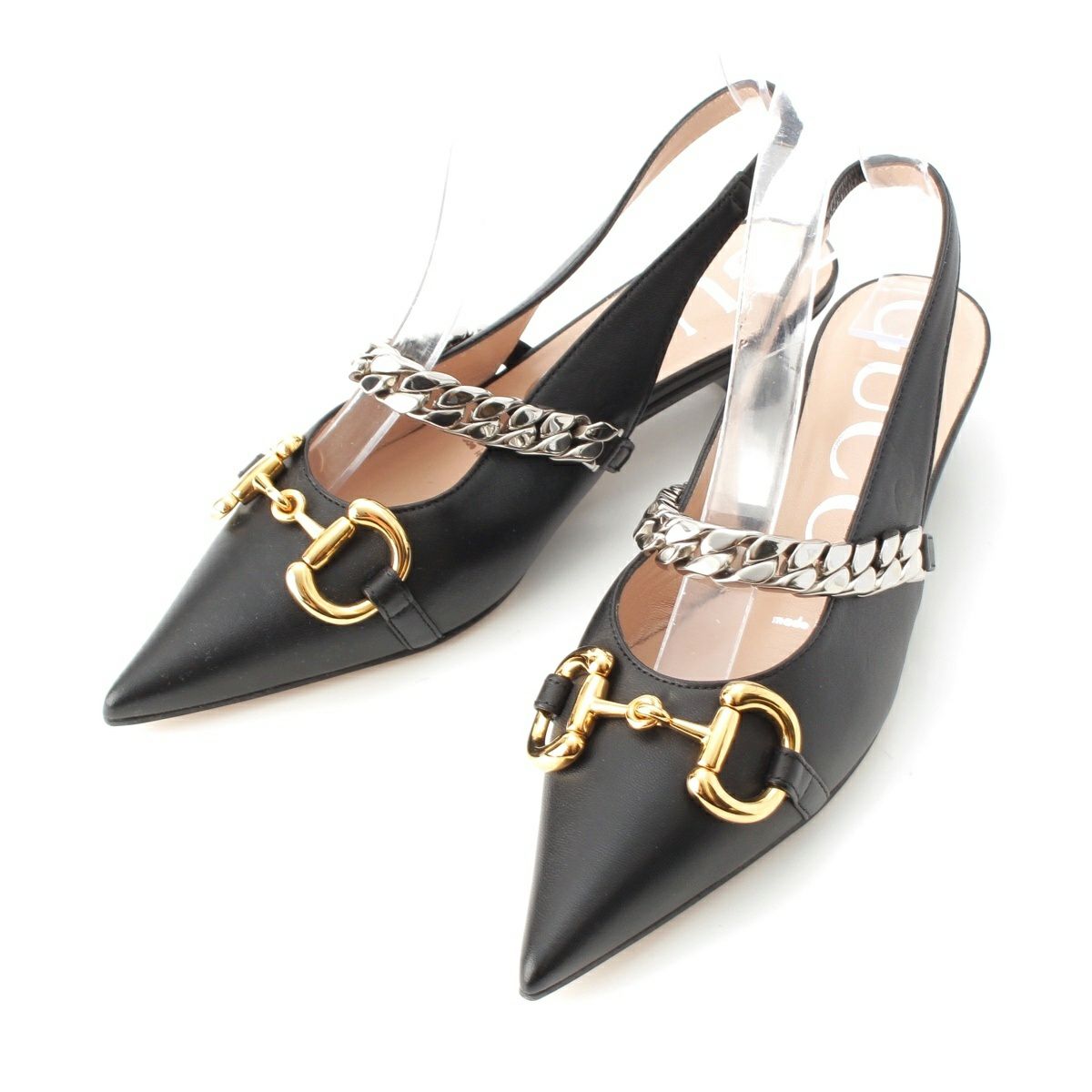 グッチ レザー ホースビット チェーン スリングバック パンプス シューズ 616596 ブラック 34 1/2