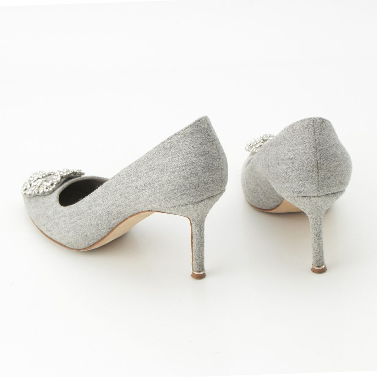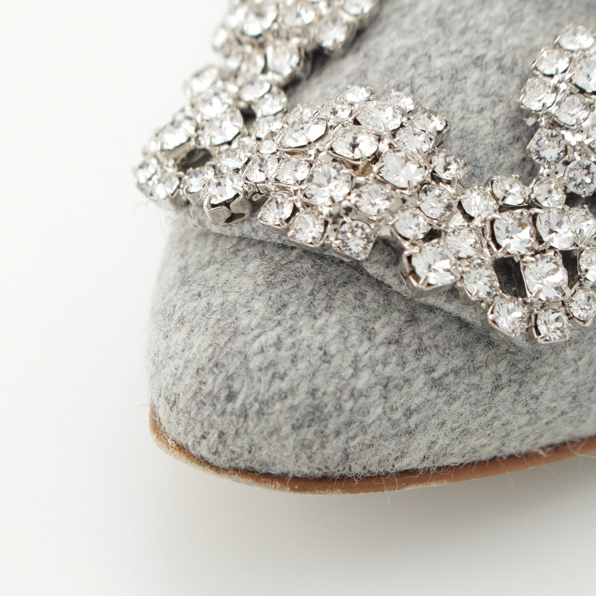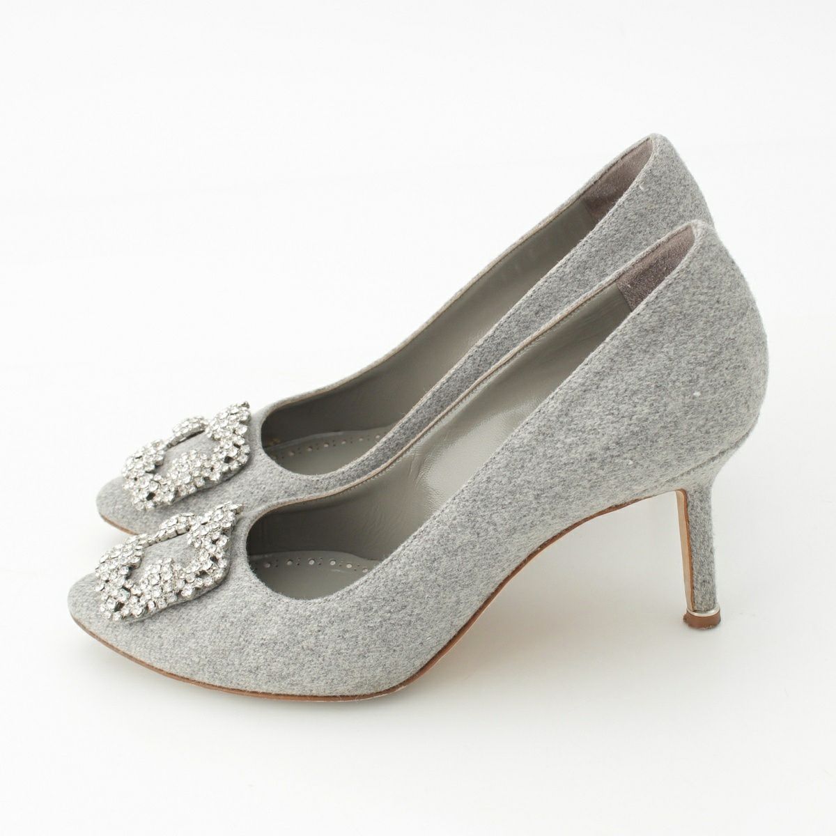 マノロブラニク ウール ハンギシ ビジュー バックル ヒール パンプス シューズ グレー 38