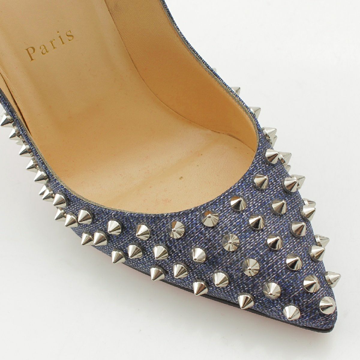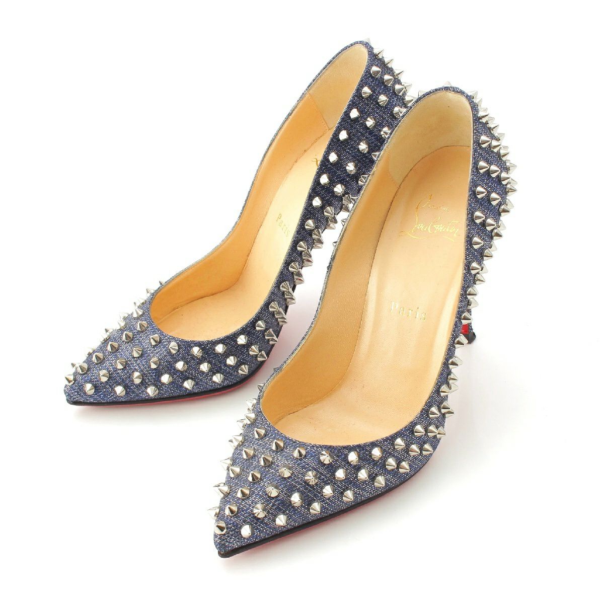 クリスチャンルブタン デニム スタッズ ラメ ヒール パンプス シューズ ブルー 40