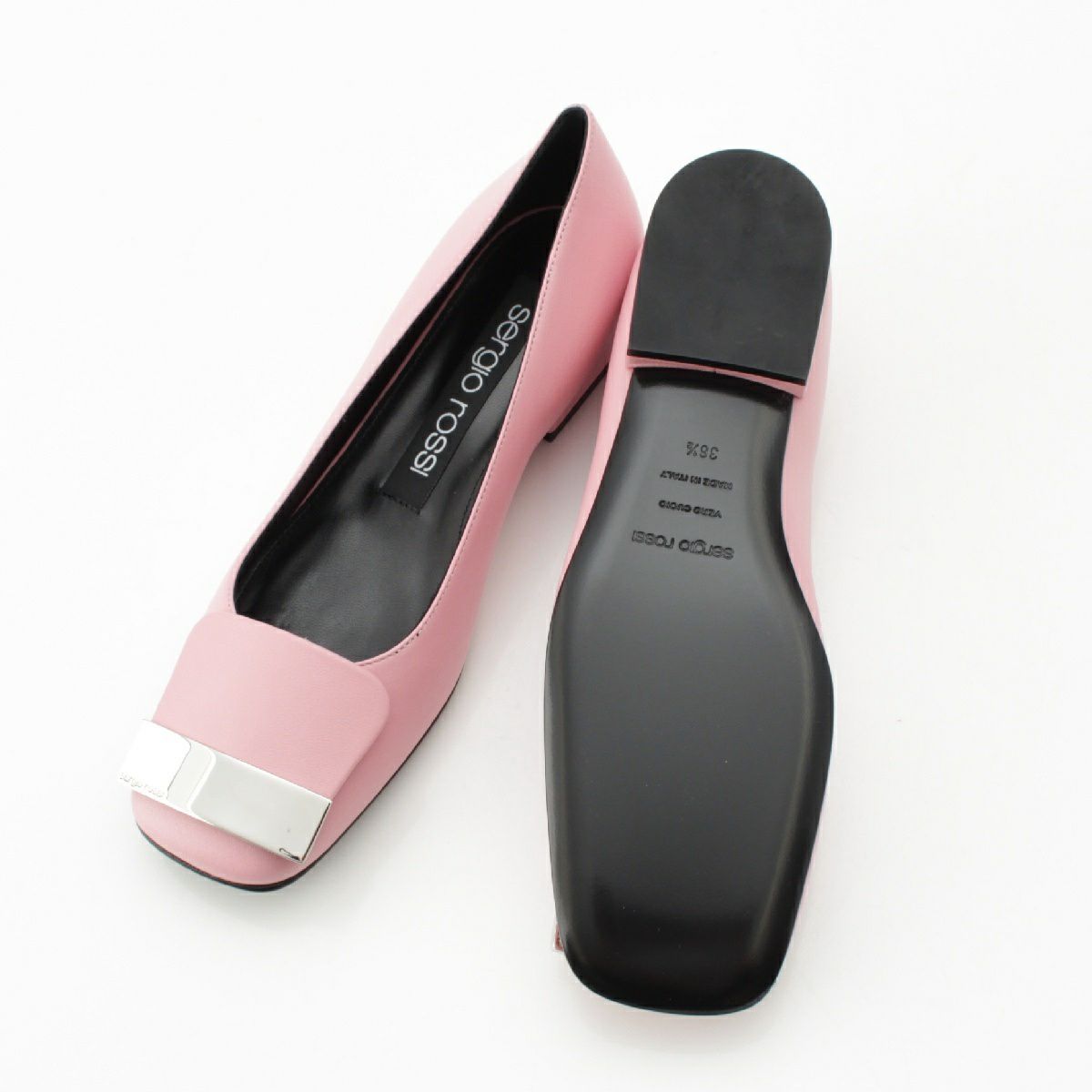 セルジオロッシ SR1 バレリーナ レザー スクエアトゥ フラット パンプス シューズ A83770-MNAN07-5903-110 ピンク 36 1/2
