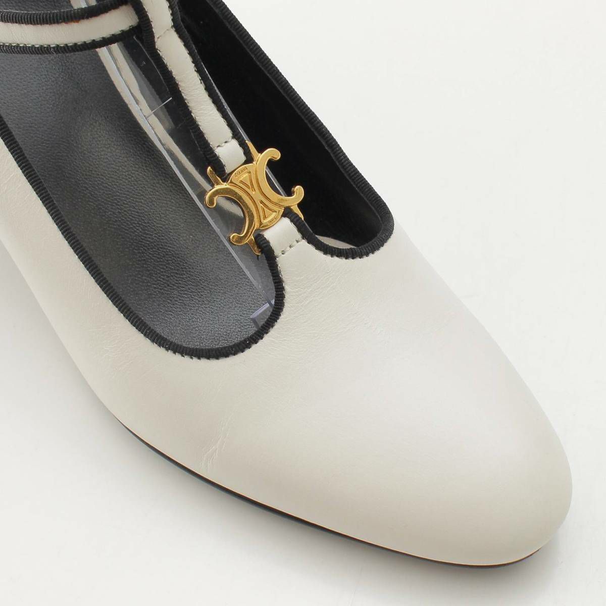 セリーヌ トリオンフ Tストラップ レザー パンプス ヒール シューズ ホワイト 36.5