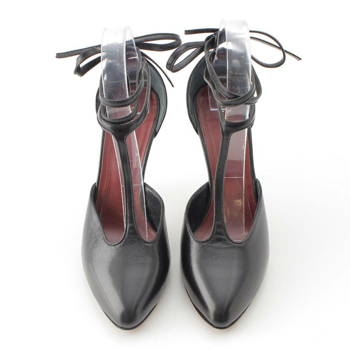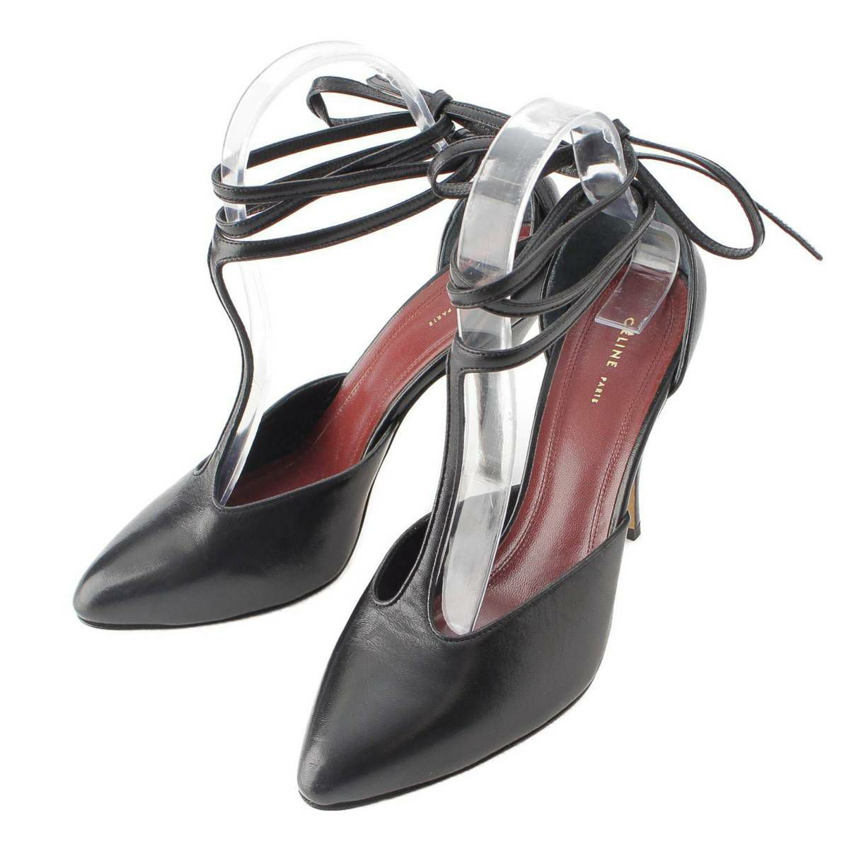 セリーヌ フィービー期 Tストラップ リボン レザー パンプス ヒール ブラック 36.5