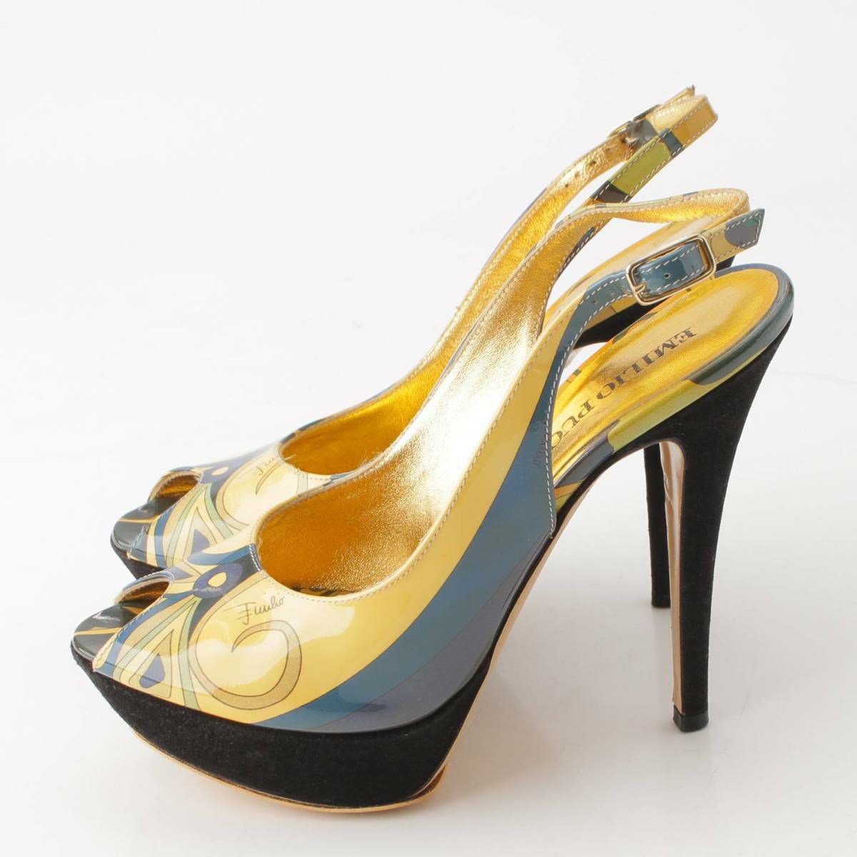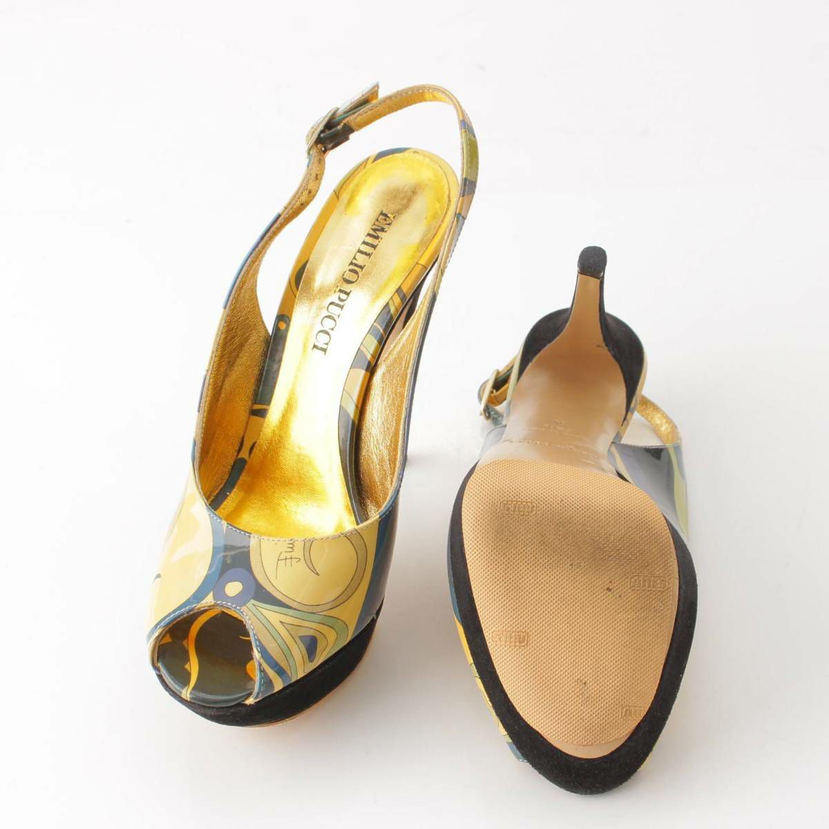 踵部分に色落ち、つま先付近に変色、ヒールに傷あり