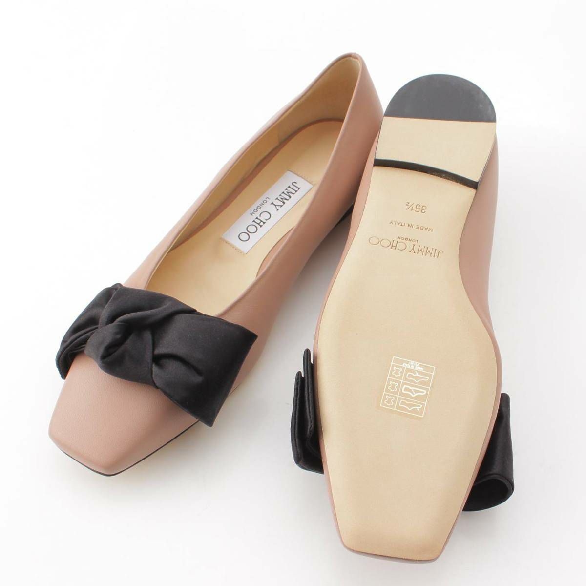 ジミーチュウ Jimmy Choo BERTELLE リボン レザー フラット パンプス シューズ ピンク 35 1/2