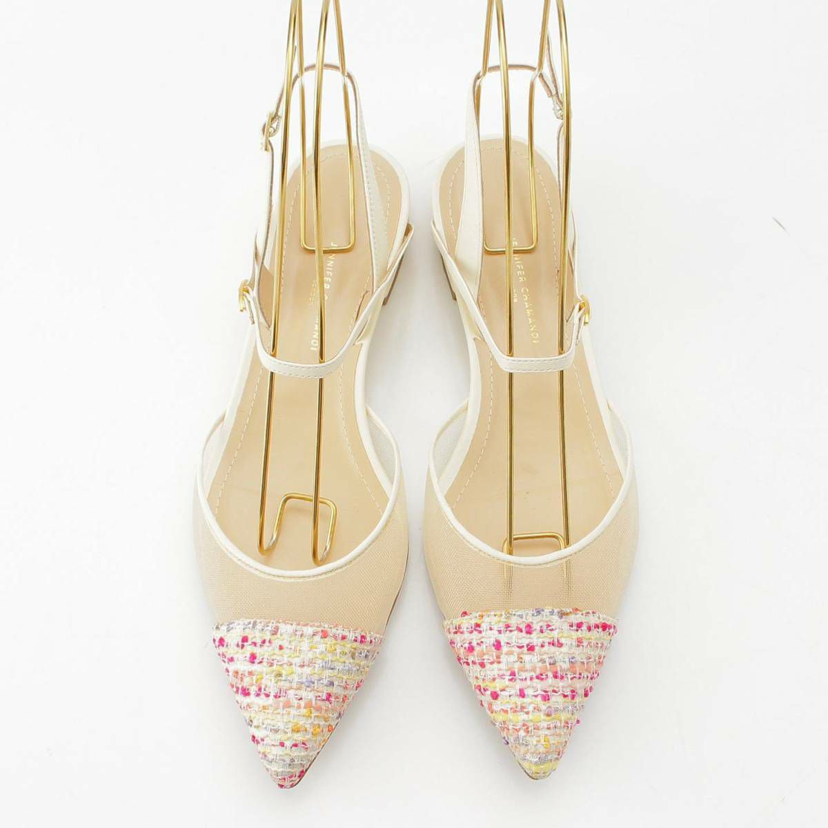 ジェニファーチャマンディ ツイード メッシュ フラット パンプス ベージュ×ピンク 39