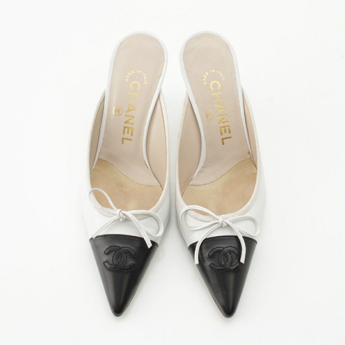 他の画像を見る CHANEL シャネル レザー ココマーク ポインテッドトゥ リボン ヒール パンプス ミュール サンダル ブラック×ホワイト 34 1/2 在庫切れ お気に入りに登録する 当店特別価格 ¥ 22,000 税込 円 20,000円