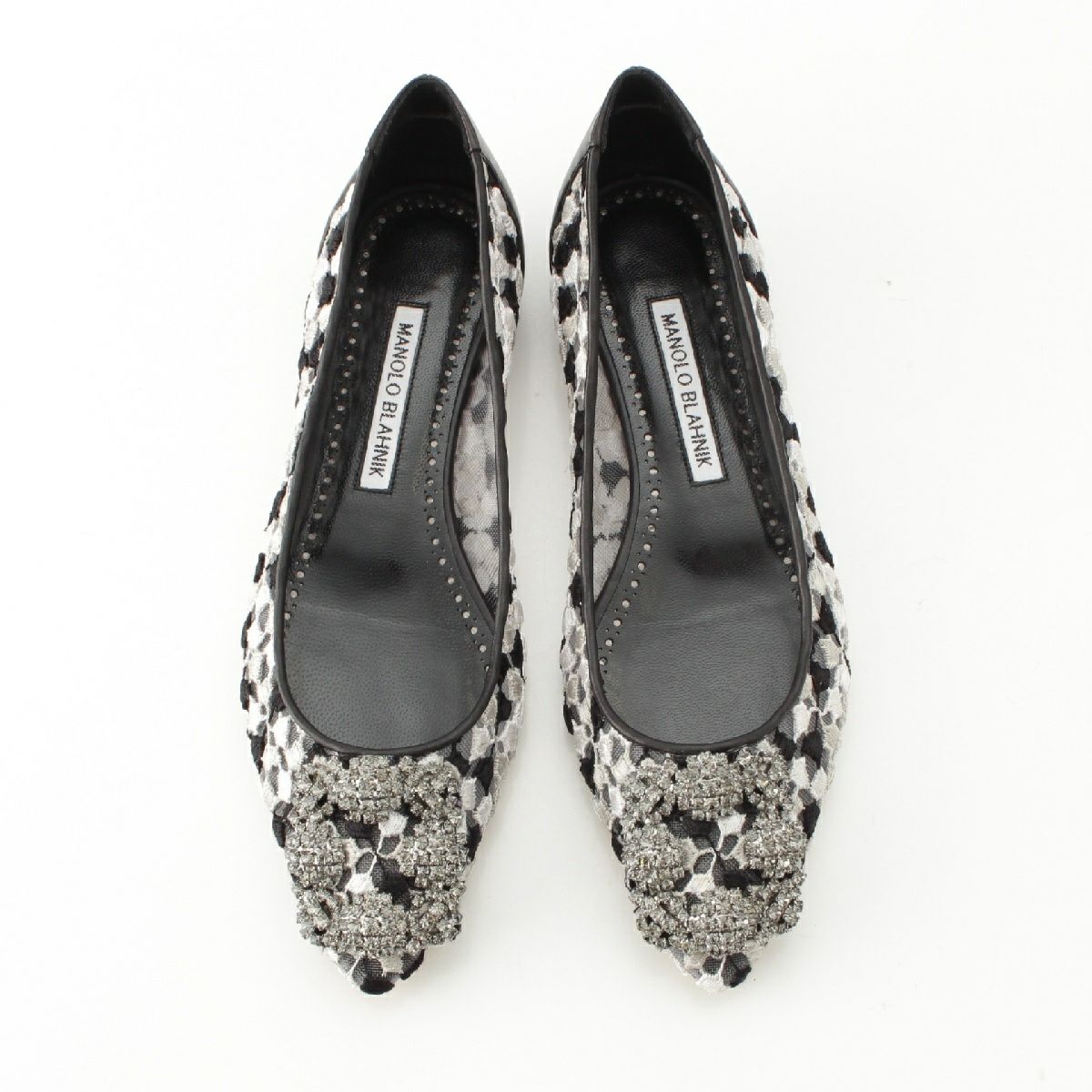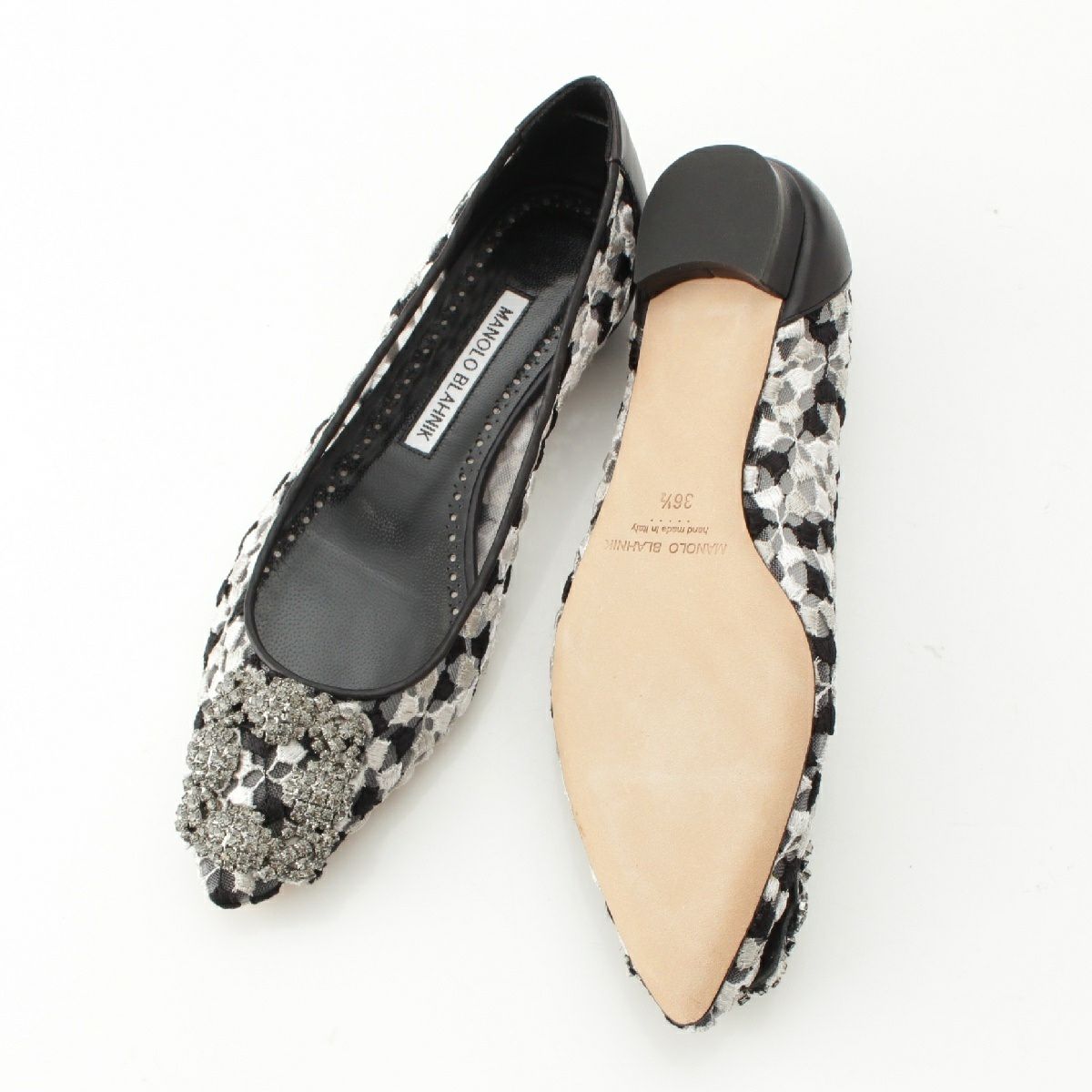 他の画像を見る MANOLO BLAHNIK マノロブラニク ハンギシ レース ビジューバックル フラット パンプス シューズ ブラック×ホワイト 36 1/2 在庫切れ お気に入りに登録する 当店特別価格 ¥ 42,900 税込 円 39,000円