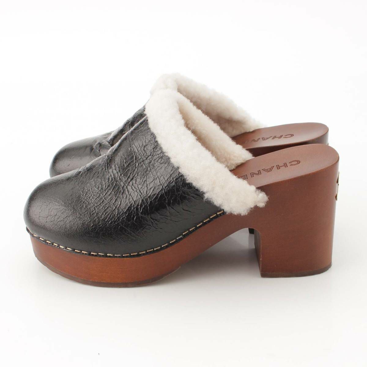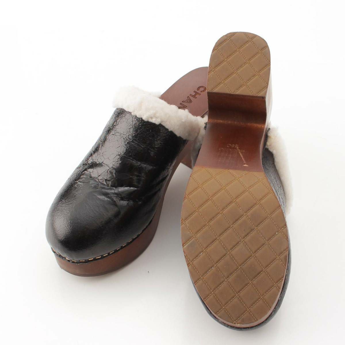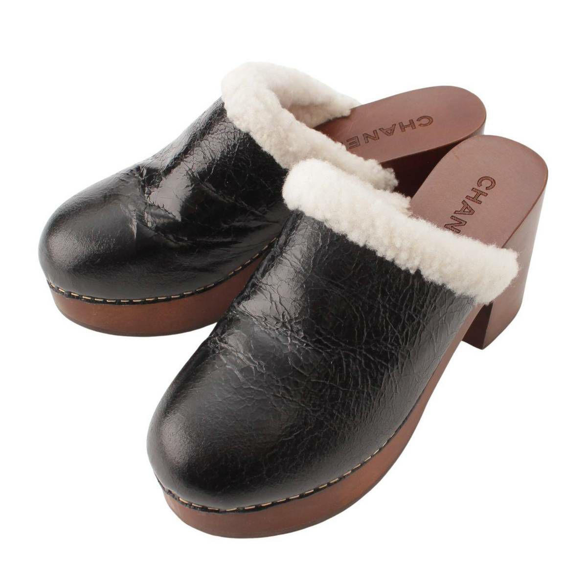 シャネル シープスキン ムートン ココマーク クロッグ サボ サンダル ミュール シューズ G35368 ブラック 38