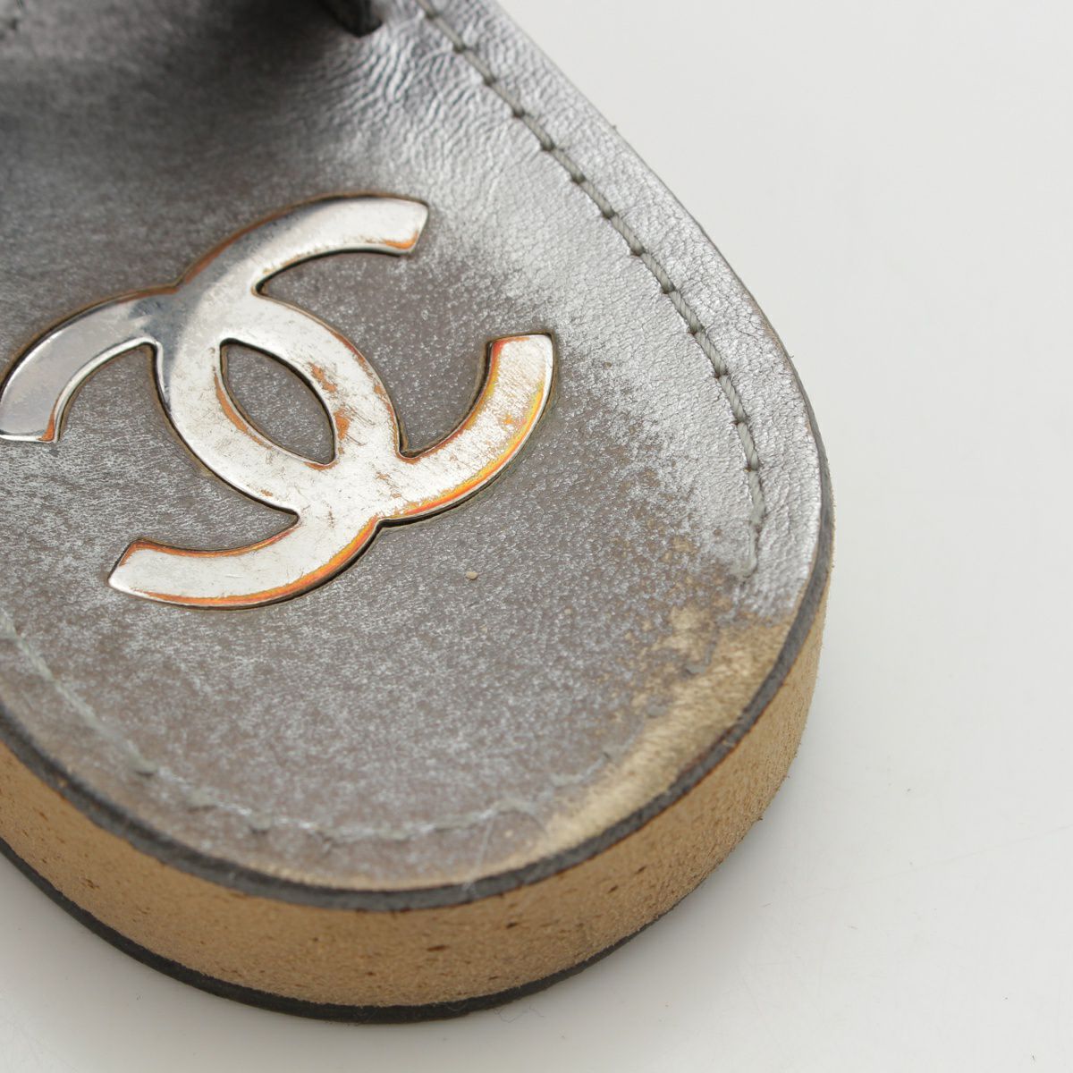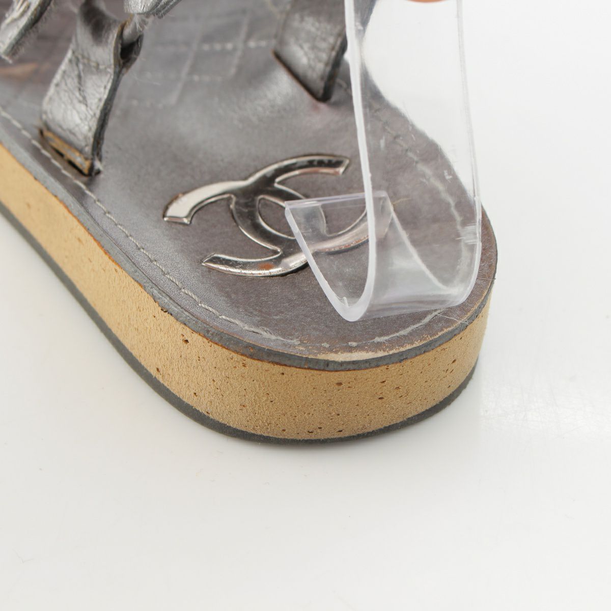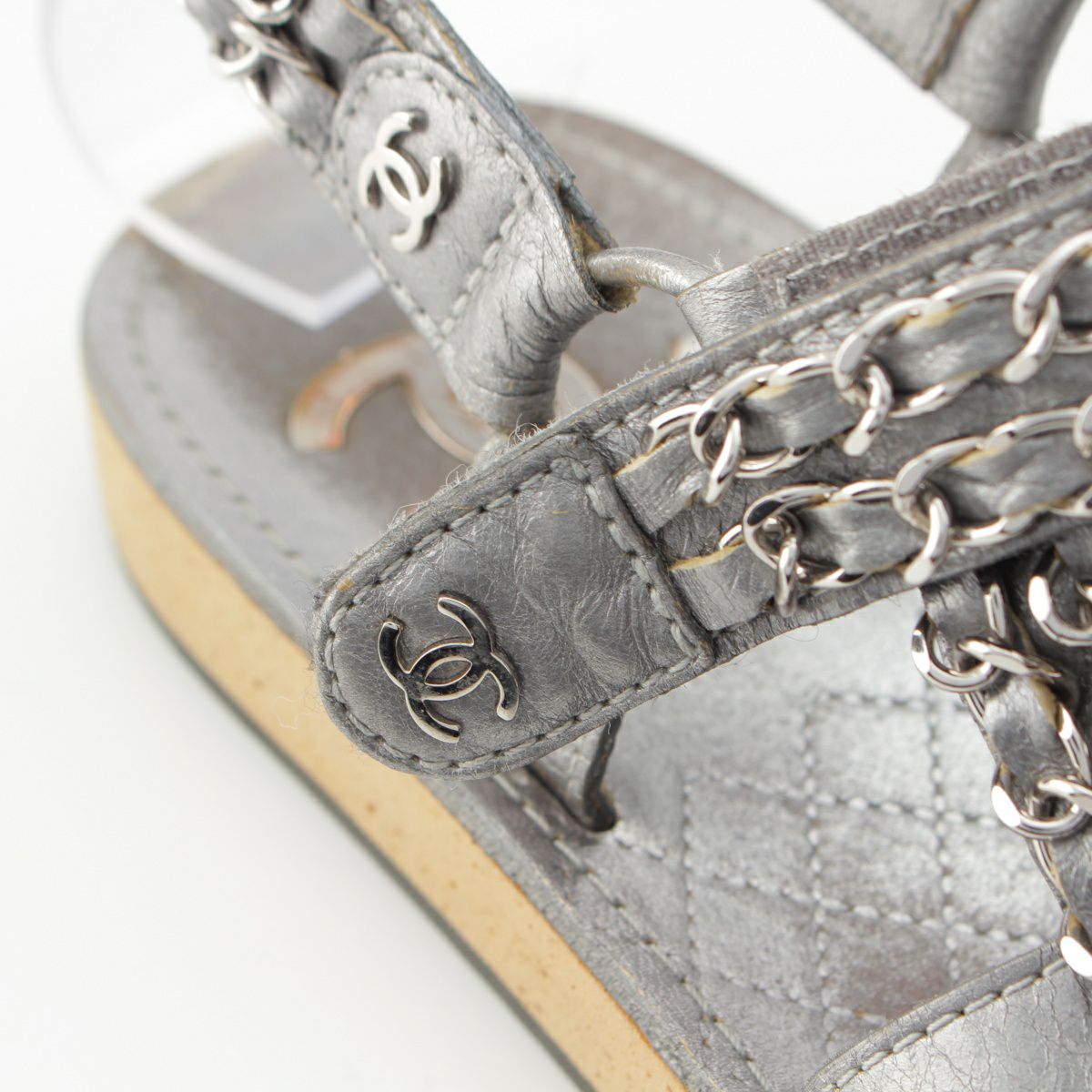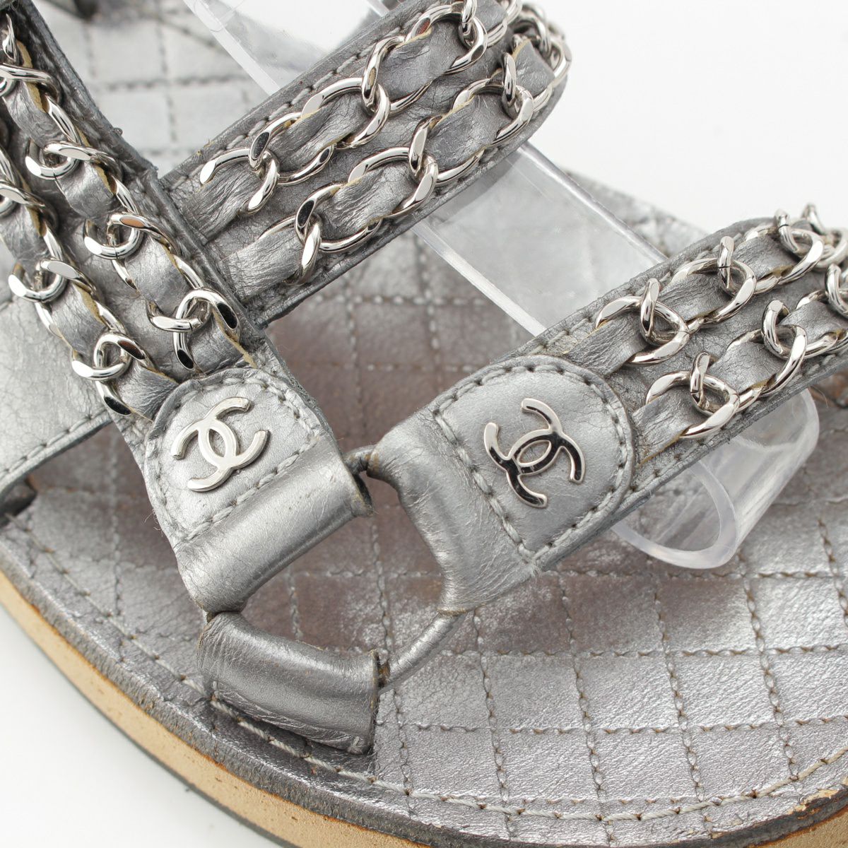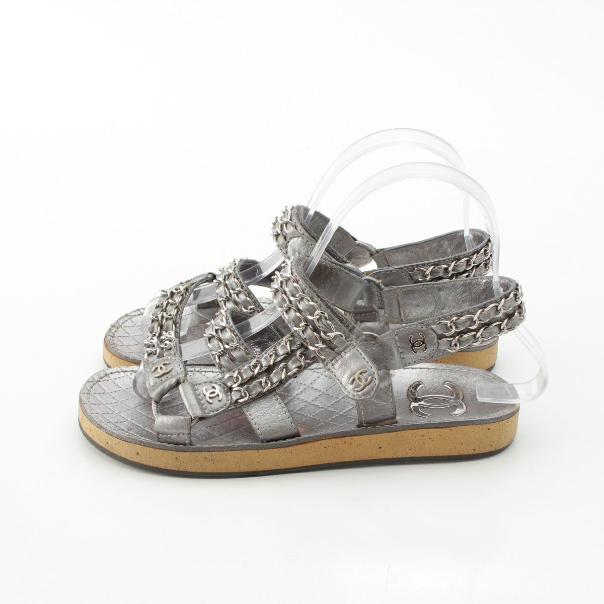 シャネル レザー ココマーク チェーンベルト ストラップ サンダル シューズ G33800 シルバー 35C