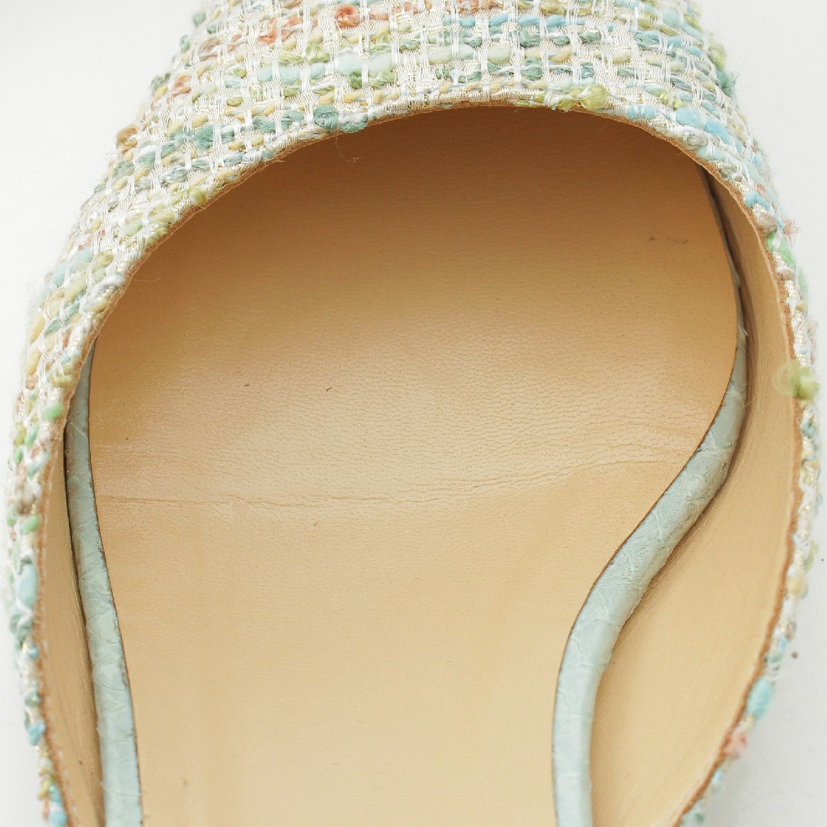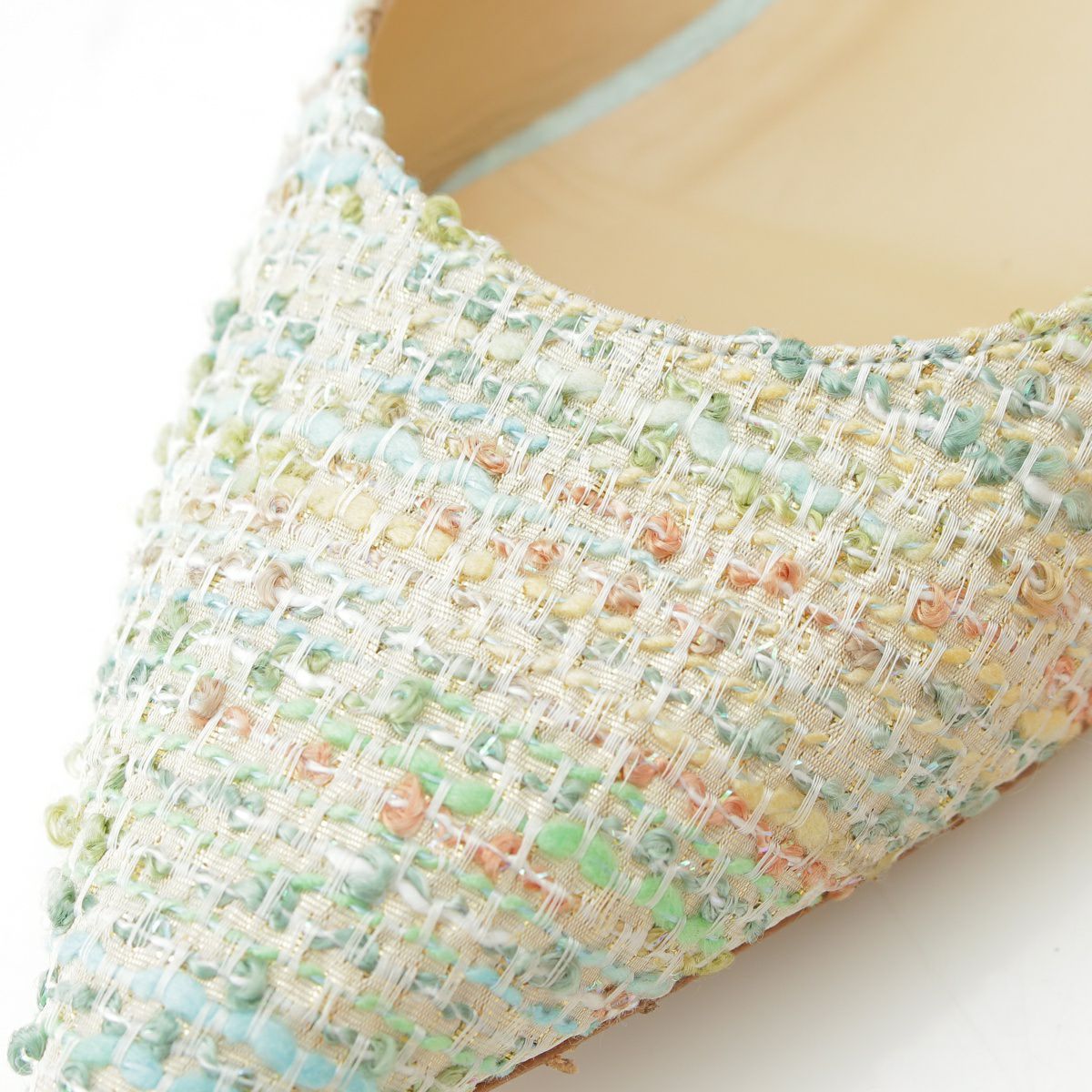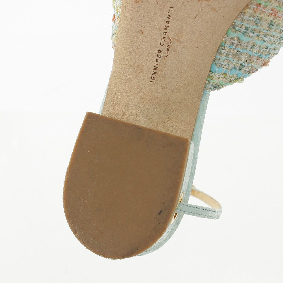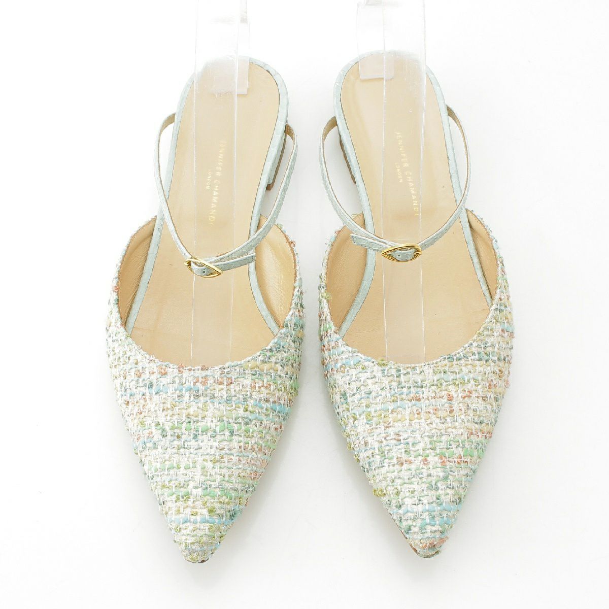 ジェニファーチャマンディ Jennifer Chamandi ツイード レザー ポインテッドトゥ ベルト フラット サンダル ライトブルー 39
