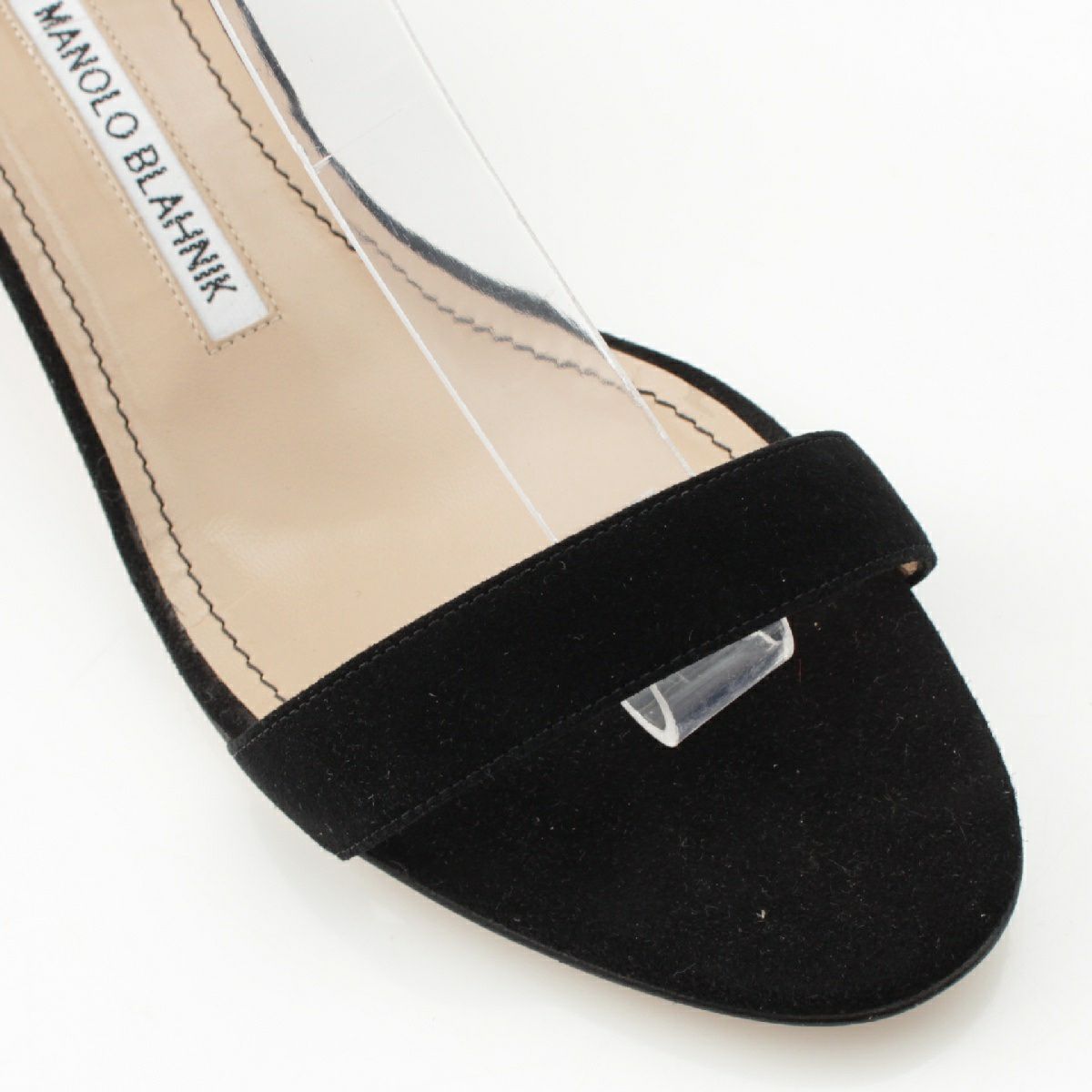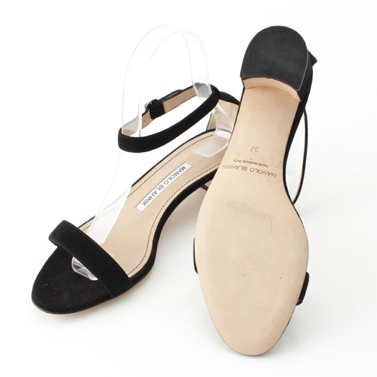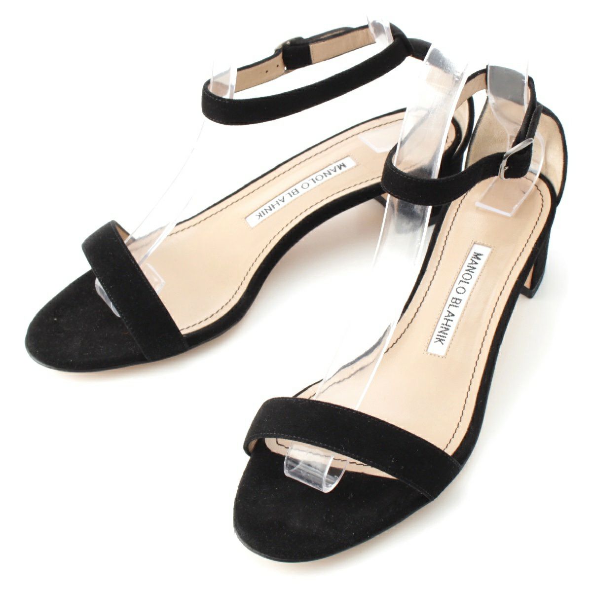 マノロブラニク Chaflahi スエード ストラップ ヒール サンダル 99WCHASUE030 ブラック シルバー金具 37