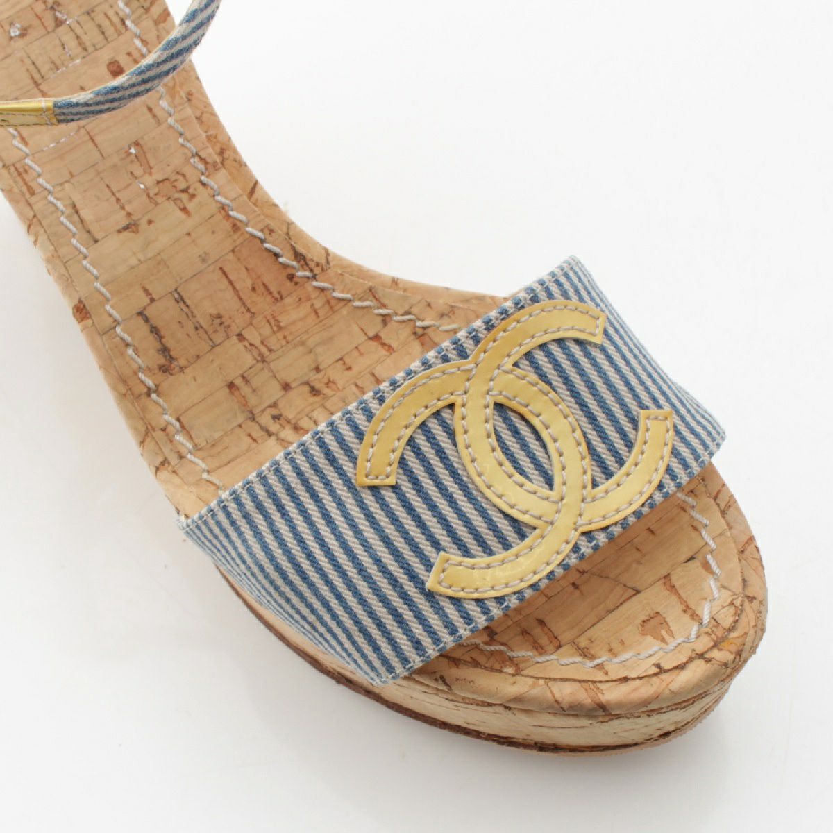 シャネル ココマーク ストライプ ウェッジソール サンダル G25915 ブルー 37