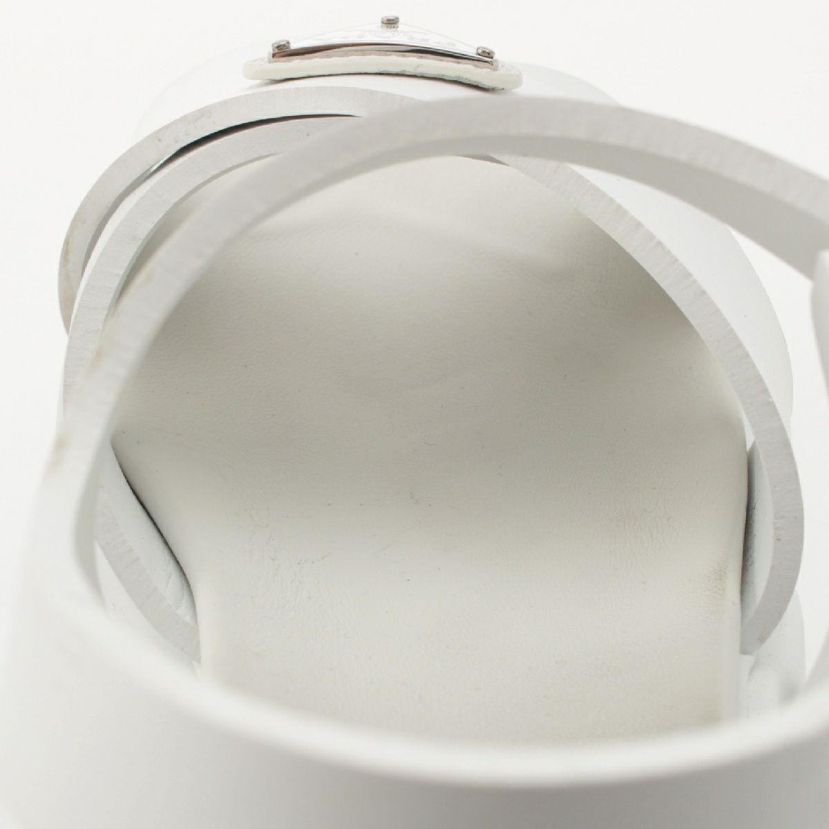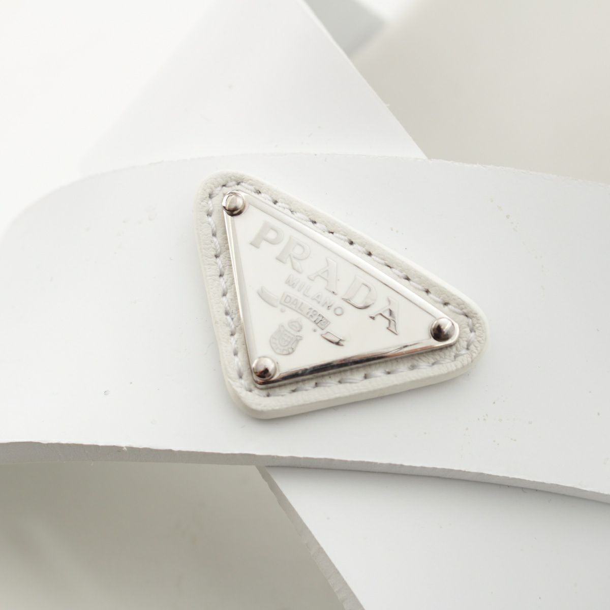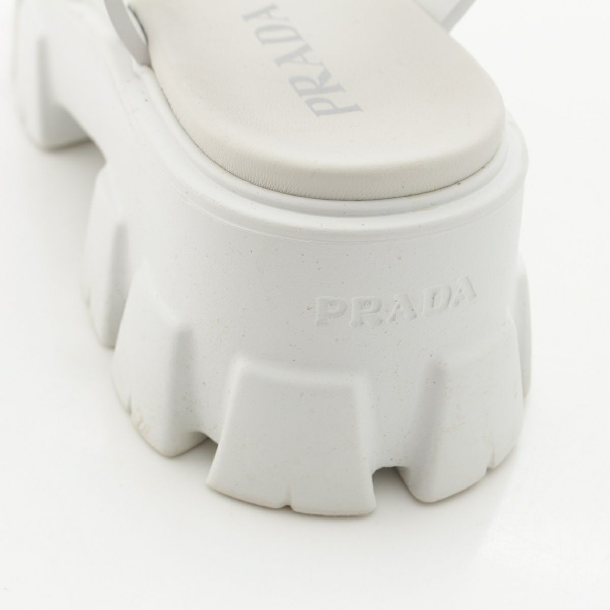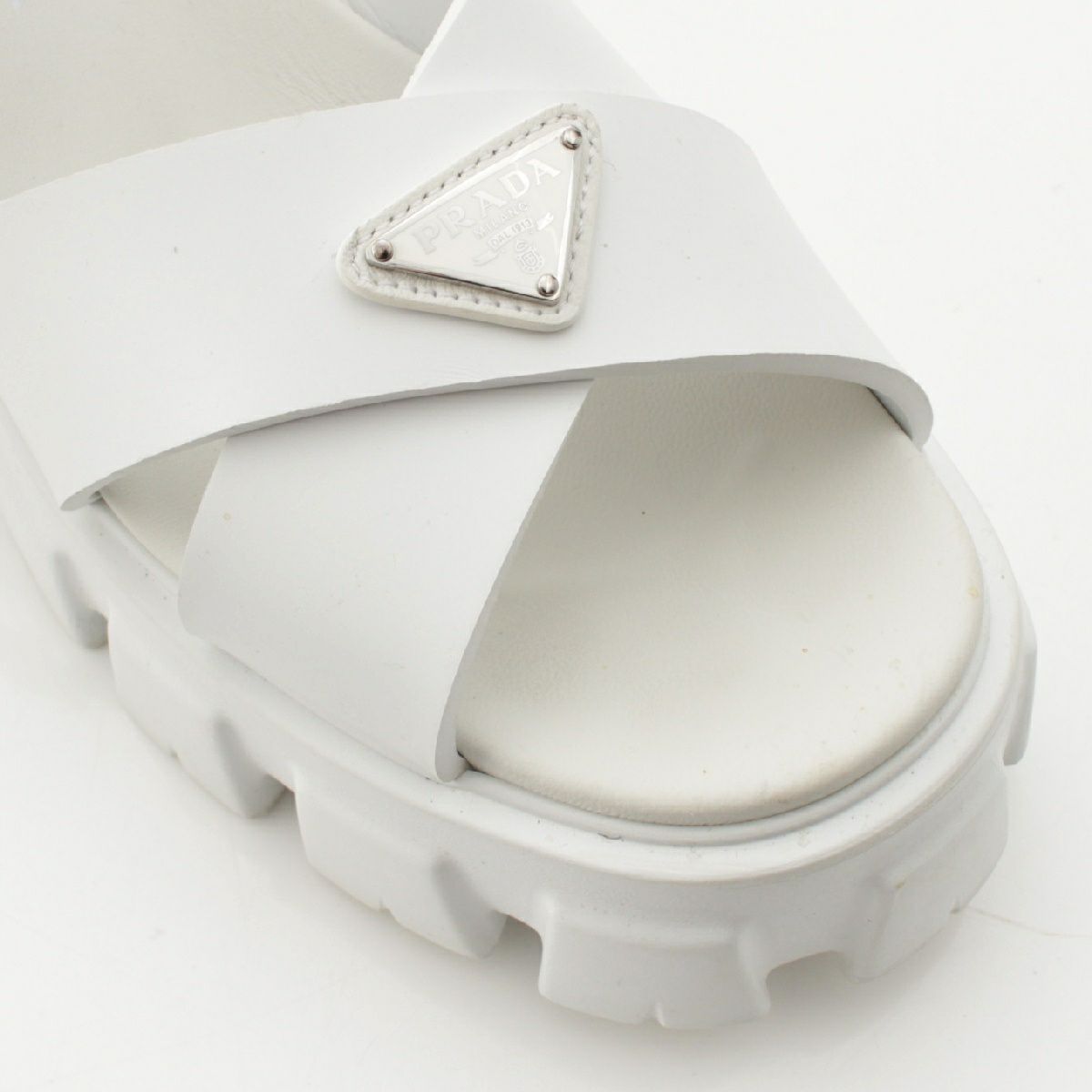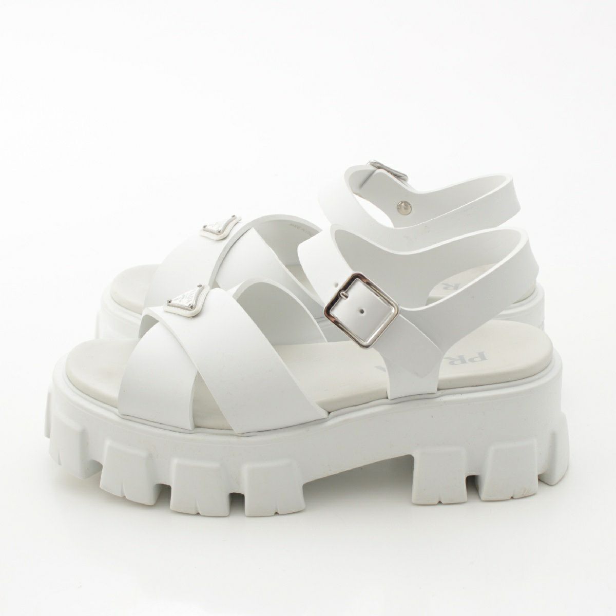 プラダ モノリス ラバー トライアングルロゴ 三角プレート プラットフォーム サンダル ストラップ 厚底 ホワイト シルバー 39