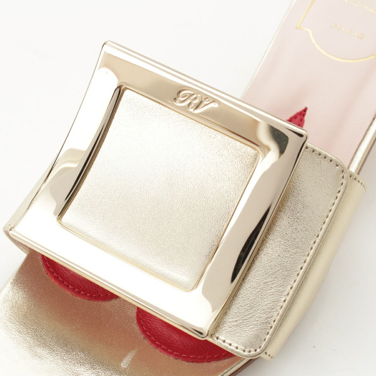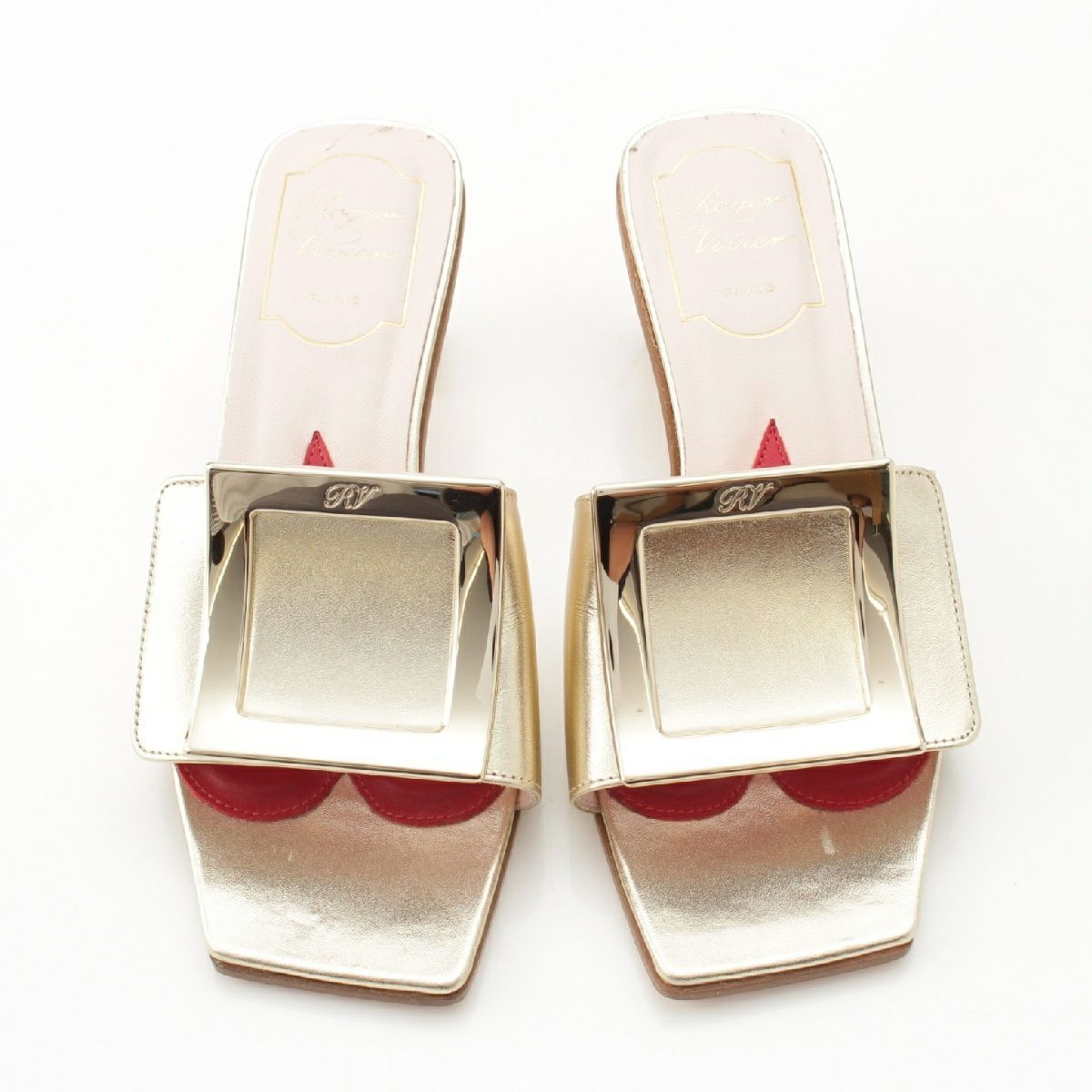 ロジェヴィヴィエ LOVE METAL レザー メタルバックル ミュール ヒール サンダル ゴールド 35