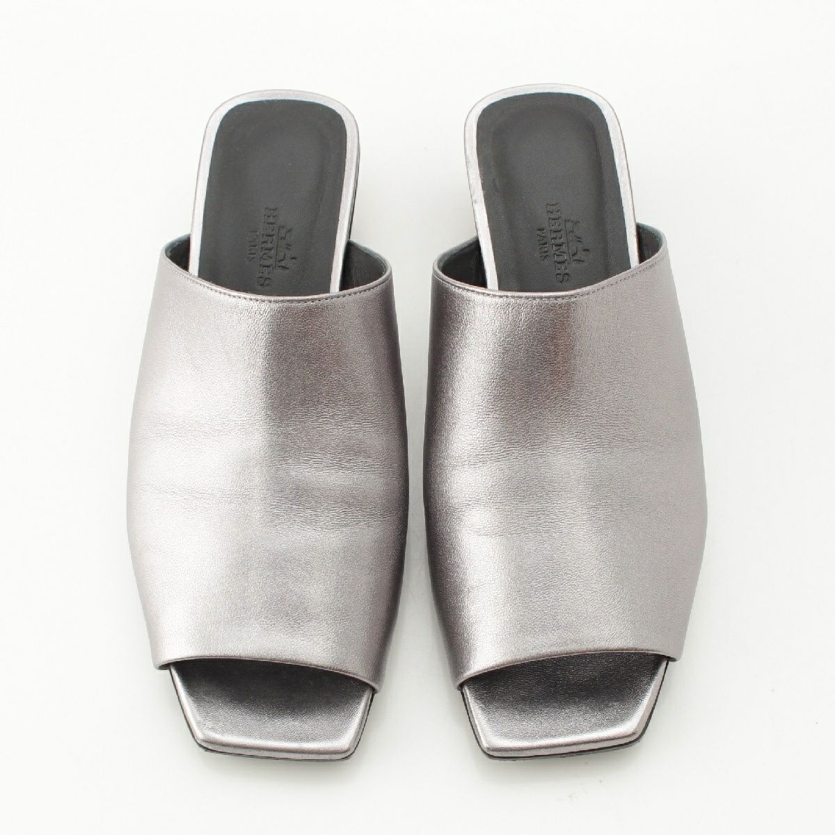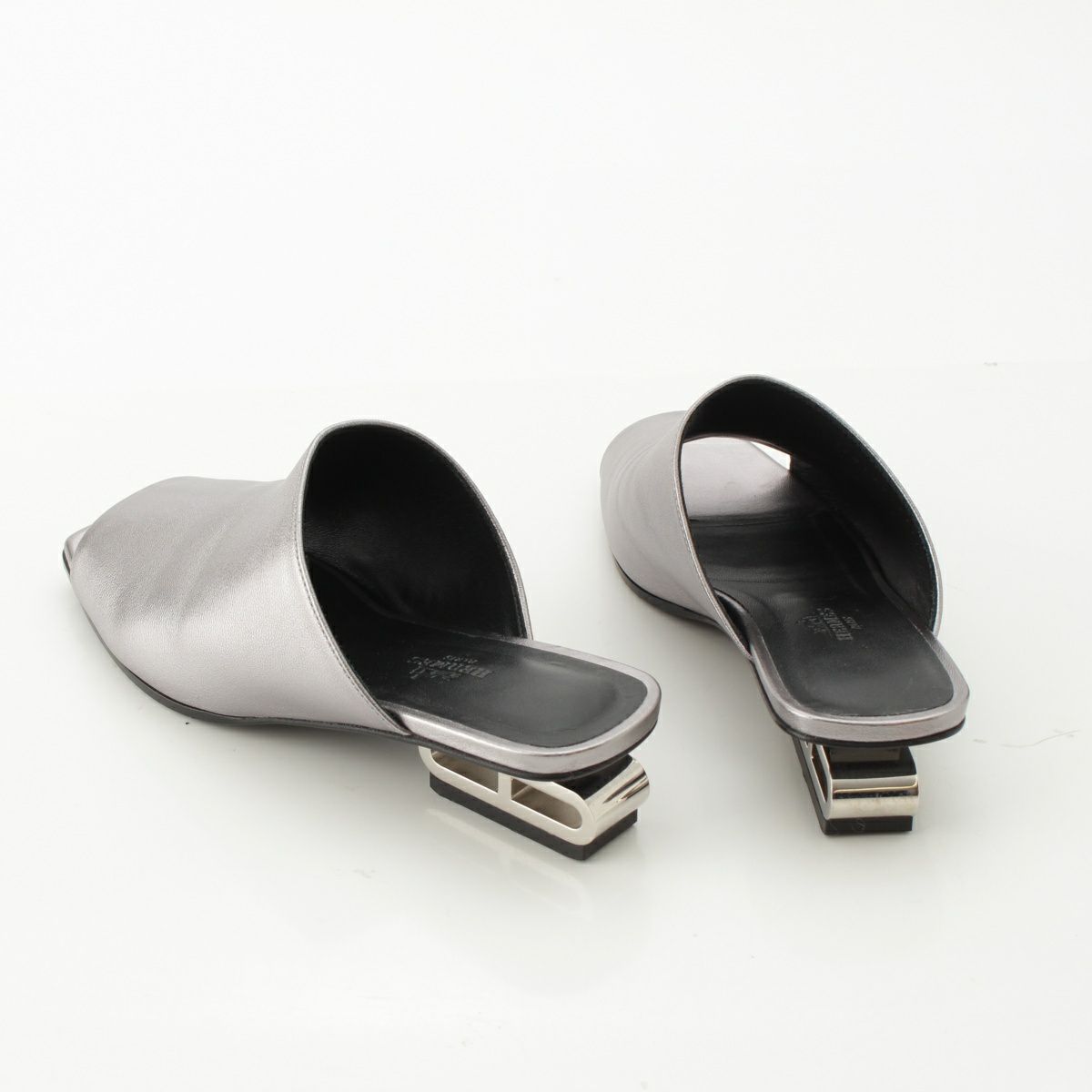 エルメス 24SS アイドル シェーヌダンクルヒール ミュール サンダル シューズ シルバー 37