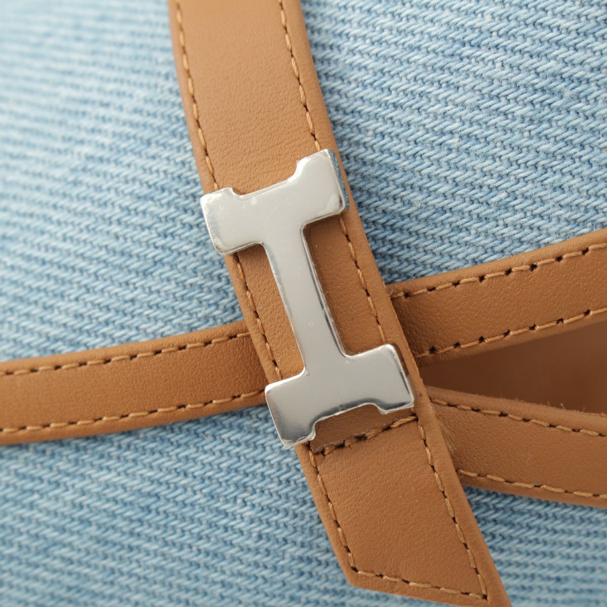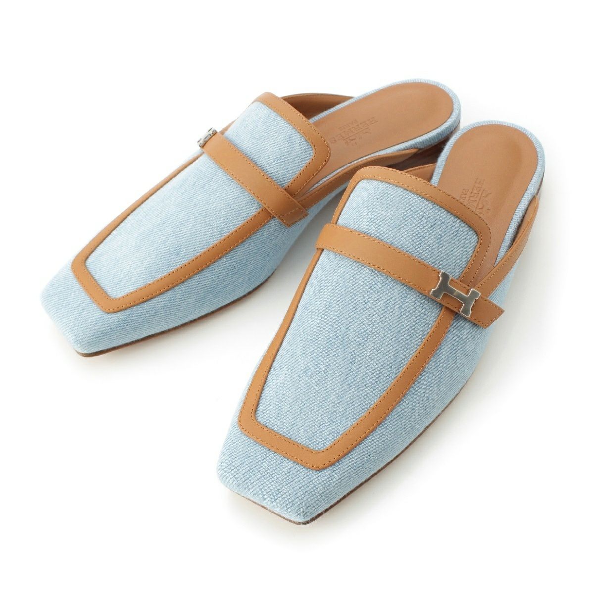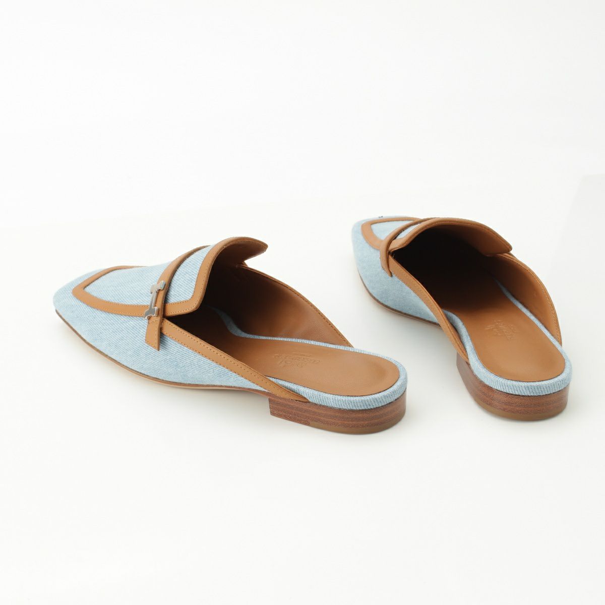 エルメス グルーピー デニム レザー ミュール サンダル ブルー ブラウン 37