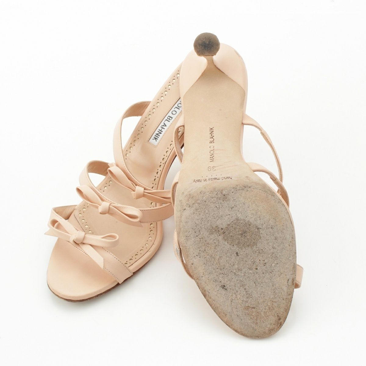 マノロブラニク IRCANAMU レザー ヌード リボンサンダル ミュール ピンクベージュ 39