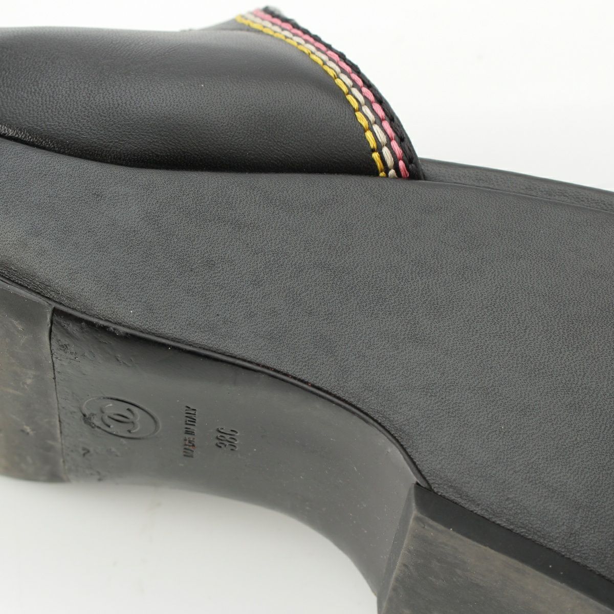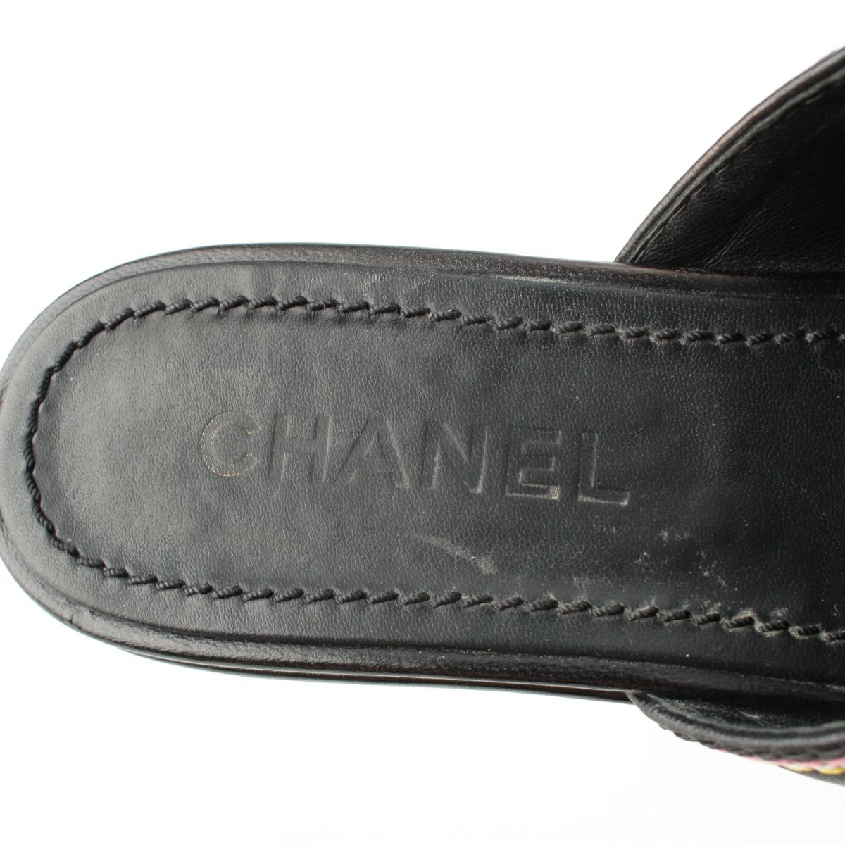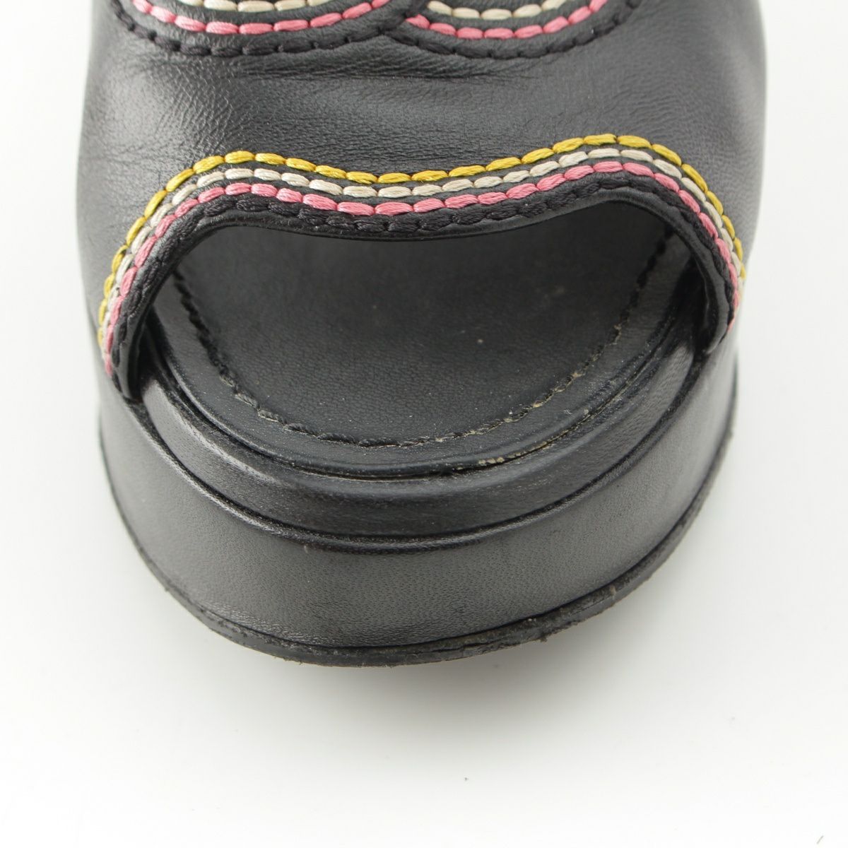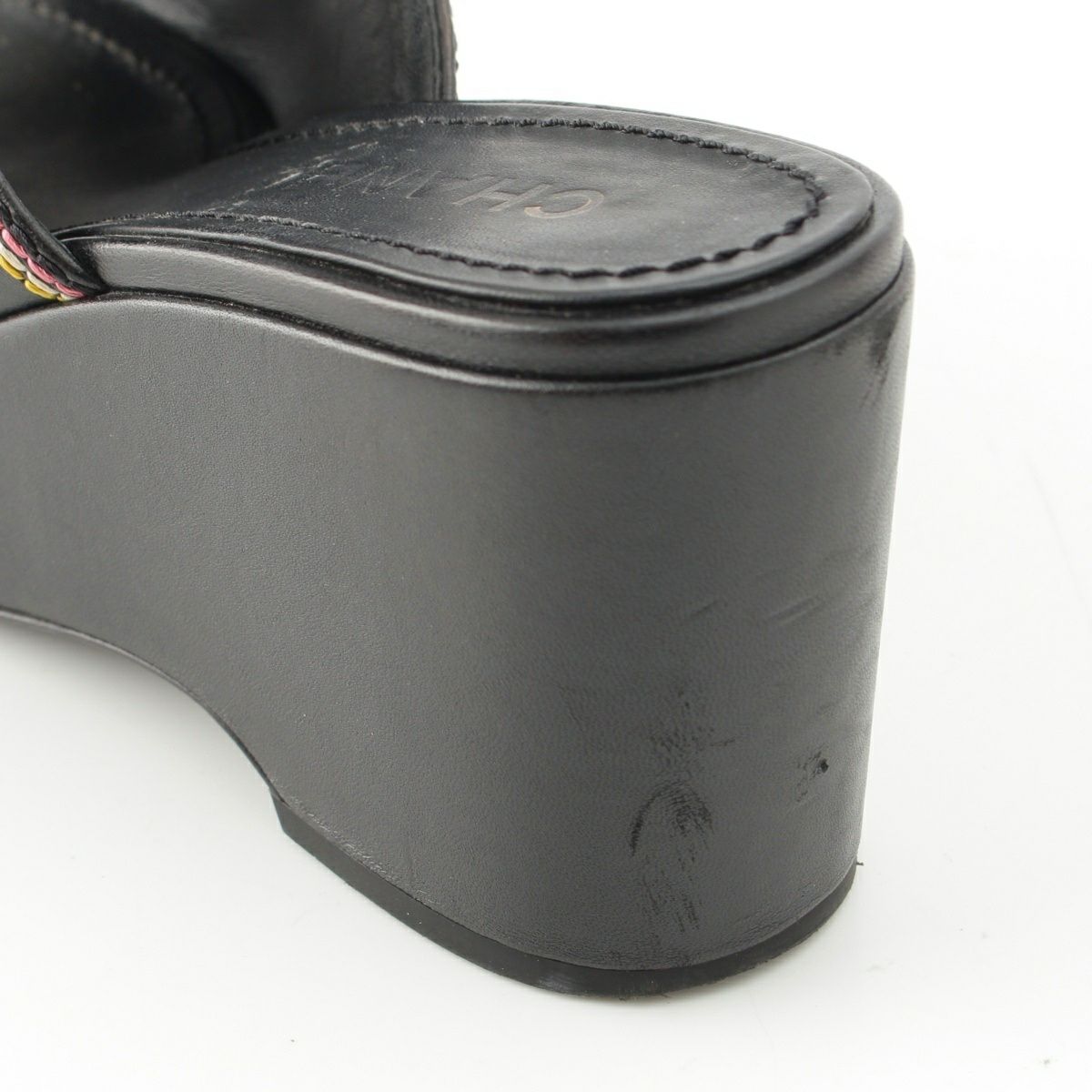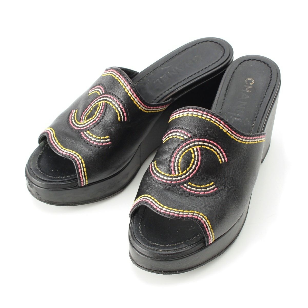 シャネル 21年 レザー ワイルドステッチ CC ココマーク ウェッジソール ヒール サンダル G37234 ブラック 38