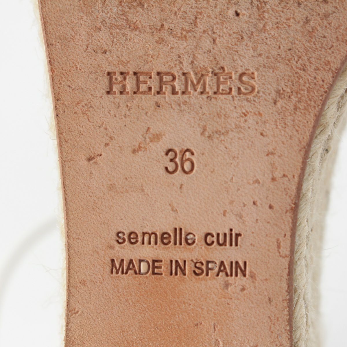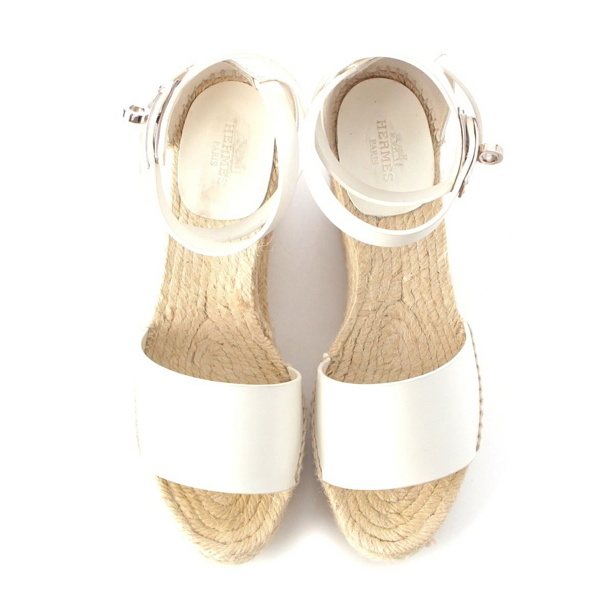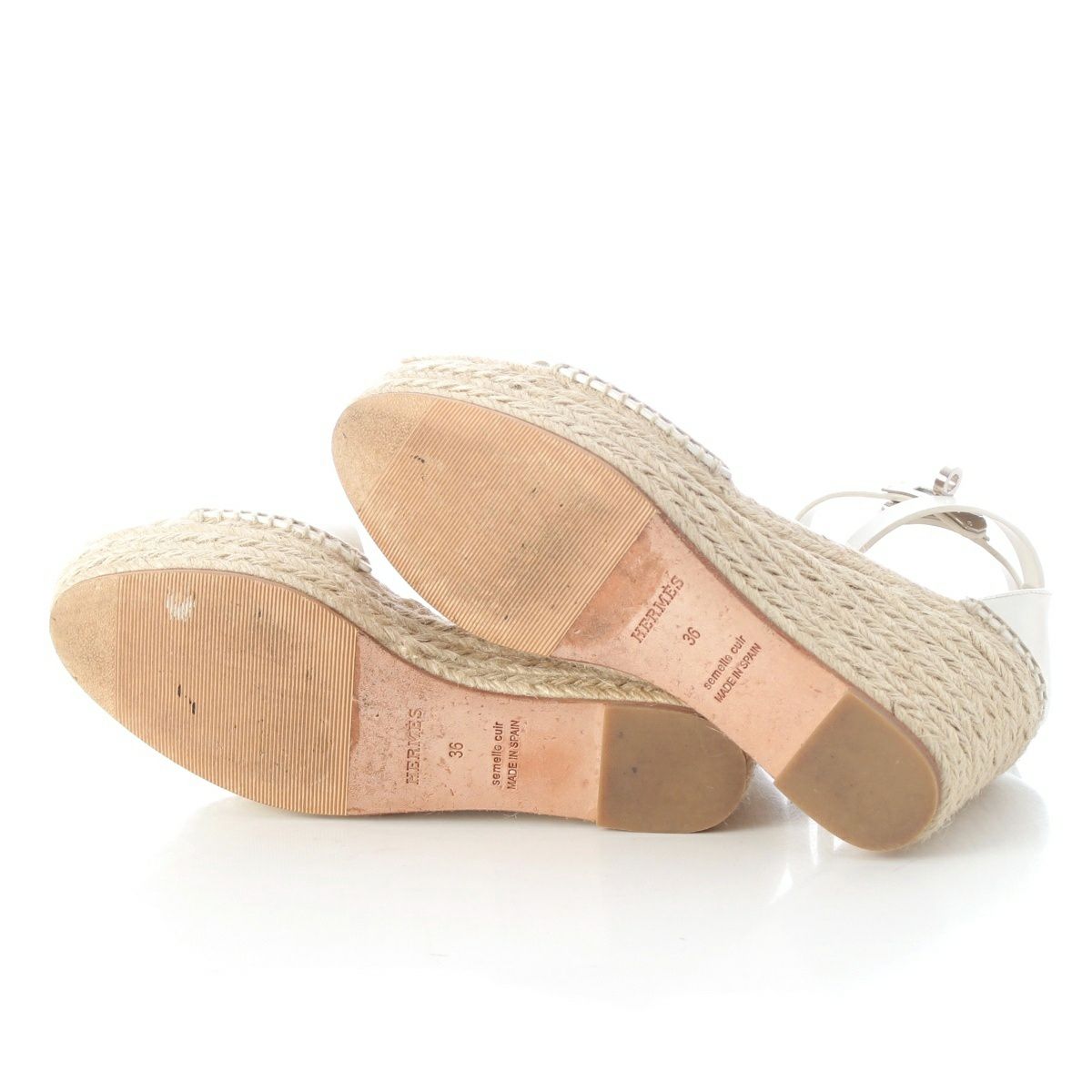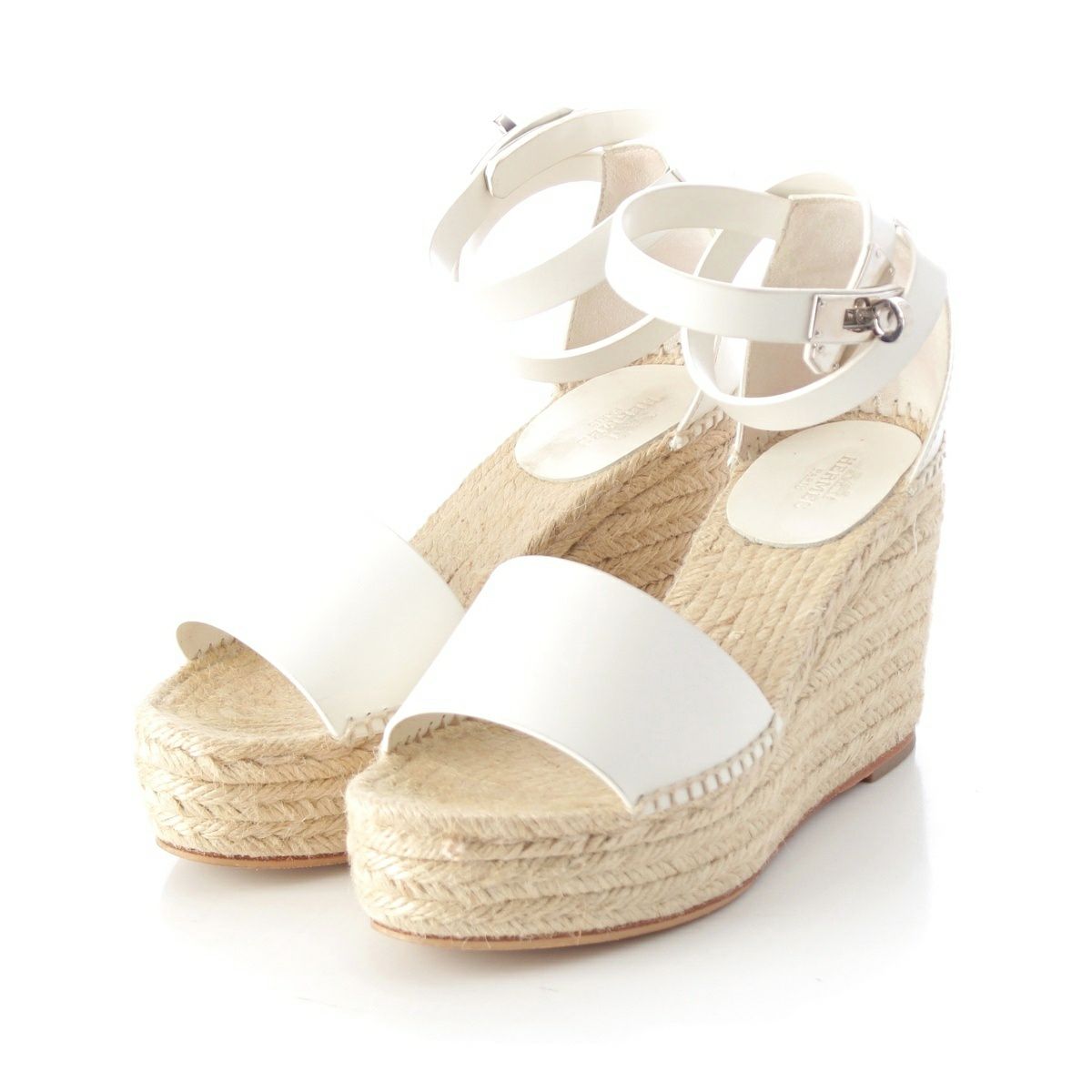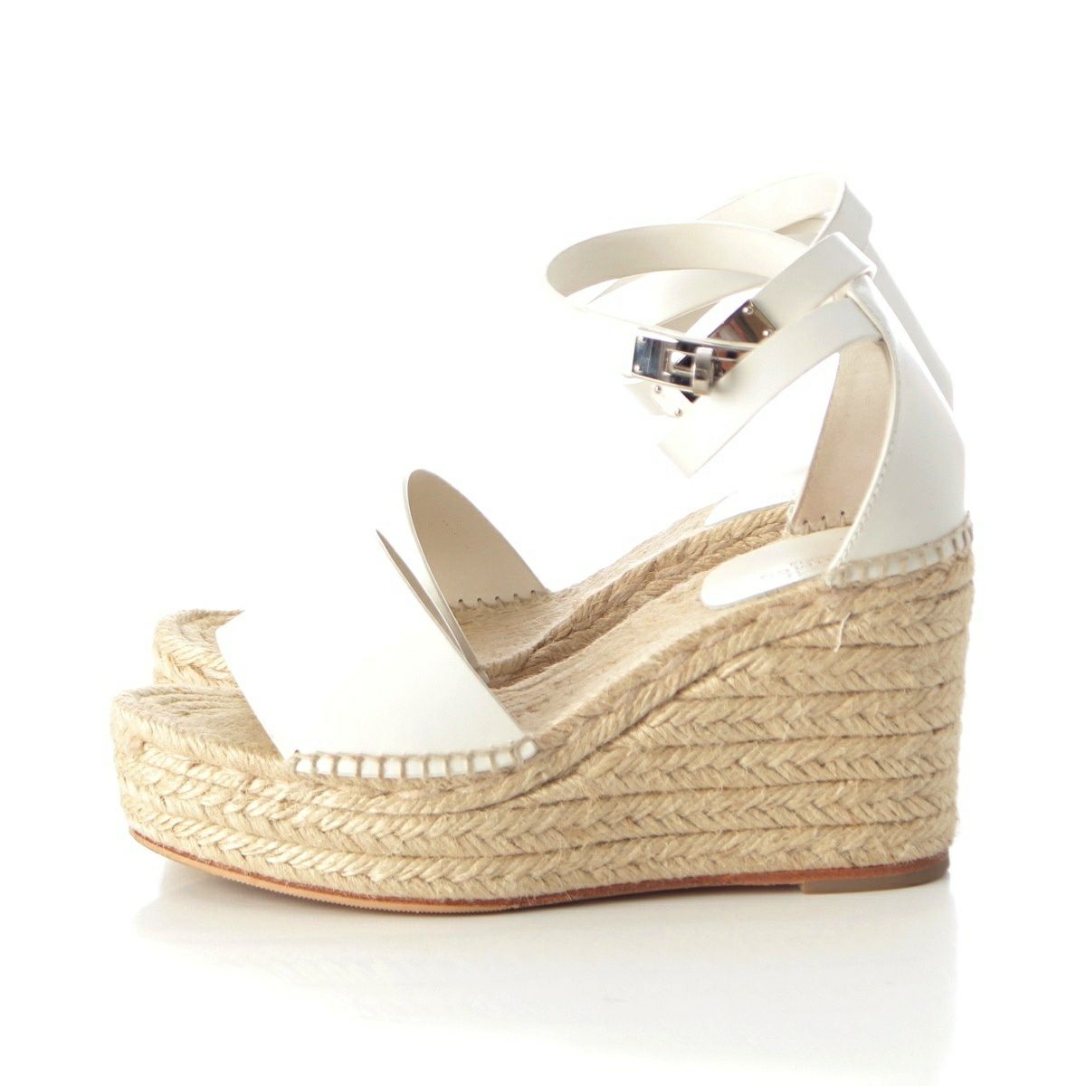 エルメス ティポリ レザー ケリー金具 ウェッジソール エスパドリーユ サンダル シューズ ホワイト 36