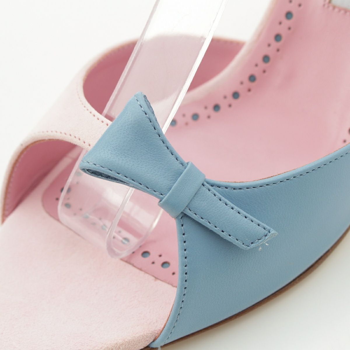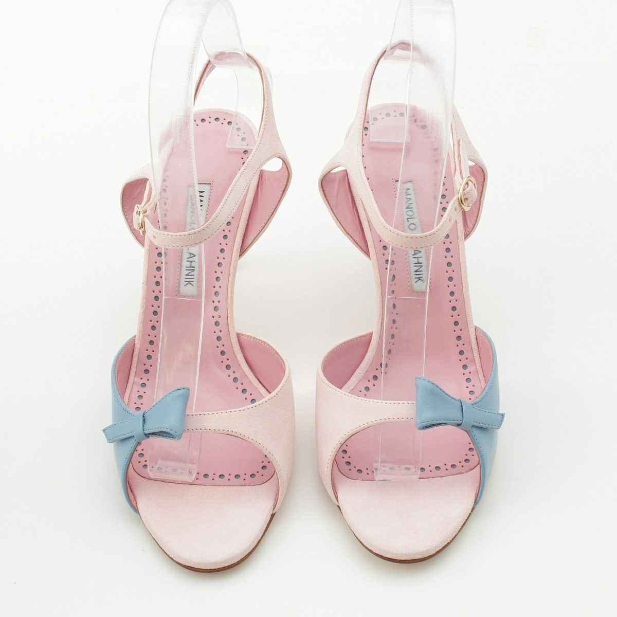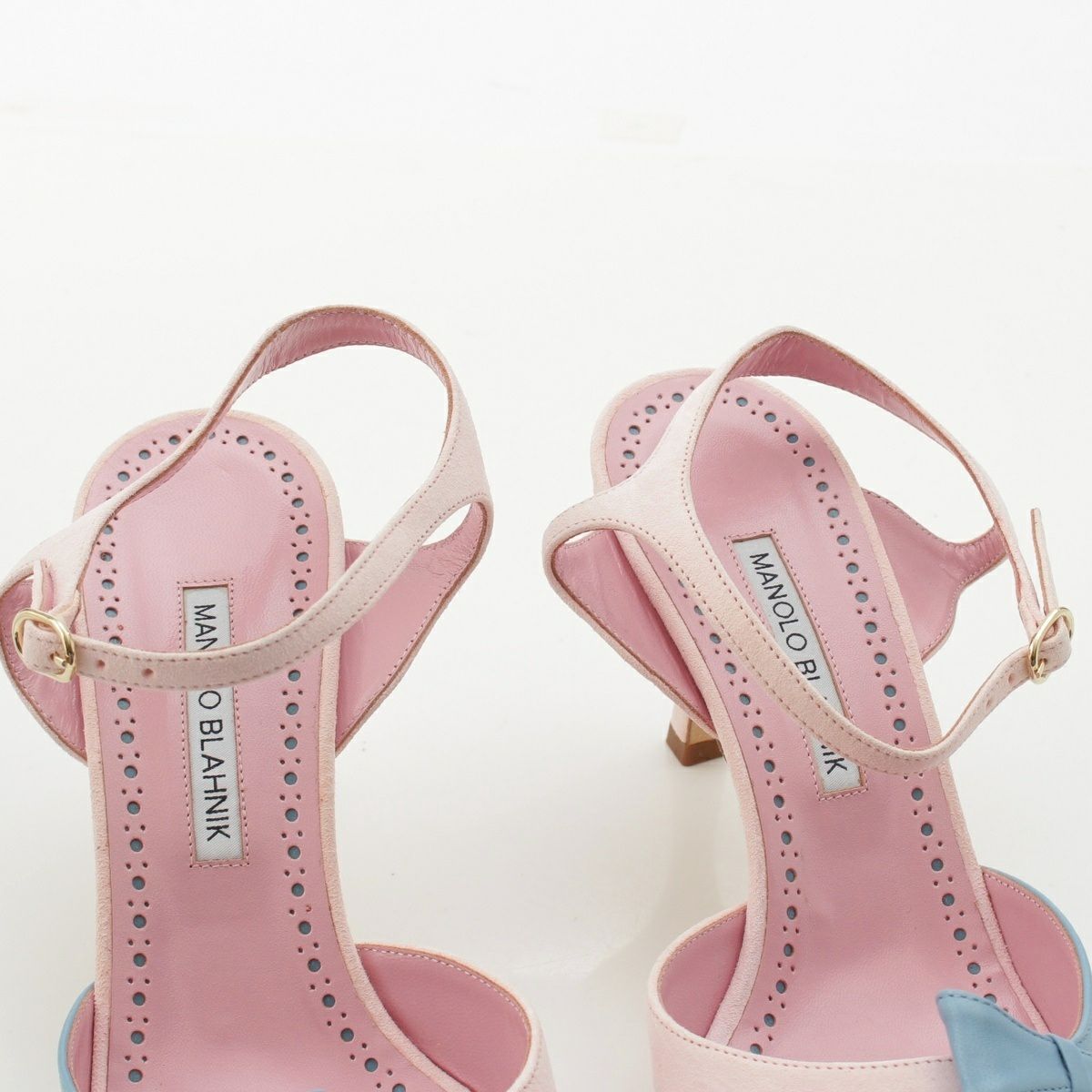 マノロブラニク リボン オープントゥ ヒール サンダル ピンク ブルー 38