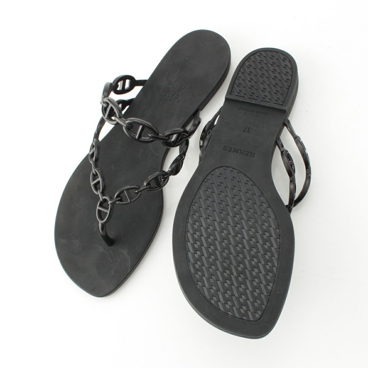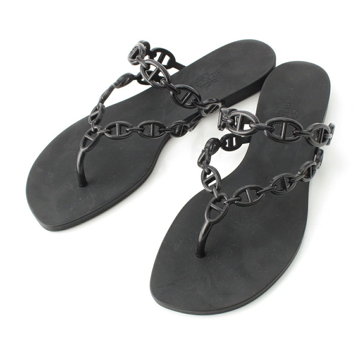 エルメス シェーヌダンクル ビーチサンダル アイランドサンダル シューズ ブラック 37
