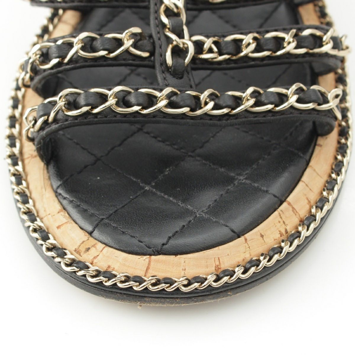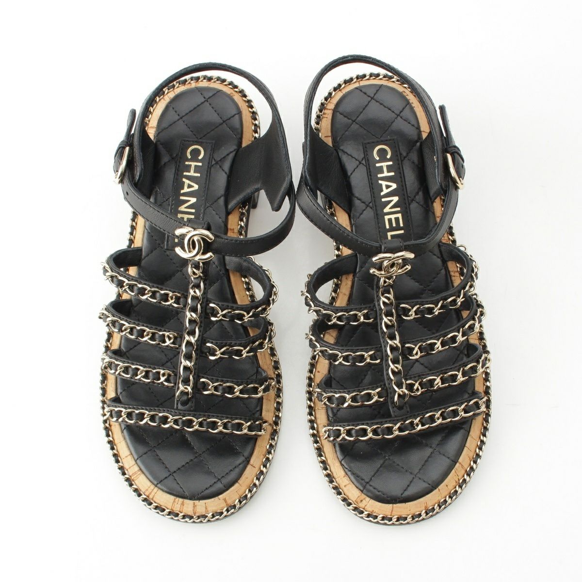 シャネル 24A チェーン ココマーク ミュール サンダル シューズ G45669 ブラック 37 1/2