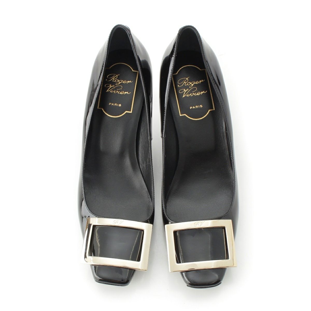 ロジェヴィヴィエ ベル ヴィヴィエ パテントレザー ヒール バックル サンダル ブラック 36