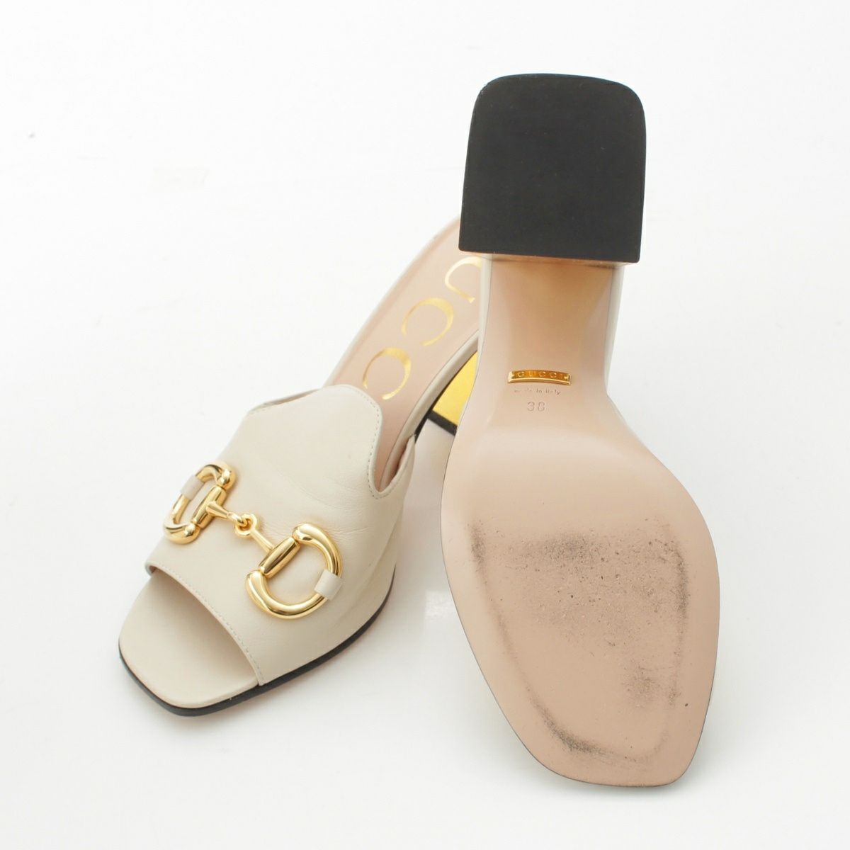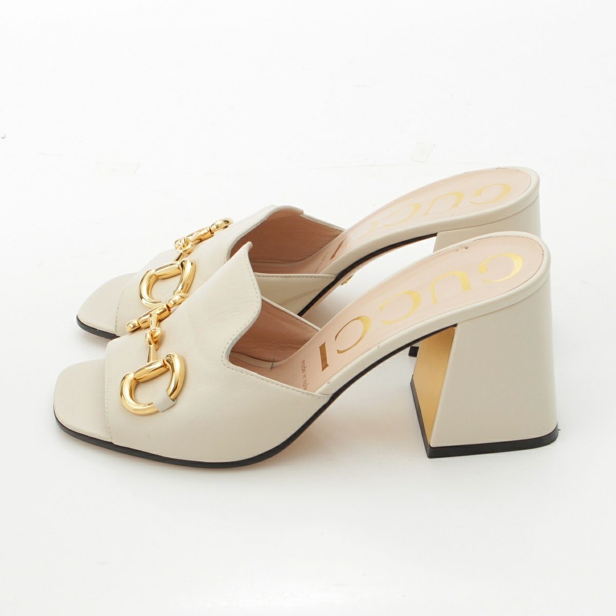 グッチ ホースビット ヒール ミュール サンダル シューズ ホワイト 38