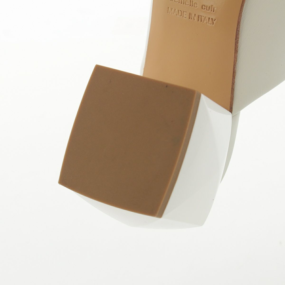 エルメス クリスティ メドール レザー ヒール ミュール サンダル ホワイト 35 1/2