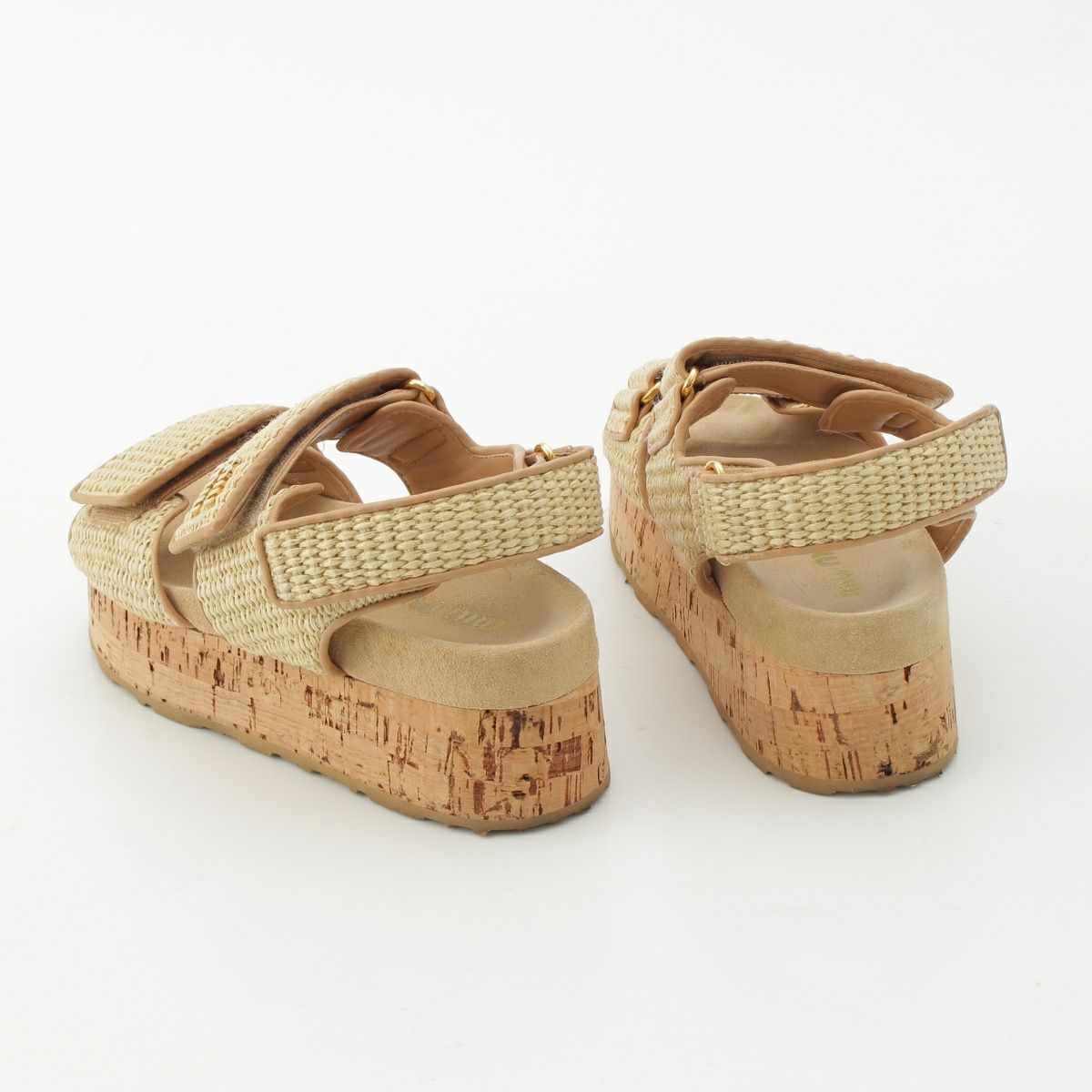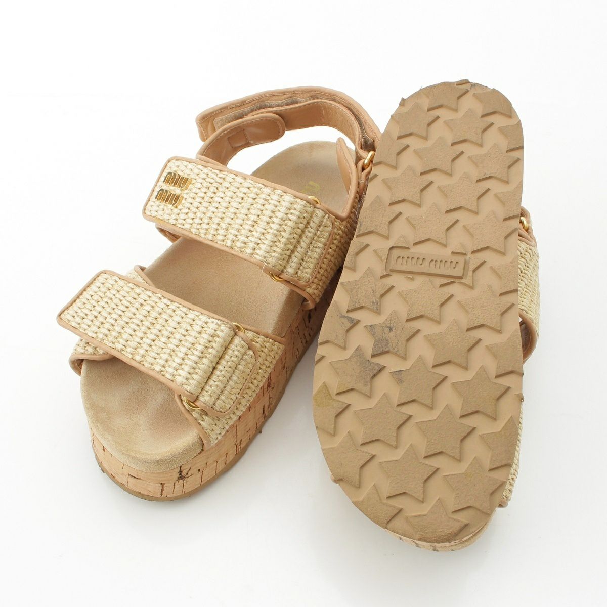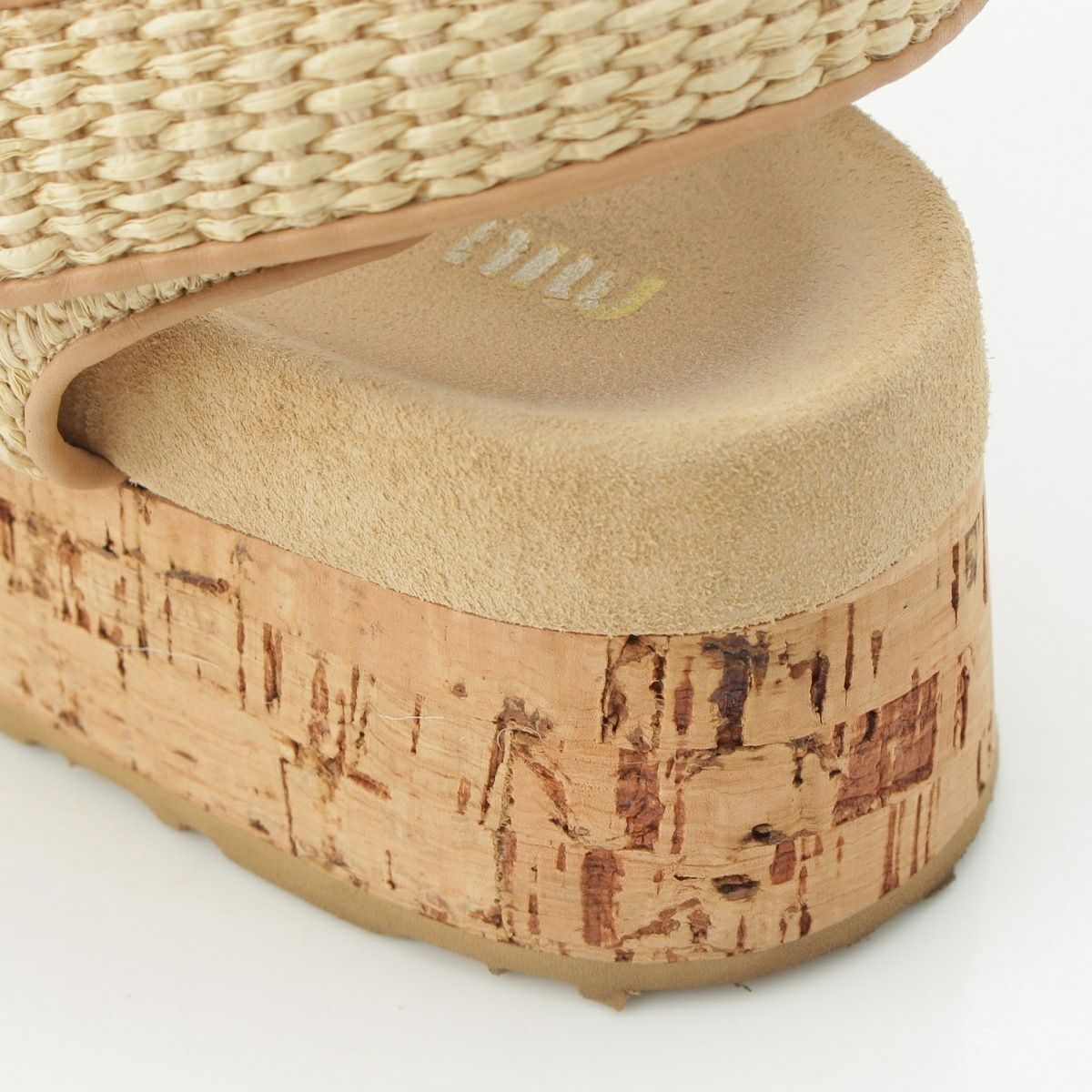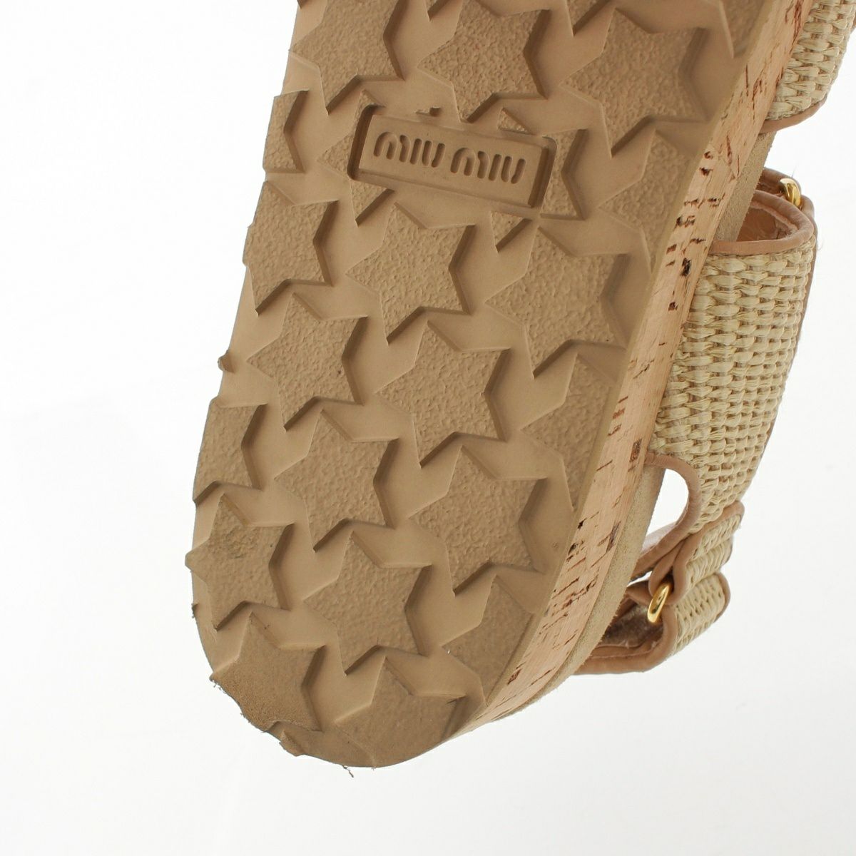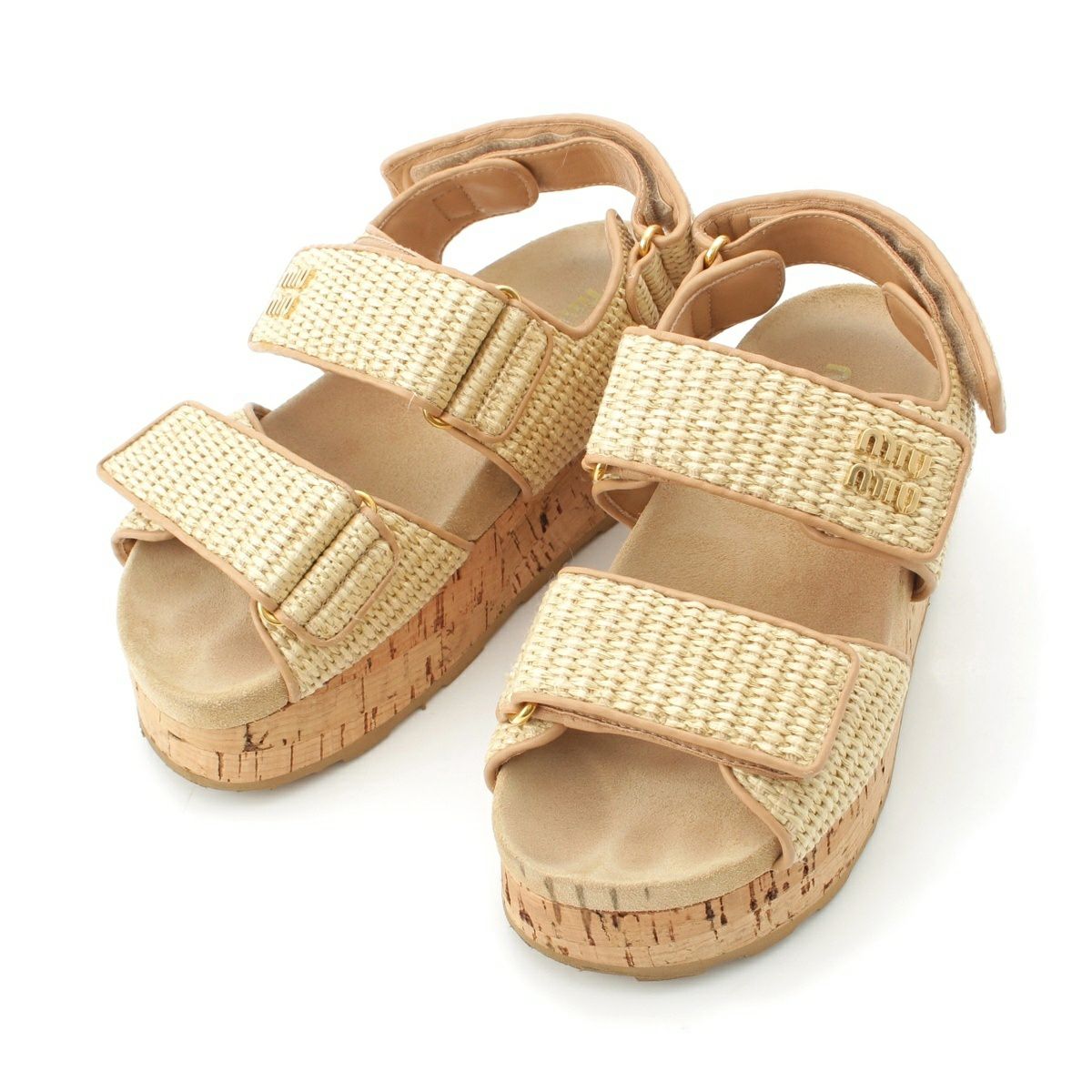 ミュウミュウ ラフィア ロゴ スポーティ ウェッジソール サンダル 5XZ480 ベージュ 36