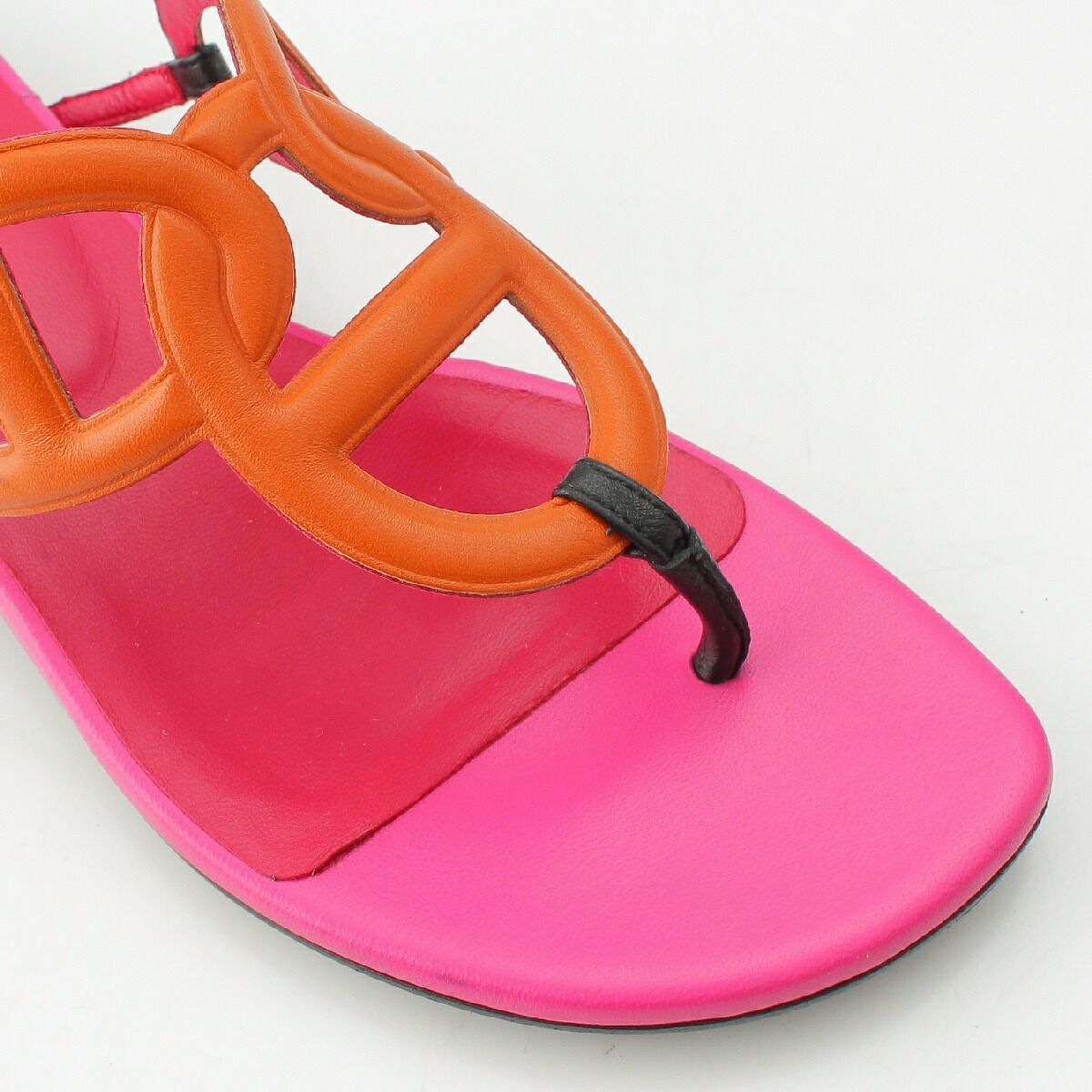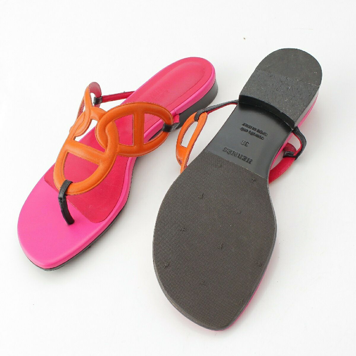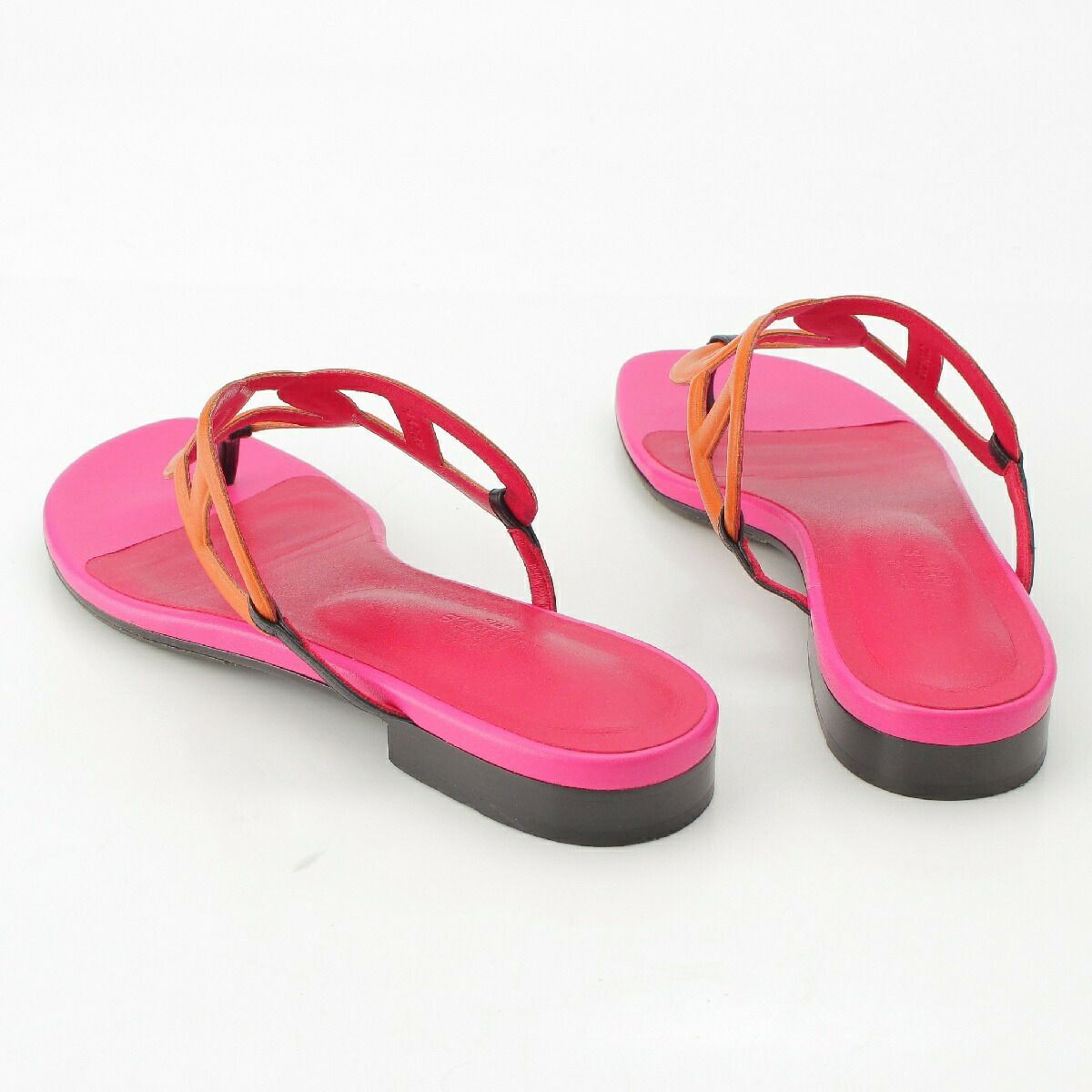 エルメス エジェリ シェーヌダンクル レザーサンダル シューズ ピンク系マルチカラー 38【中古】【正規品保証】