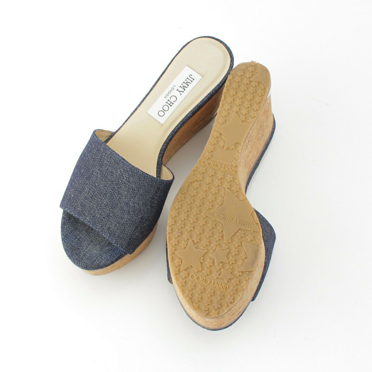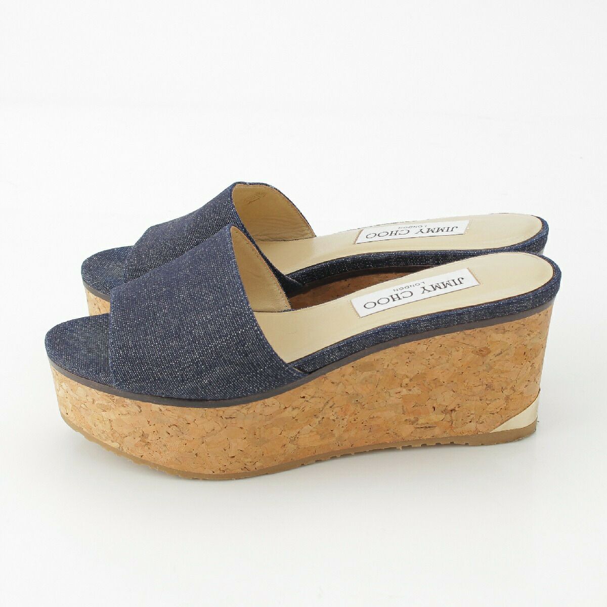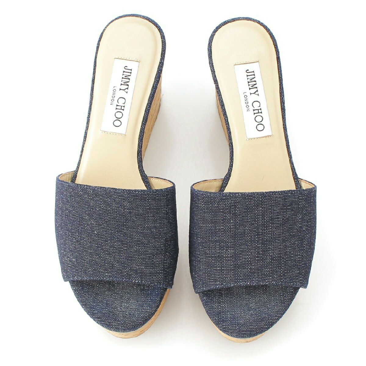 ジミーチュウ DEEDEE80 デニム コルク 厚底 ヒール シャワーサンダル ミュール ブルー ブラウン 36【中古】【正規品保証】
