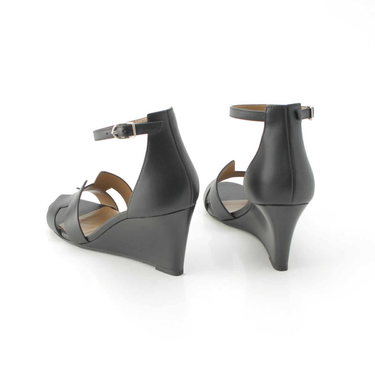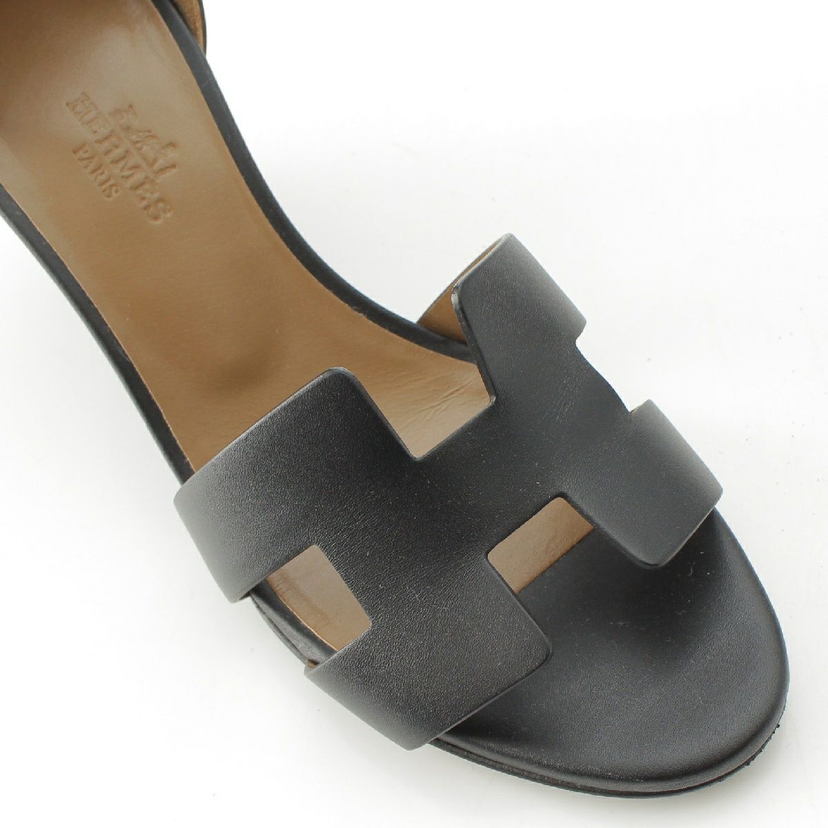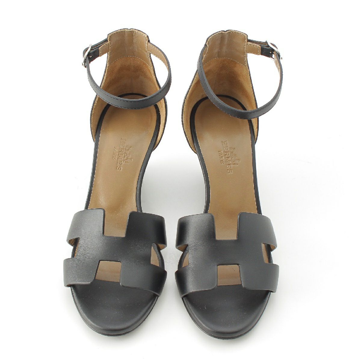 エルメス レジェンド レザー Hロゴ アンクルベルト ウェッジヒール サンダル ブラック 37