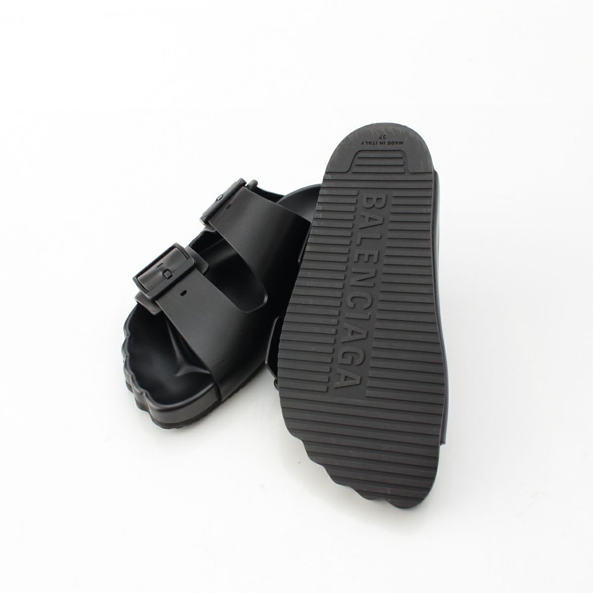 バレンシアガ Sunday レザー フラット サンダル シューズ 761342 ブラック 37